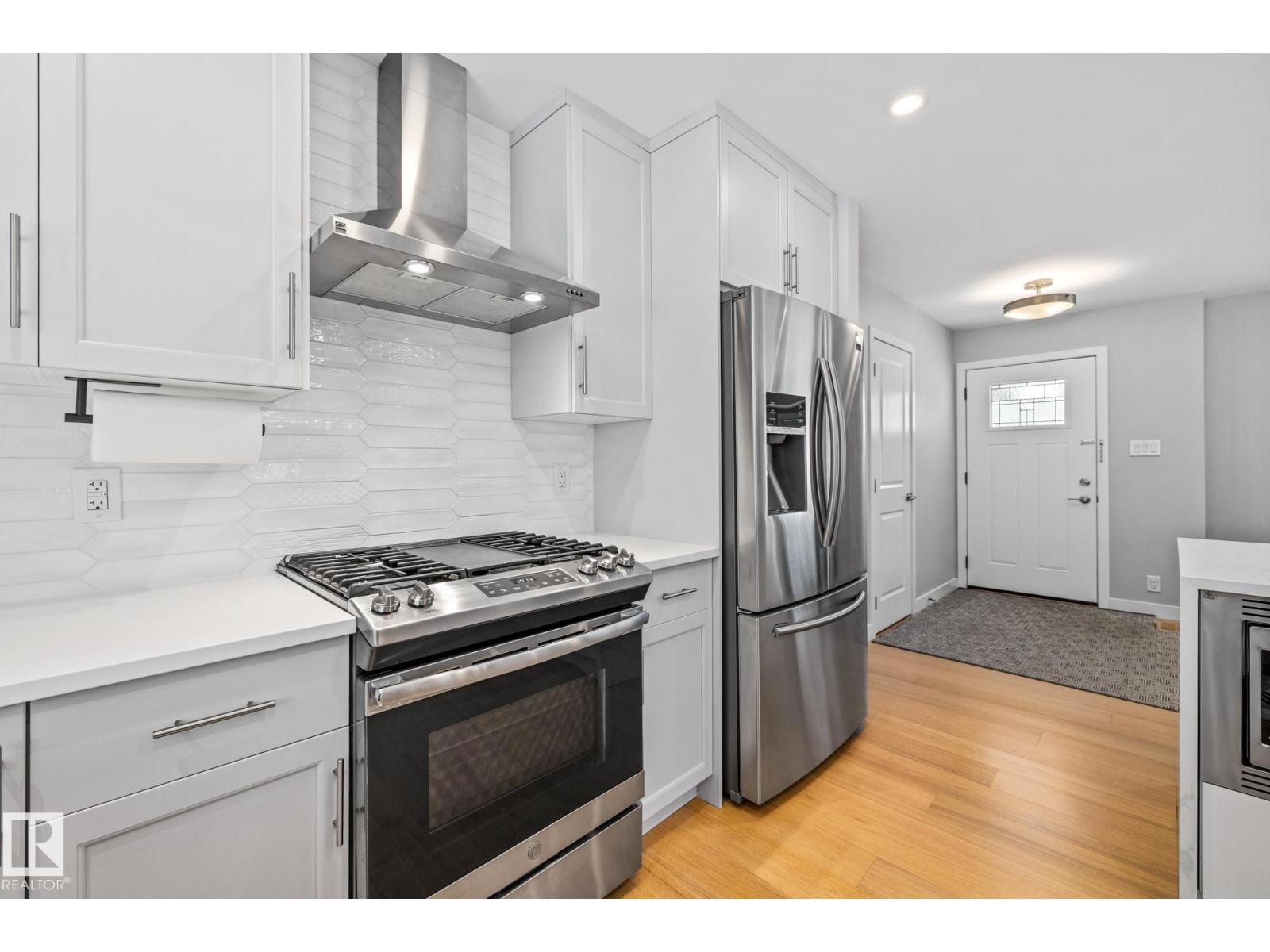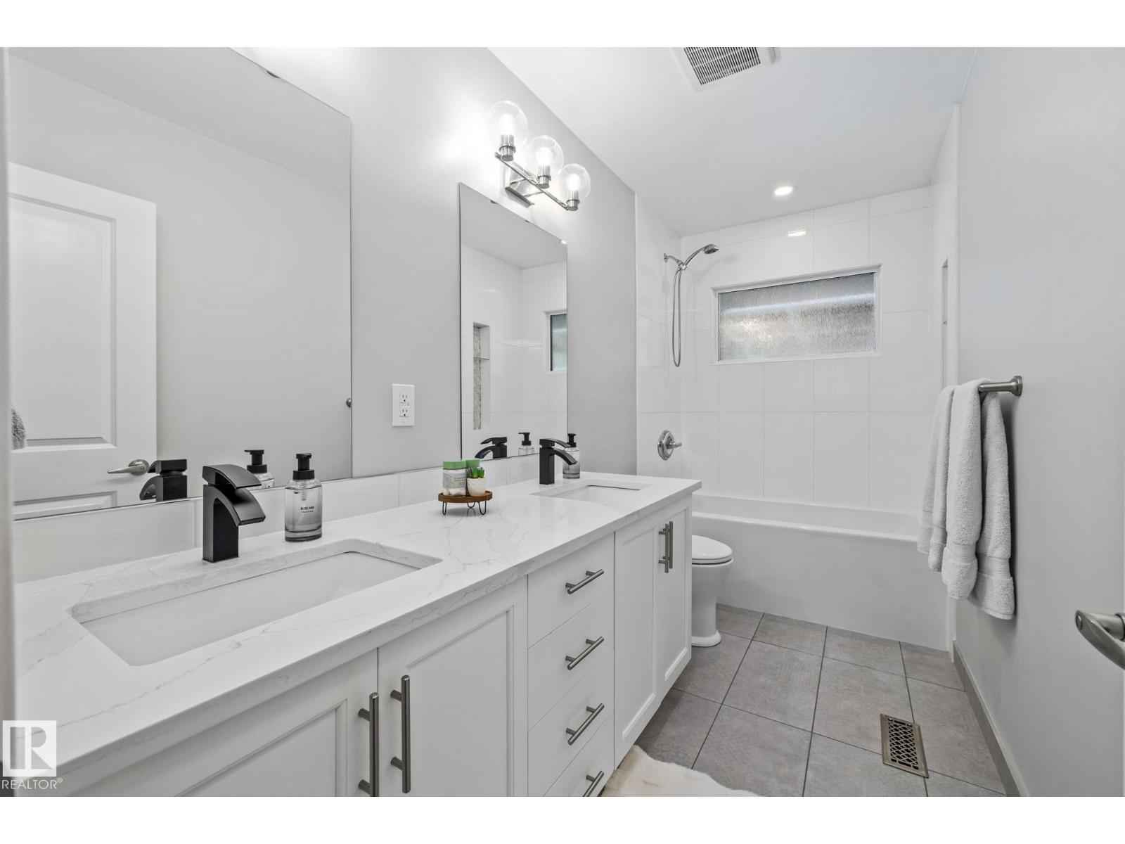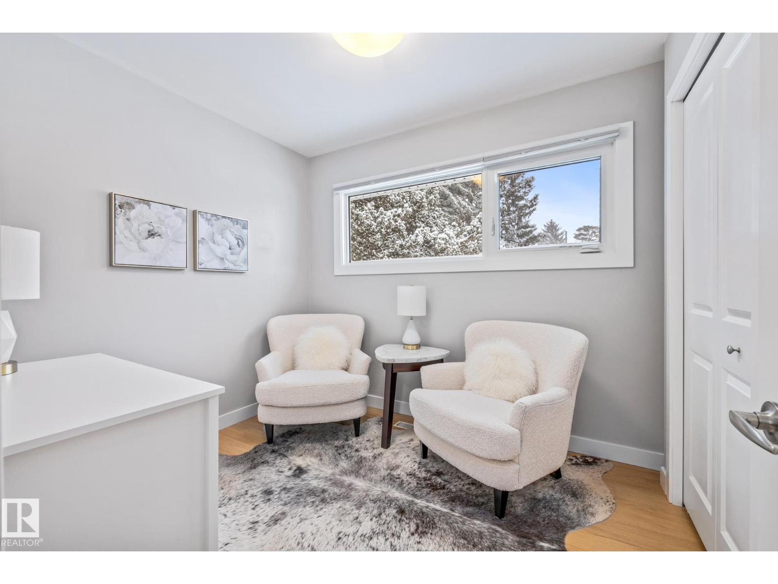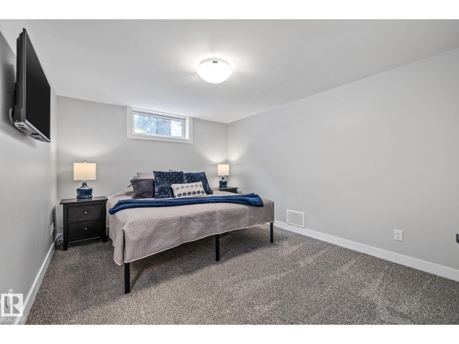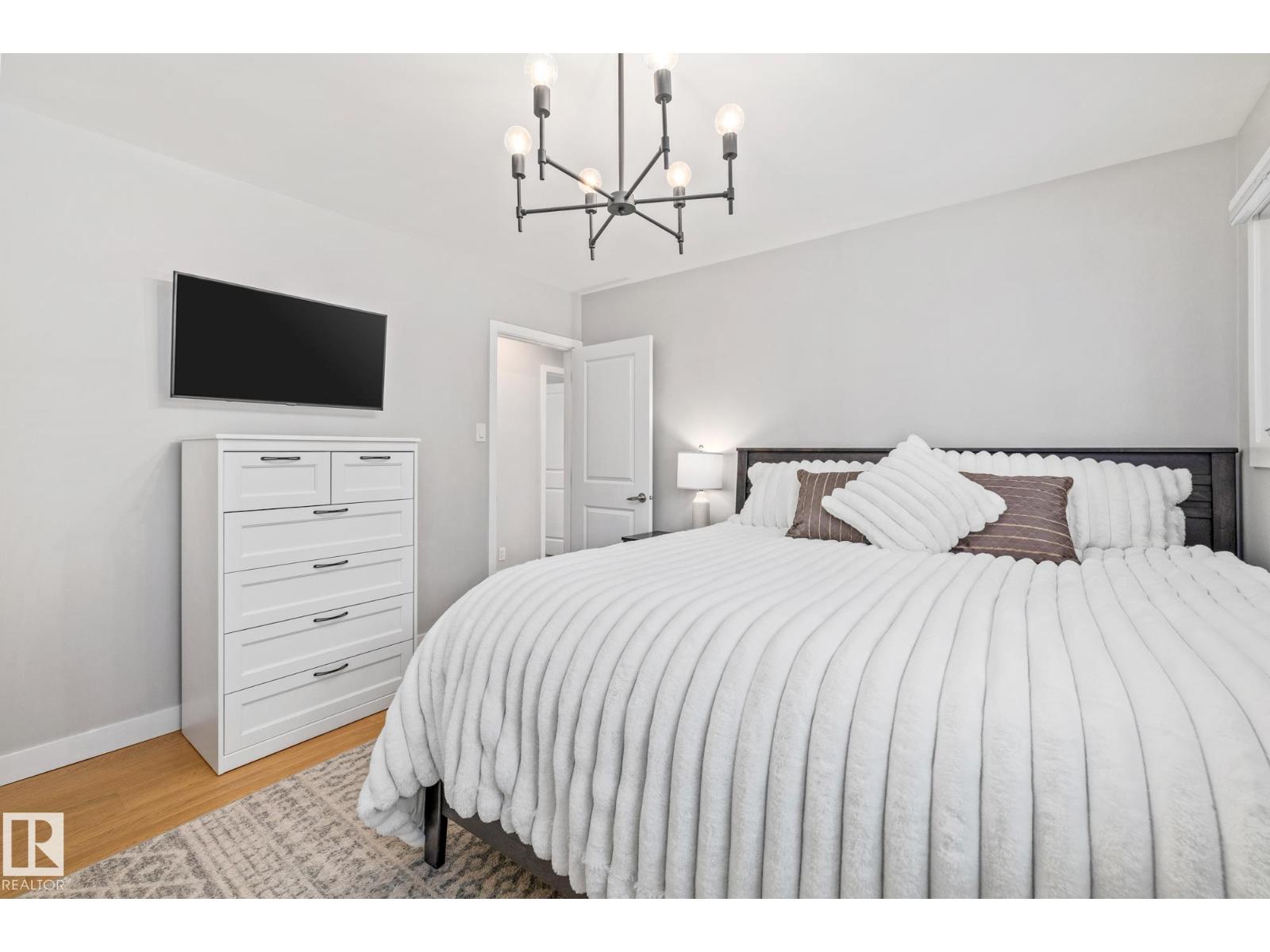 Welcome to Rio Terrace, one of Edmonton’s most sought-after west end communities, known for mature trees, oversized lots, top-rated schools, with quick access to Downtown & the UofA and direct access to the River Valley trail system. This stunning bungalow was renovated down to the studs with major upgrades including new plumbing, 150-amp electrical service, central A/C, triple pane windows and 50-year shingles. The bright open-concept main floor features engineered white oak hardwood, a designer kitchen with 8’ island, and fully updated bathrooms with heated floors. Outside, enjoy a heated garage, new fence and beautiful brick inlay patio overlooking a massive, private, park-like yard. Turnkey living on a quiet, family-friendly street in a premier Rio Terrace setting. (id:63190)