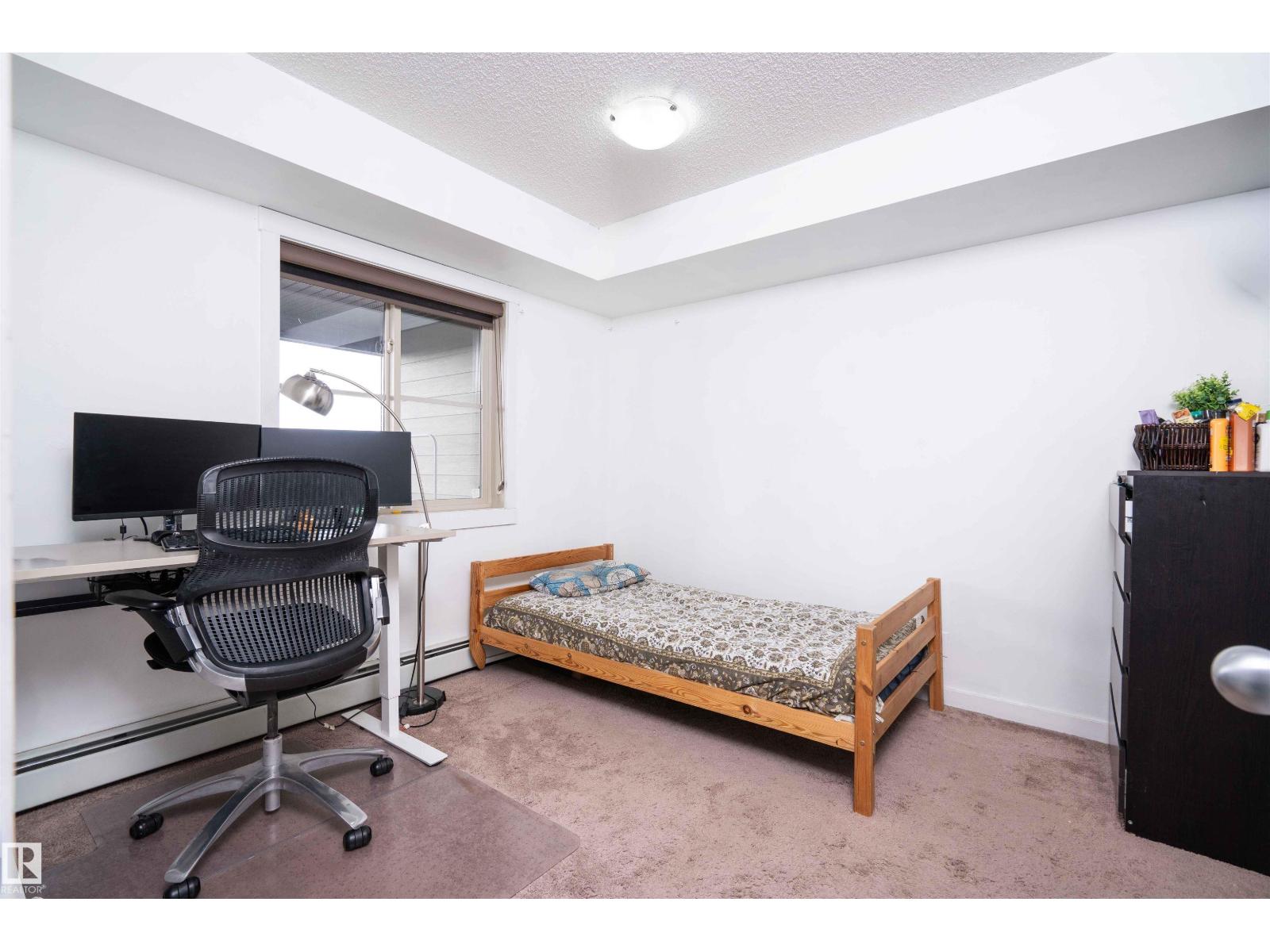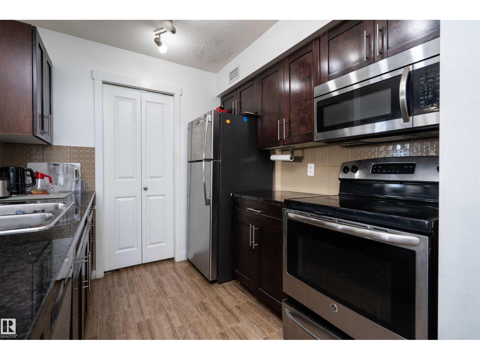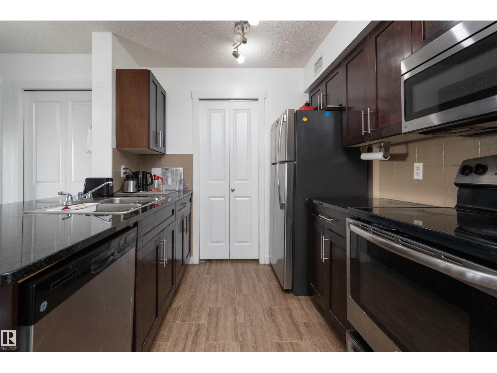 Welcome to this well-maintained top-floor condo in the desirable community of Walker Lakes, Edmonton, Alberta. This bright home features 2 bedrooms + DEN, 2 full bathrooms. The thoughtful layout offers great privacy and comfortable living space. The kitchen includes granite countertops, stainless steel appliances, ample cabinetry, built-in organizers, a pantry with pull-out spice rack. The living area opens to a private balcony with peaceful walking trail views. The primary bedroom has its own full bath, while the second bedroom is near another full bathroom—ideal for guests or family. Enjoy in-suite laundry, one titled underground parking stall with storage, and an additional surface stall with a charging outlet. Conveniently located near shopping, dining, and transit with direct access to Mill Woods Transit Centre, this move-in ready home is perfect for first-time buyers or investors. (id:63190)