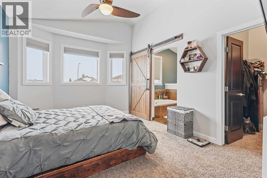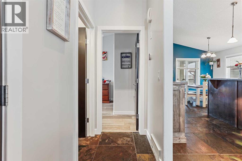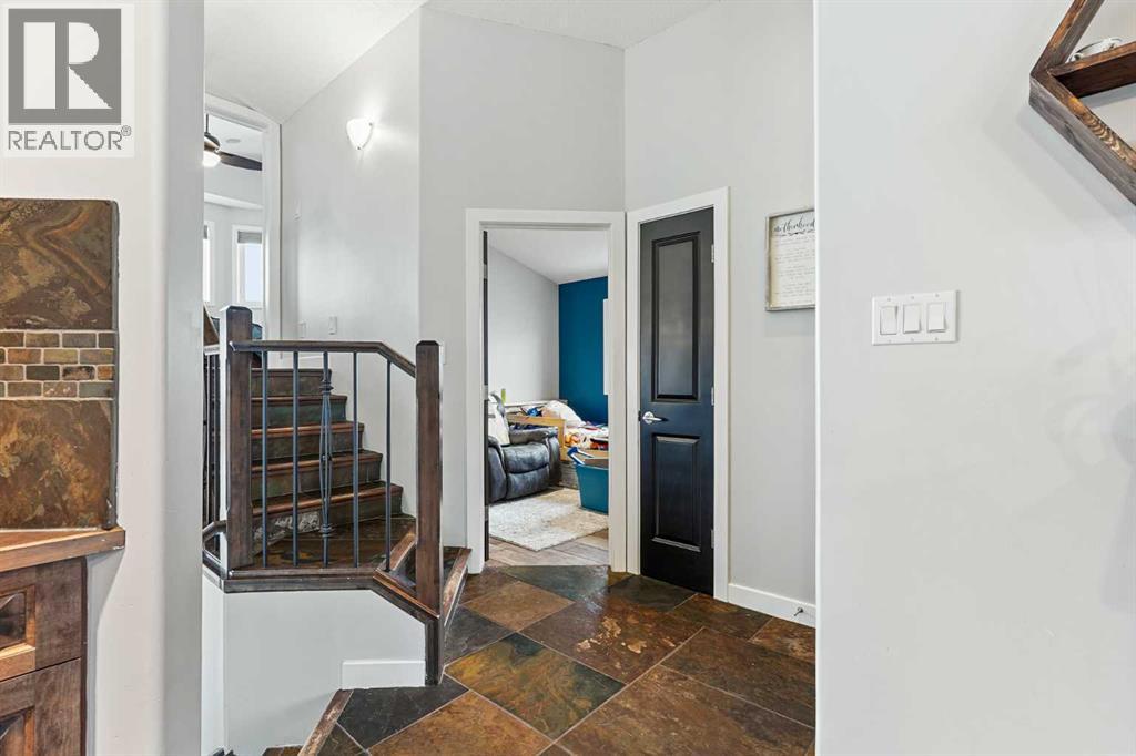 This modified bi-level home offers a balanced layout that prioritizes both natural light and personal privacy. The main floor features airy vaulted ceilings and durable slate flooring that runs through the primary living areas, anchored by large windows that bring in sun throughout the day. A standout feature of the floor plan is the master suite, which is positioned privately above the double attached garage and includes its own four-piece ensuite. Two additional bedrooms and a second full bathroom complete the main level, providing plenty of space for family or guests.The home continues to impress in the bright walkout basement, which leads directly to a recently landscaped backyard. This lower level adds a fourth bedroom, a beautiful three-piece bathroom, and a dedicated office space perfect for a quiet work-from-home setup. With a double attached garage and a functional, uncrowded design, this home offers a practical and inviting environment both inside and out. Situated in a quiet neighborhood, this home is just a short walk from a local park and within easy reach of nearby shopping an d amenities. This location offers a perfect balance of community convenience and a peaceful residential feel. (id:63190)