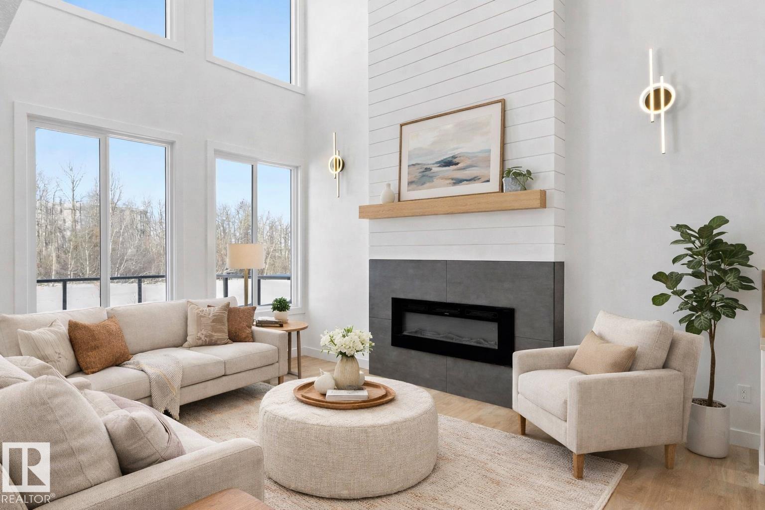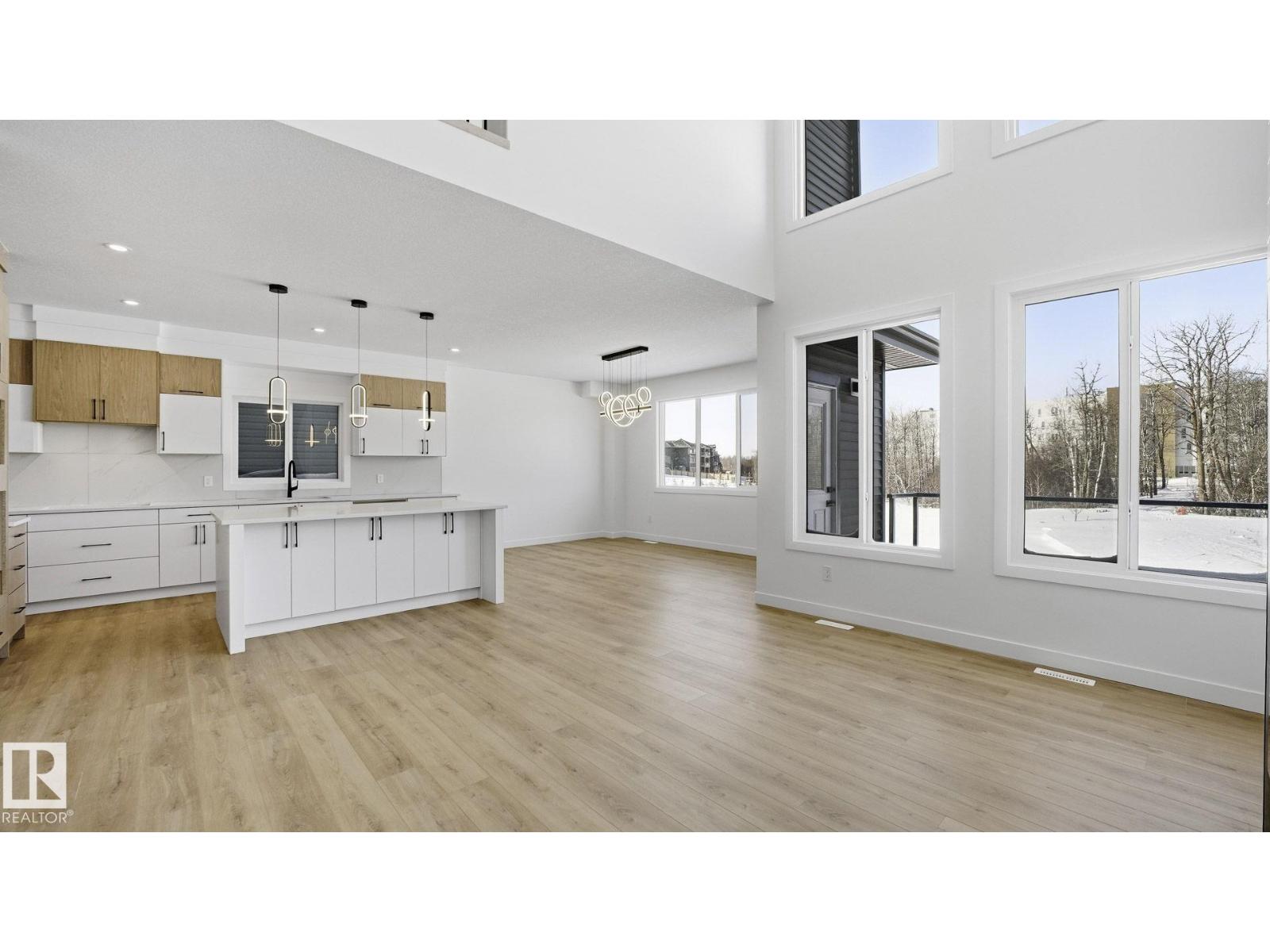 BRAND NEW Quick Possession 2 Storey home in the vibrant community of FENWYCK, backing onto greenspace w/pond & walking trails. The perfect setting for an active lifestyle w/no rear neighbors & beautiful west-facing views. This thoughtfully designed home features an oversized double attached garage 20x27 (trucks/SUVs) w/floor drain, 9’ ceilings on the main flr, durable vinyl flooring, upgraded lighting & triple pane windows. The stunning living room showcases soaring 18’ ceilings, expansive windows & elegant gas FP centerpiece. The designer kitchen offers quartz counters, built-in hood fan & a convenient walk-through pantry. Main flr den provides ideal space for home office. Iron railing & staircase lighting add style. Upstairs includes laundry, custom closet shelving & a luxury ensuite w/large format tile, glass/tile shower, soaker tub, & private water closet. Maintenance-free dura deck w/glass & aluminum railing complete the exterior. The WALKOUT basement is a clean slate, ready for your personal touch (id:63190)