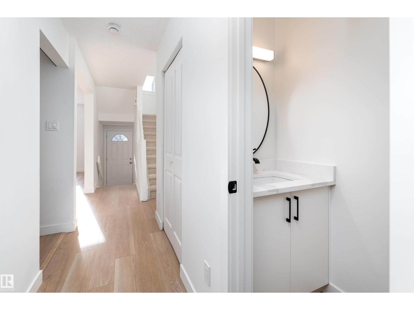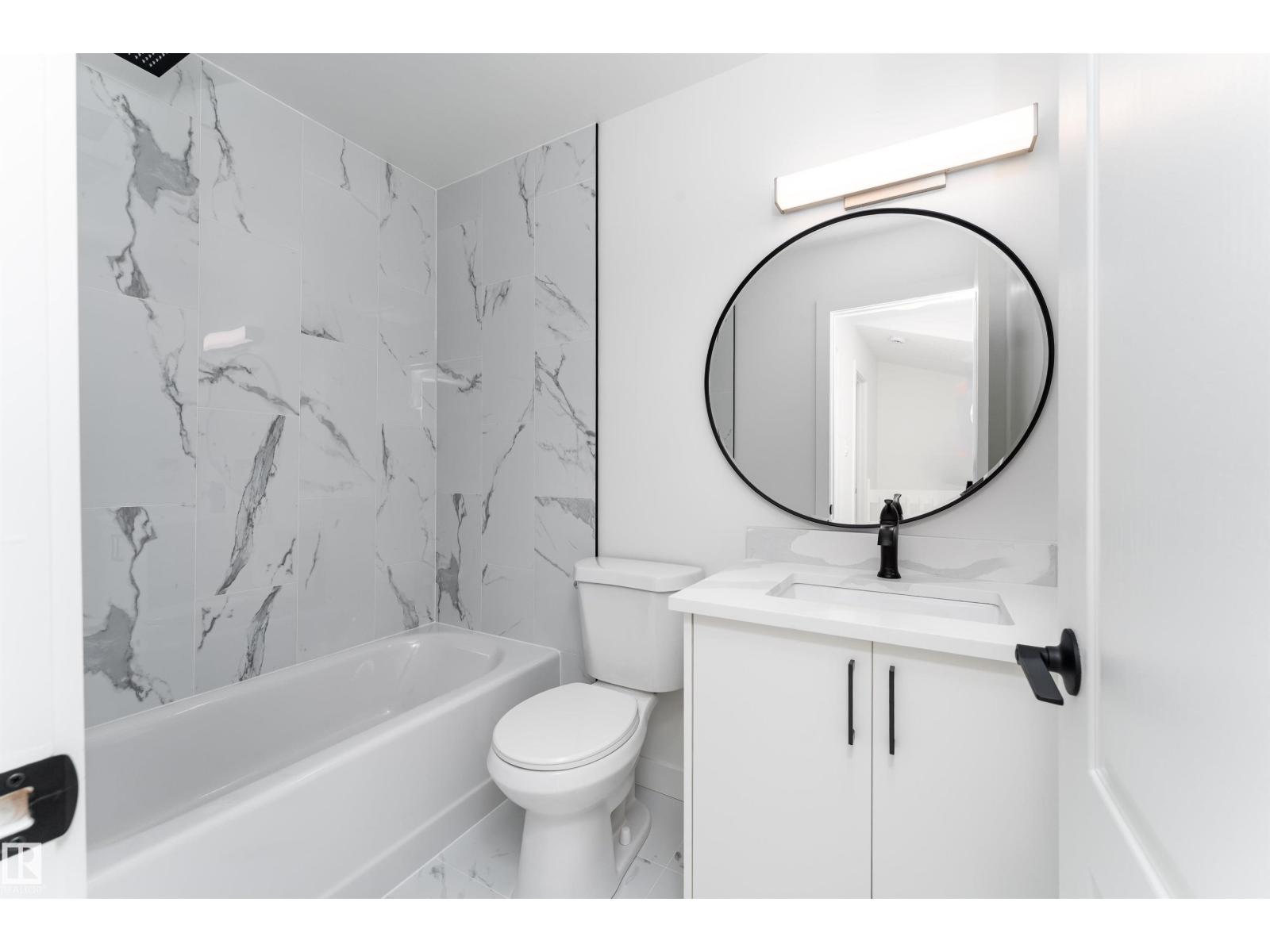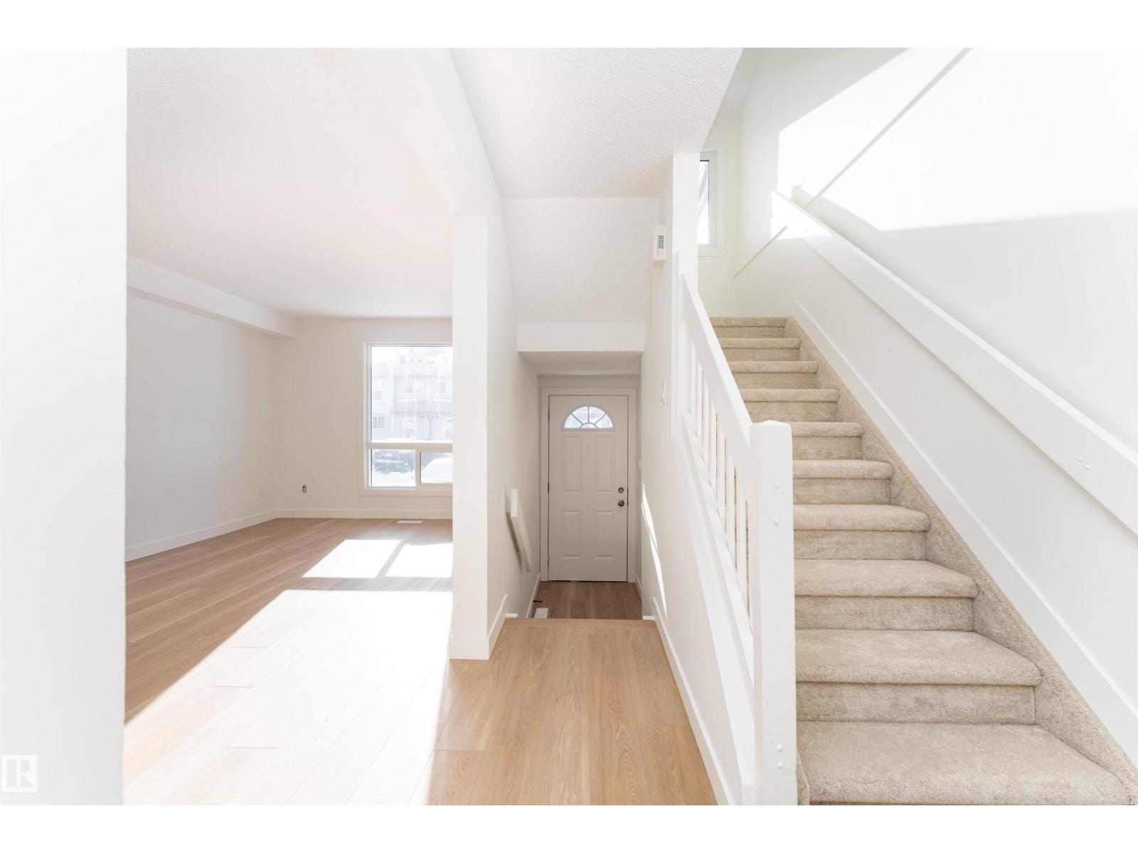 Fully renovated from top to bottom, this stunning 2 storey townhouse offers 1,050 sq ft of stylish, move in ready living. The main floor features light wood vinyl plank flooring and a beautifully updated white kitchen with marble countertops, sleek modern finishes, and generous counter space designed for both functionality and style. The spacious living room is bright and inviting, perfect for hosting, and a convenient half bathroom completes the main level. Upstairs you’ll find three spacious bedrooms with ample closet space and a full 4 piece bathroom. The finished basement and upper level are completed with cozy carpet, and the basement offers a large rec room perfect for movie nights or a games area, along with a half bath and a storage room. Complete with assigned parking and located near Raven Crest Golf & Country Club, Clareview Town Centre, and parks, schools, public transit, this beautifully renovated home offers comfort and convenience. All that’s left to do is move in and start making memories! (id:63190)