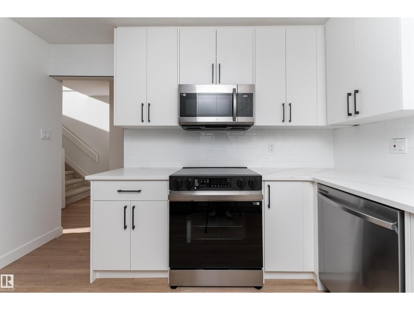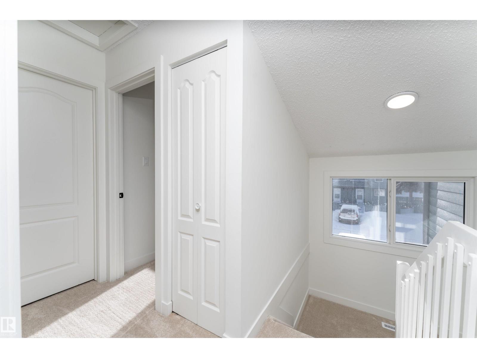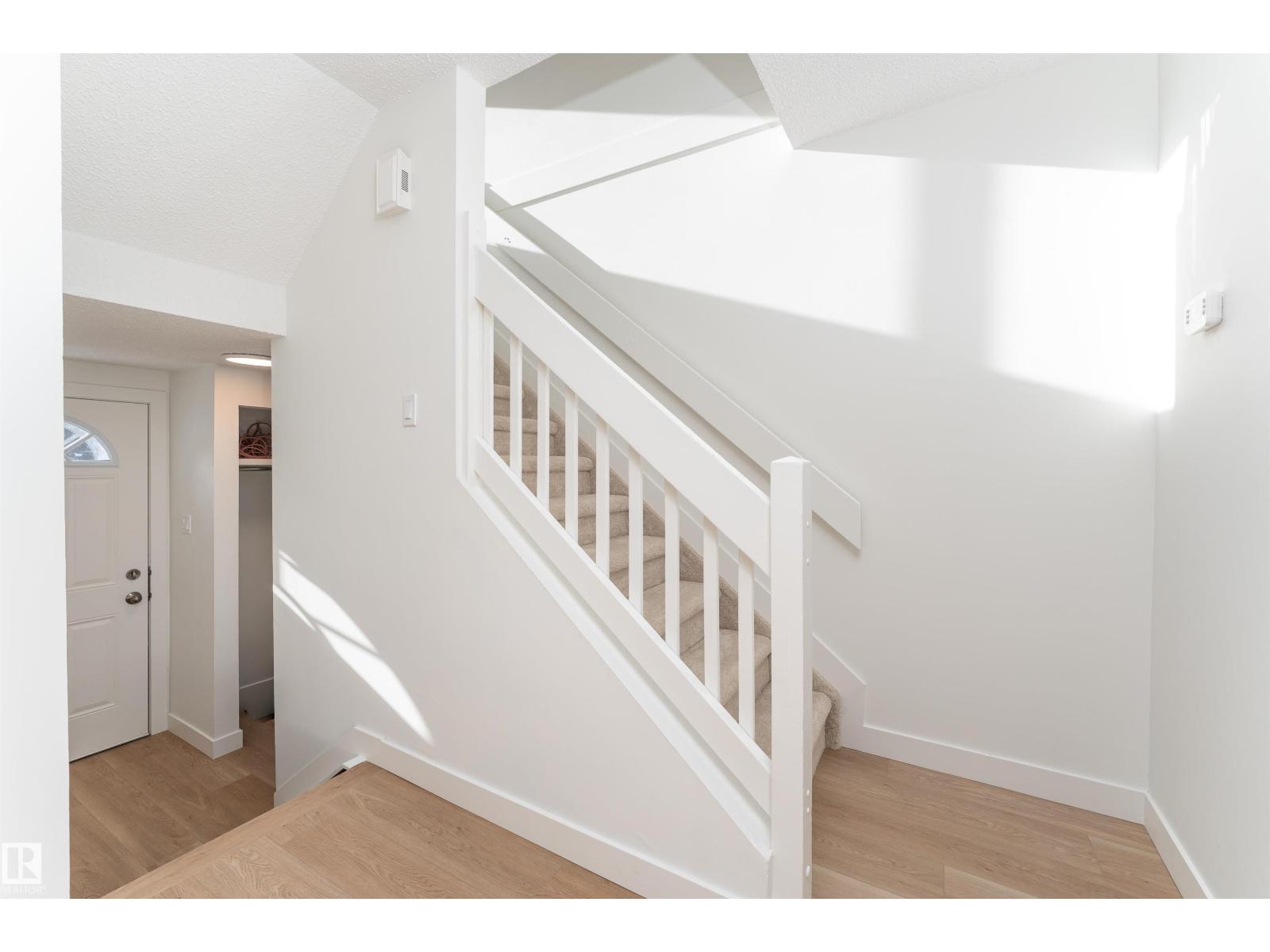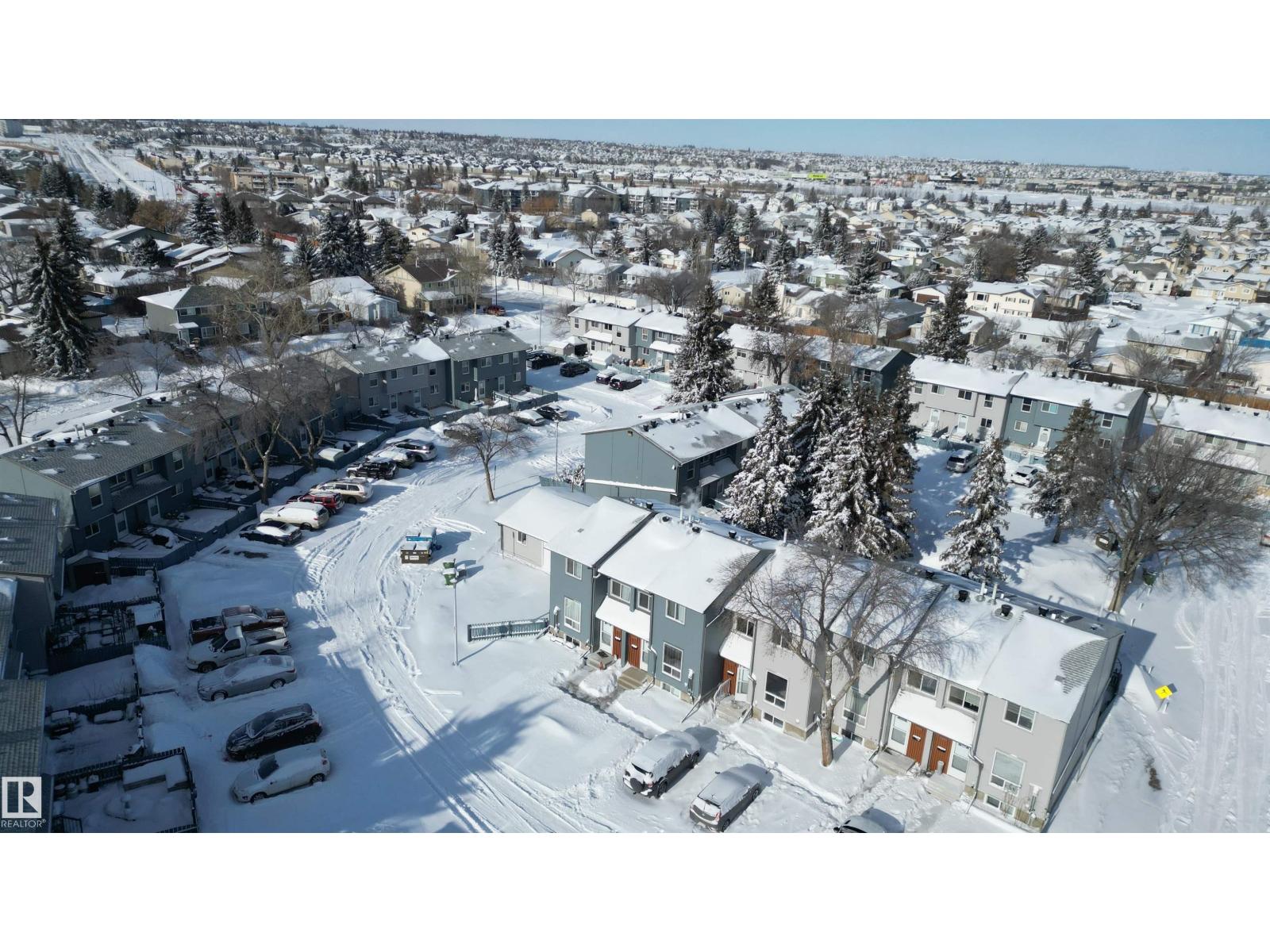Fully renovated from top to bottom, this stunning 2 storey townhouse offers 1,050 sq ft of stylish, move in ready living. The main floor features light wood vinyl plank flooring and a beautifully updated white kitchen with marble countertops, sleek modern finishes, and generous counter space designed for both functionality and style. The spacious living room is bright and inviting, perfect for hosting, and a convenient half bathroom completes the main level. Upstairs you’ll find three spacious bedrooms with ample closet space and a full 4 piece bathroom. The finished basement and upper level are completed with cozy carpet, and the basement offers a large rec room perfect for movie nights or a games area, along with a half bath and a storage room. Complete with assigned parking and located near Raven Crest Golf & Country Club, Clareview Town Centre, and parks, schools, public transit, this beautifully renovated home offers comfort and convenience. All that’s left to do is move in and start making memories! (id:63190)