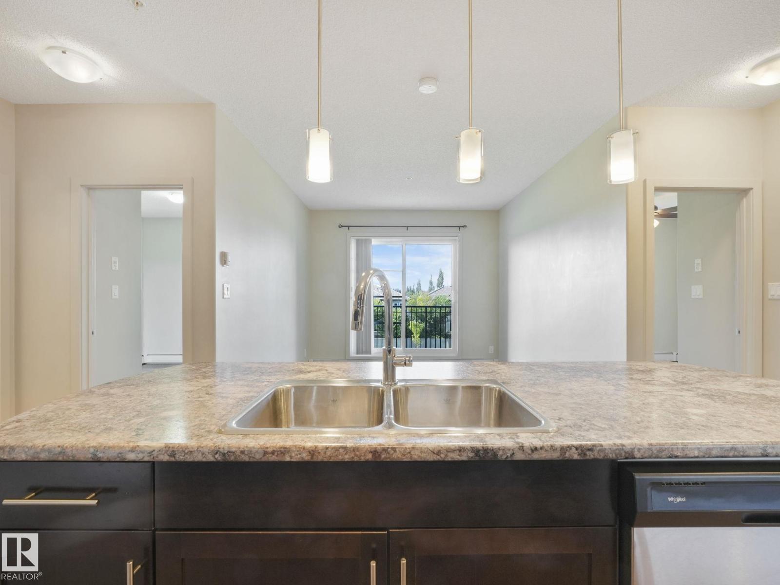 Welcome to your Home2Love in desirable Allard, where comfort, convenience, & value come together beautifully. This bright and spacious 2-bedroom, 2-bathroom condo offers an open-concept layout with 9 ft ceilings, large windows, & modern finishes that create an inviting feel from the moment you walk in. The stylish kitchen flows seamlessly into the living & dining space, making it perfect for entertaining friends or simply enjoying everyday life. The primary bedroom features a walk-through double closet & private ensuite, while the second bedroom & full bath offer flexibility for guests, a roommate, or home office. You’ll appreciate the in-suite laundry, 2 parking stalls including 1 underground & 1 conveniently located near the front entrance, plus low condo fees in this pet-friendly building. Enjoy added lifestyle value with access to the fitness room & social lounge with billiards table. All this in a sought-after location close to schools, shopping, Blackmud Creek Ravine, and quick access to the Henday! (id:63190)