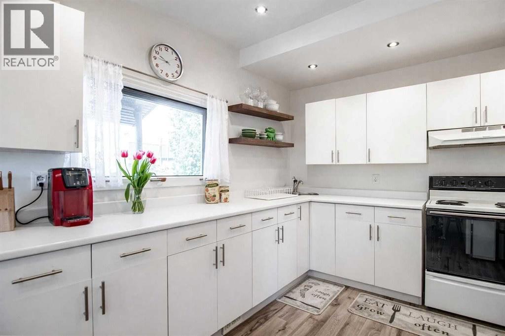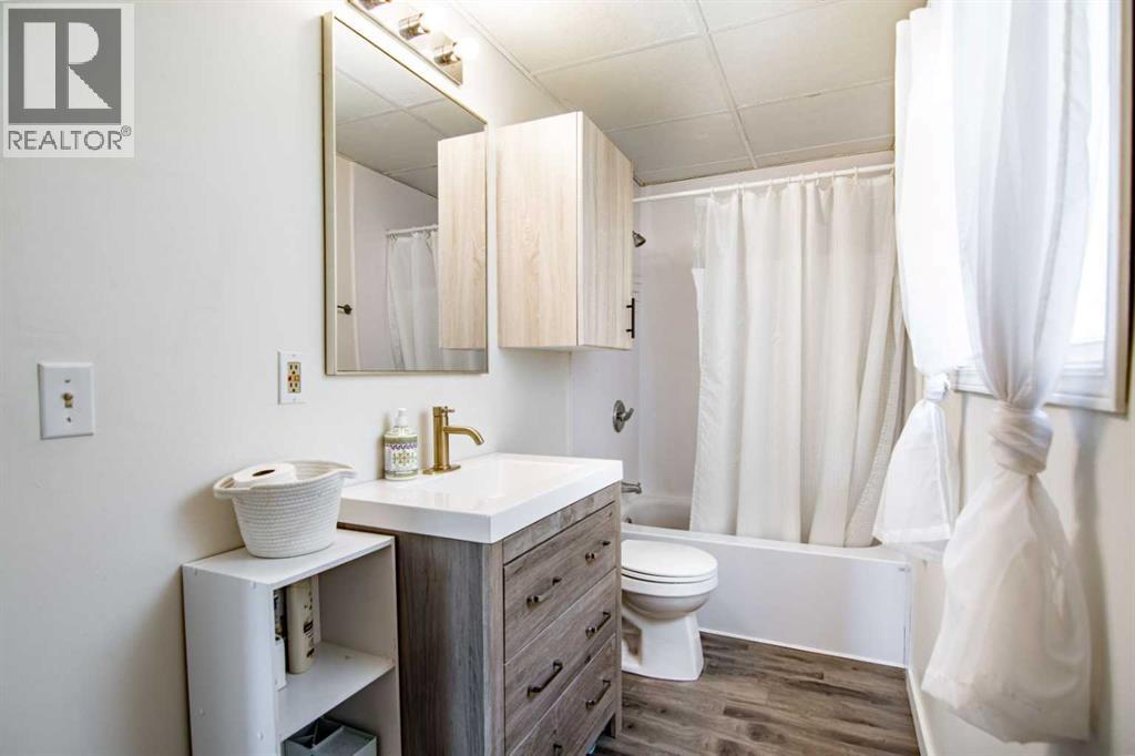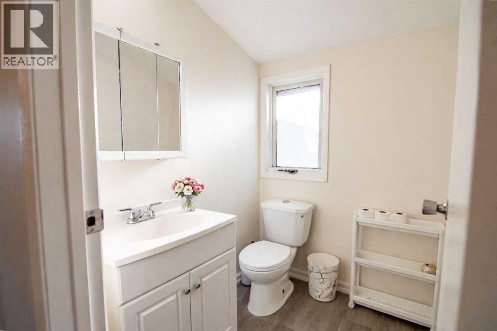 Click brochure link for more details. Move-in ready 2-bedroom, 2 bath detached 1 1/2 story character home with a large 2 CAR DETACHED GARAGE located in the heart of Ponoka! Situated on a large corner lot with mature spruce trees and a FULLY FENCED in back yard with a full row of cedar trees which will grow up to 18 ft for privacy! The main floor of the home features a spacious kitchen, combined dining and living room and 4-piece bath, while the upper level offers two spacious bedrooms, and a 2-piece bath, making it an ideal layout for families or guests. A full washer and dryer are located in the basement.This home has received substantial updates since 2021 including: new shingles, new hot water tank, new flooring, new paint throughout, new fence, two new windows, new front door, updated kitchen and bath. This home is steps to a beautiful park, schools and recreation facilities, with easy access to excellent shopping, dining and all other amenities within walking distance. (id:63190)