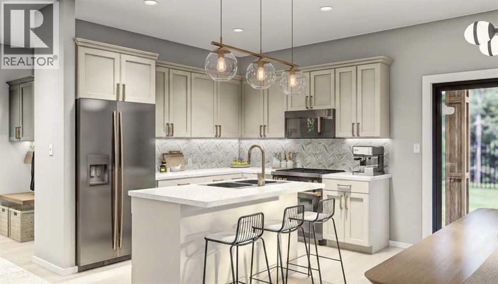For more information, please click the "More Information" button. Experience refined bungalow living in the heart of Diamond Ridge. Situated on Lot 41 at 312 Flare Avenue SW in Diamond Valley, this brand-new Callahan 2 custom home offers thoughtfully designed single-level living with modern finishes and exceptional functionality. This detached bungalow features 1,368.2 sq. ft., 2 bedrooms, and 2 full bathrooms, along with an unfinished basement providing excellent opportunity for future development. The layout is both open and intentional, creating a seamless flow between the kitchen, dining, and living areas—ideal for everyday comfort and entertaining. The living room is anchored by a sleek electric fireplace, creating a warm focal point for the home. Buyers have the option to incorporate a sloped ceiling for added architectural interest. The kitchen is designed for both beauty and efficiency, featuring a large island with breakfast bar, stone countertops, soft-close cabinetry, a pantry for additional storage, and a premium LG appliance package. Privately positioned toward the rear of the home, the primary bedroom serves as a true retreat, complete with 10’ ceilings that enhance the sense of space and light. The spa-inspired five-piece ensuite includes a soaking tub, separate shower, double-sink vanity, private toilet room, and a spacious walk-in closet. A second bedroom is located near the front of the home and is served by a well-appointed three-piece hallway bathroom, offering flexibility for guests or a home office. The mudroom is thoughtfully designed with built-in cabinetry and a stacked washer and dryer, providing practical organization and everyday convenience. Additional highlights include 9’ ceilings throughout the remainder of the main floor, a welcoming front porch, and a double front-facing attached garage. Optional upgrades include a rear deck and/or BBQ deck to enhance outdoor living, deck entrance from primary, and/or alternate front entrance. Loca ted in the thoughtfully planned community of Diamond Ridge, residents enjoy convenient access to local shops, cafés, schools, parks, pathways, and the nearby Sheep River and regional trail systems. Easy connections to Okotoks and south Calgary offer the perfect balance of small-town charm and accessibility. Estimated completion is scheduled for Summer 2026. Photos contain rendered examples. (id:63190)