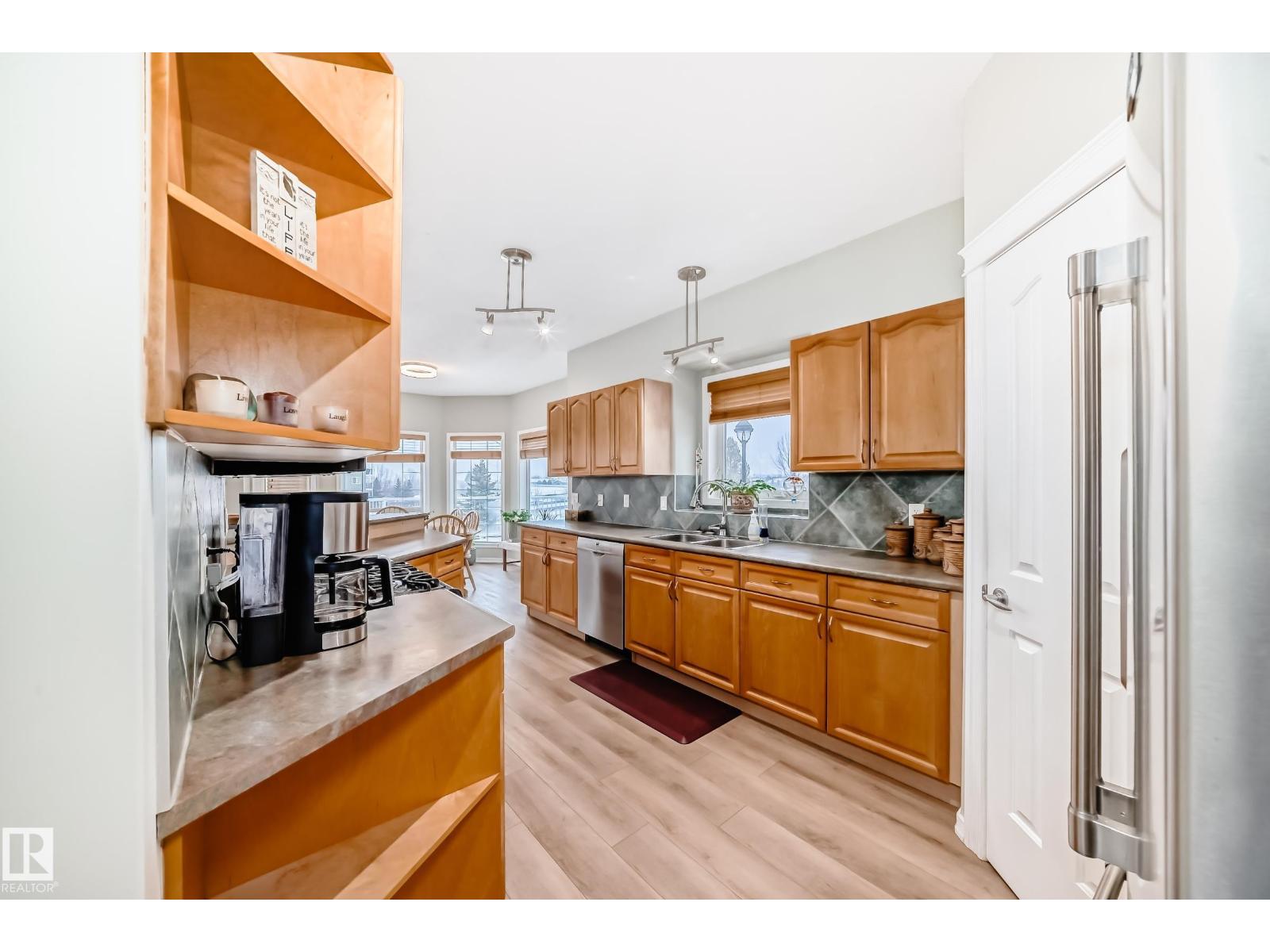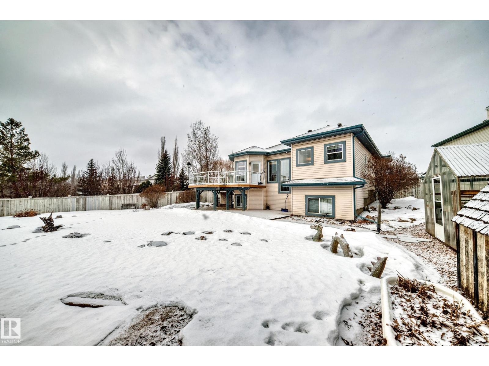WALKOUT BUNGALOW !!! One of The Largest Fenced Lots over 10, 700 sq ft. Gorgeous Landscape, Fully Fin Walkout Bsmt offers best living in desired Glastonbury. Located next to lake w walking trails at hand. Total of 5 spacious bedrooms, 3 full 4 piece washrooms, this home provides exceptional flexibility for growing families or multi-generational living. The main floor showcases an open-concept layout with abundant of natural light, a well-appointed kitchen featuring stainless appliances has seamless flow into the dining & living areas. A cozy gas fireplace anchors the living room, creating the perfect atmosphere for relaxing evenings. Main floor den flex area & Laundry are super. The fully dev walkout level expands your living options w 3 bedrooms, a generous recreation area, etc. Direct access to the backyard features a covered deck area to enjoy all types of weather—ideal for entertaining, enjoying Edmonton’s beautiful seasons. Cul de sac front w rec parking, Double Att truck size Garage, Must View !! (id:63190)