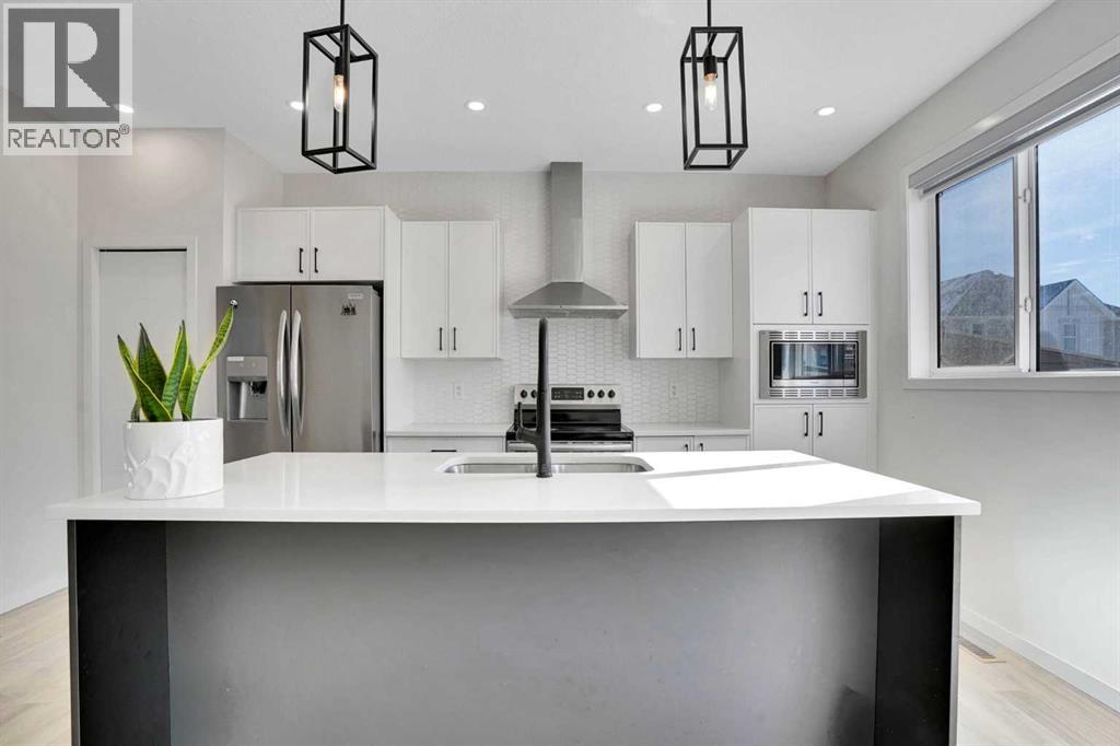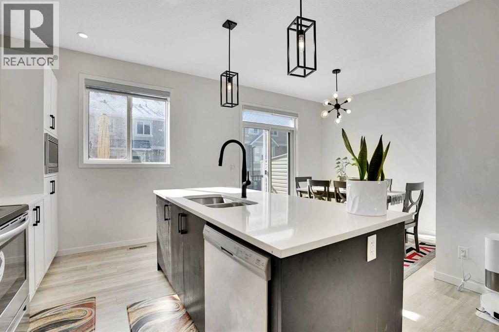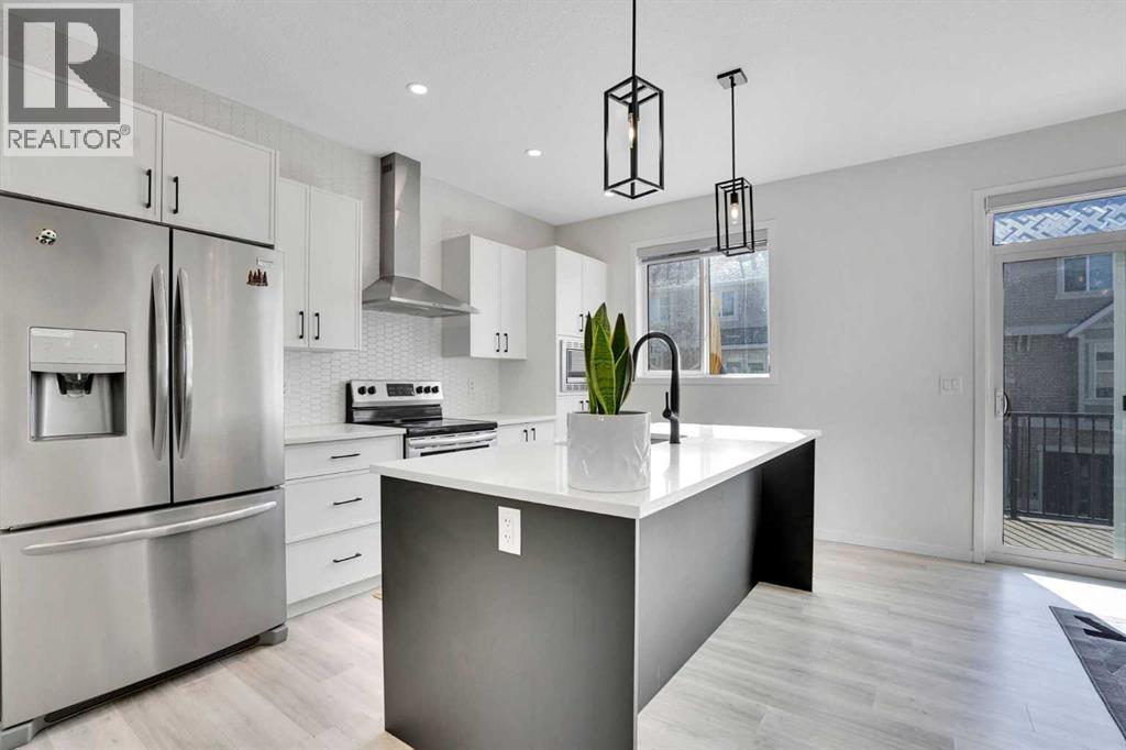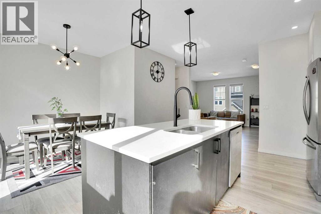 PRICE REDUCTION!!! Welcome to this impeccably maintained townhouse in the highly sought-after SouthPoint Park community of SW Airdrie. Offering 3 bedrooms, 2.5 bathrooms, and a versatile lower-level flex space, this residence seamlessly blends modern style, thoughtful design, and everyday comfort.Step inside to a bright, open-concept layout designed for both functionality and elegance. The lower level features a spacious flex area—ideal for a home office, fitness studio, media room, or play space—providing flexibility to suit your lifestyle needs.The main level showcases beautiful vinyl plank flooring throughout and an effortless flow between living spaces. At the heart of the home is a stunning white kitchen accented with striking black finishes. Designed with both form and function in mind, it features a generous centre island, sleek stainless steel appliances, quartz countertops, and a dramatic full-height tile backsplash. Ample cabinetry and counter space make this kitchen perfect for everyday living and hosting gatherings alike.Across from the kitchen is a spacious dining area with direct access to a private balcony—an inviting extension of your living space. Adjacent, the comfortable and well-proportioned living room offers the perfect setting to relax or entertain. A convenient powder room completes this level.On the upper level, the primary suite provides a private retreat, complete with a 3-piece ensuite. Two additional well-sized bedrooms, a full bathroom, and the convenience of upper-level laundry complete the upper floor.The attached double garage offers both practicality and additional storage, while the spacious balcony creates an ideal outdoor escape for morning coffee or evening relaxation.Ideally located just steps from schools, playgrounds, and everyday amenities, this home presents an exceptional opportunity for families and modern buyers alike. With its strategic location, thoughtful layout, and outstanding value, this turnkey residen ce delivers comfort, convenience, and lifestyle in one exceptional package.Don’t miss your chance to make this property your own — schedule a private showing or connect for early access today!??? (id:63190)
