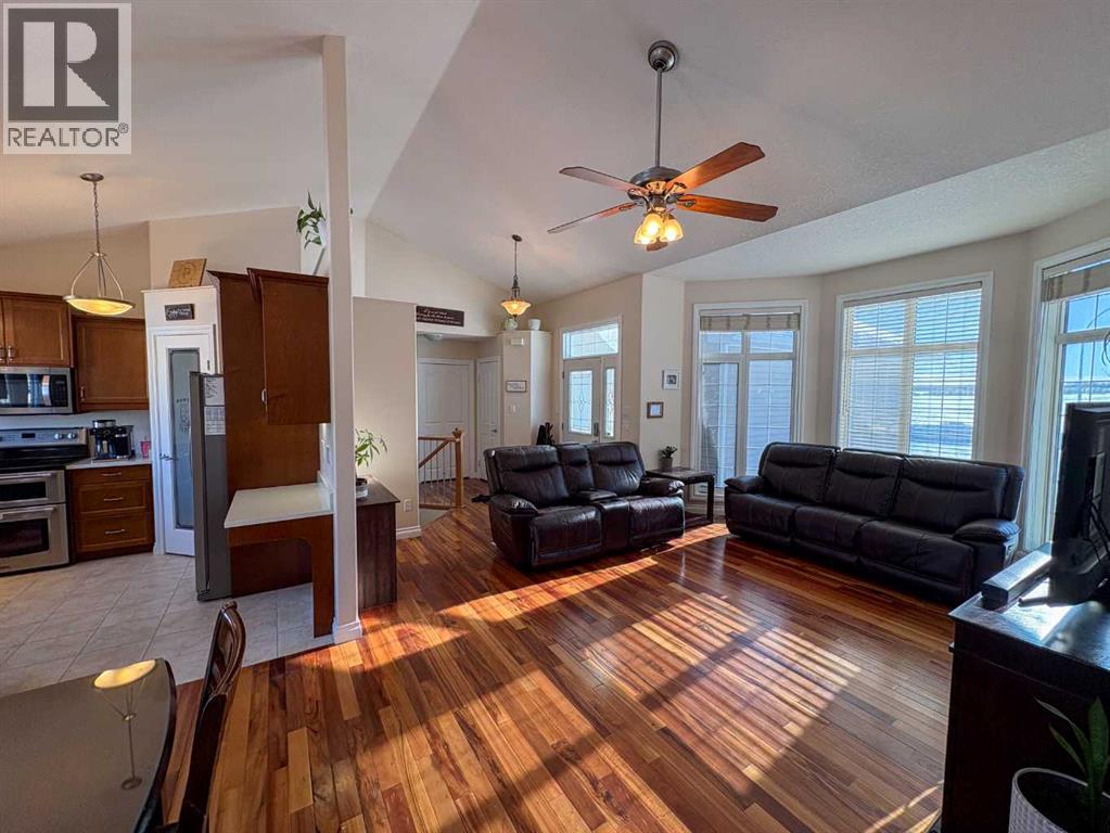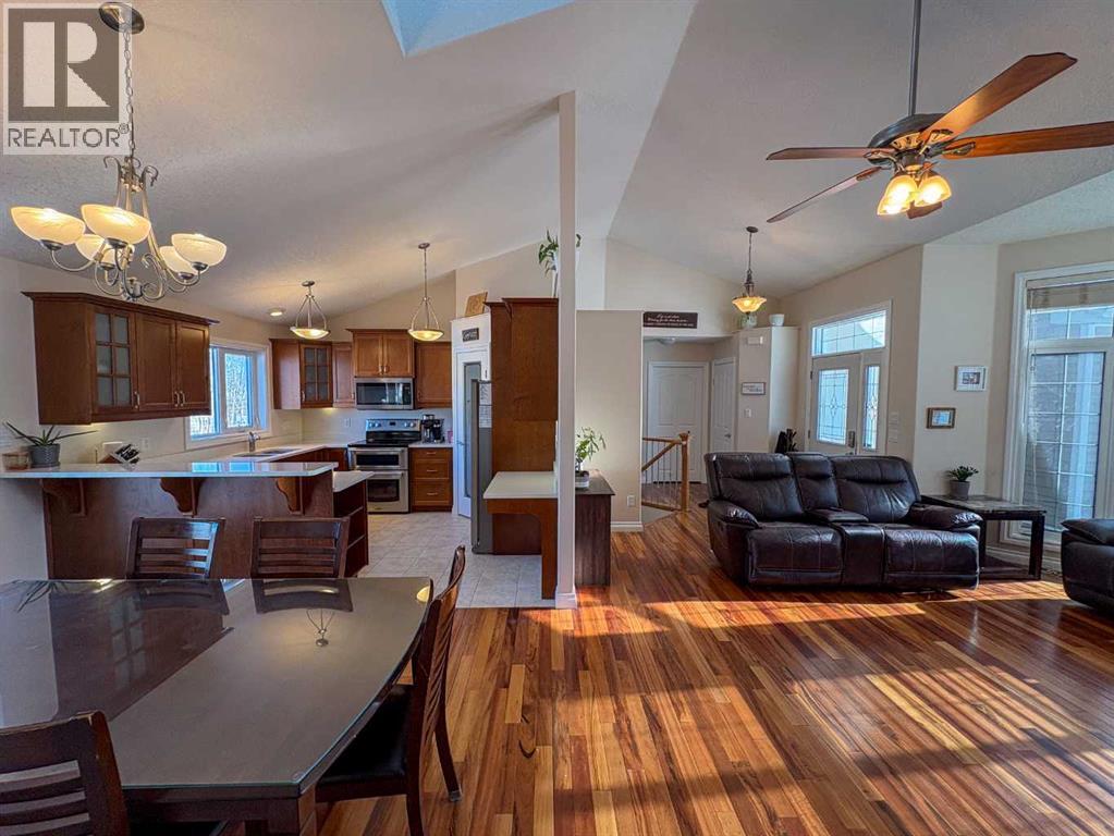 If you’ve been searching for space - inside and out - on a quiet street in Mayerthorpe, this one deserves your attention!Welcome to paradise in Mayerthorpe, a spacious 5 bedroom, 3 bathroom bungalow sitting on the largest lot on the street, just minutes from the school and hospital. Here, there’s room to breathe, grow, and truly enjoy home life.Inside, beautiful hardwood flooring adds warmth and character to the main living areas, and generously sized bedrooms give everyone their own comfortable retreat. Main floor laundry keeps everyday life practical and convenient.Downstairs, the expansive rec room is made for entertaining: perfect for hosting game nights around the pool table or unwinding at your own wet bar. Enjoy in-floor heat in the basement for an added level of comfort. It’s a space designed for connection, laughter, and long evenings with friends.Step outside and you’ll find *new* asphalt shingles, a 45' concrete RV pad, a backyard with plenty of room for kids to play, and space to gather around the firepit on warm summer nights. Whether it’s backyard football, roasting marshmallows, or simply enjoying the quiet, this yard delivers.Complete with a generous double car garage with in-floor heat and thoughtful space throughout, this home blends functionality, lifestyle, and location in one exceptional package.If you’ve been waiting for a home that gives your family room to live fully - this is the one! (id:63190)