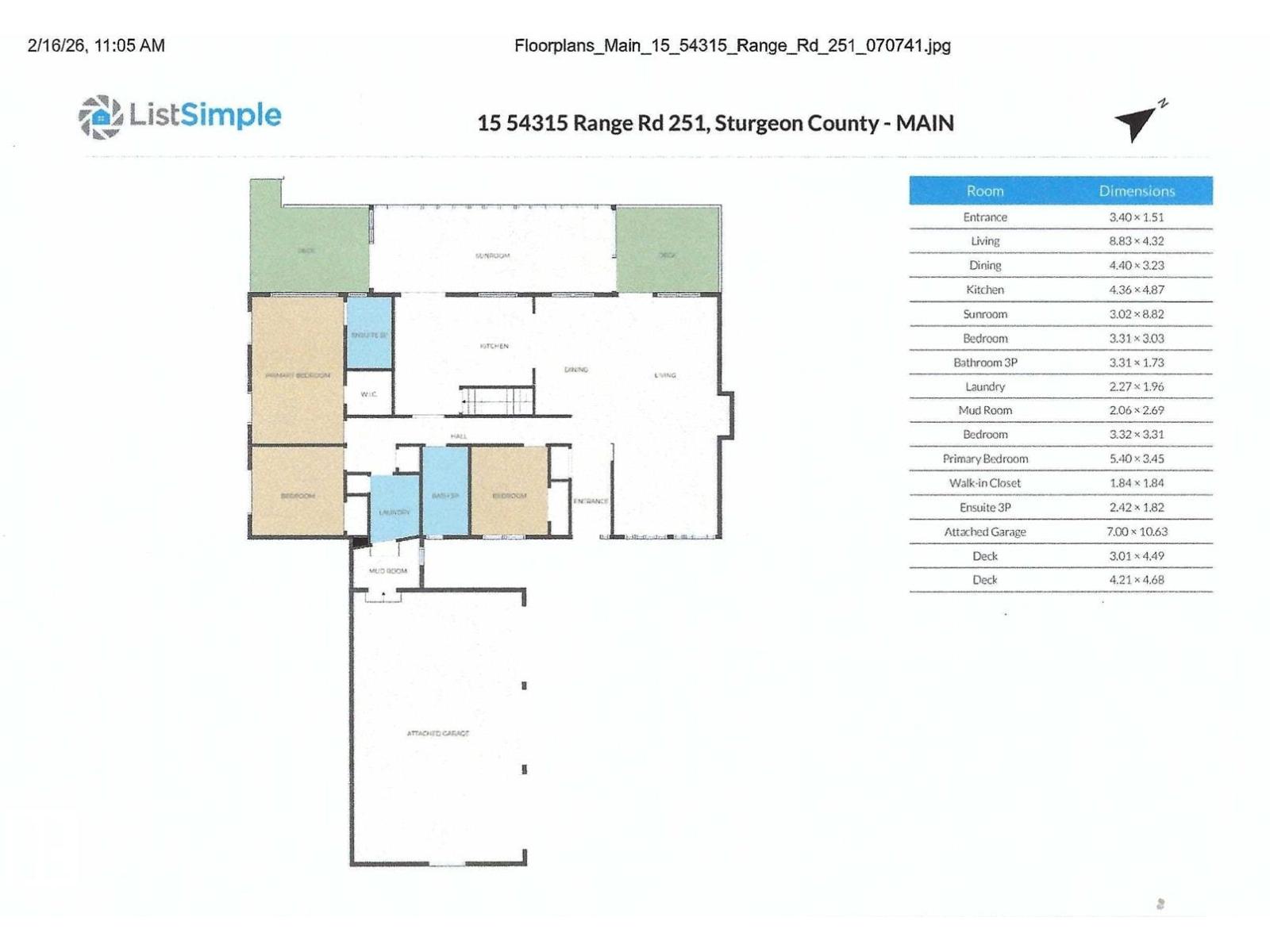 | Sunroom | Main level | 3.02 x 8.82 | — |