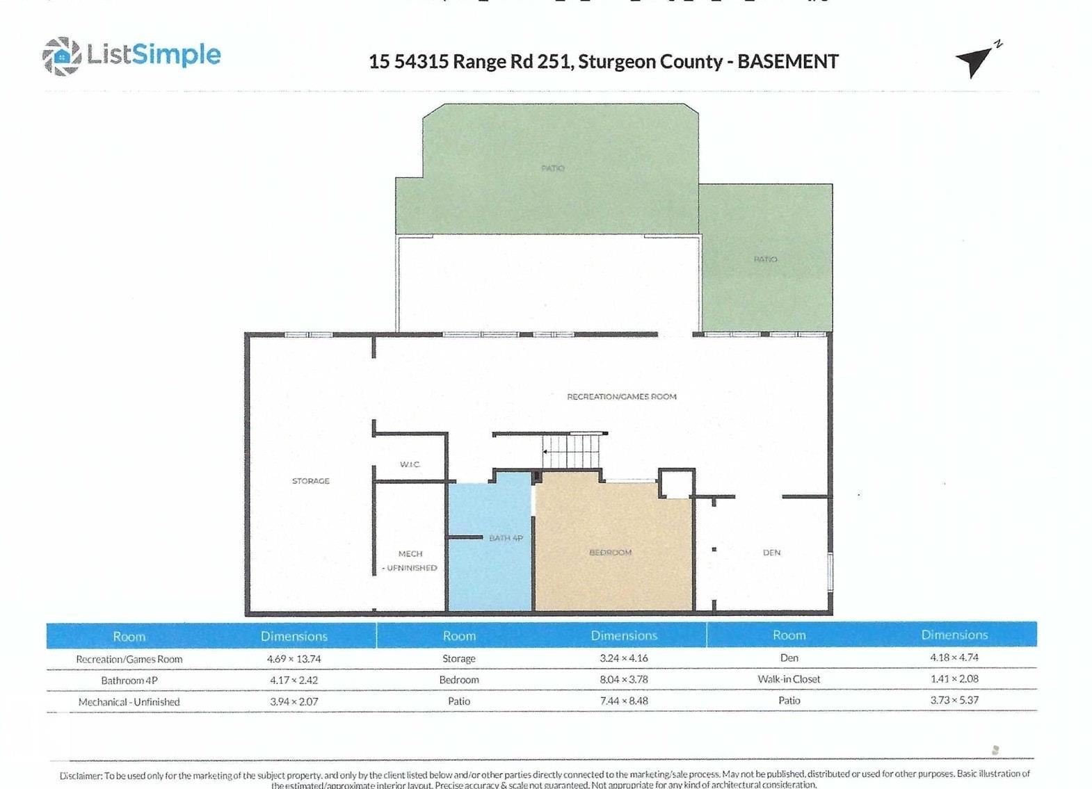 | Recreation room | Basement | 4.69 x 13.74 | — |