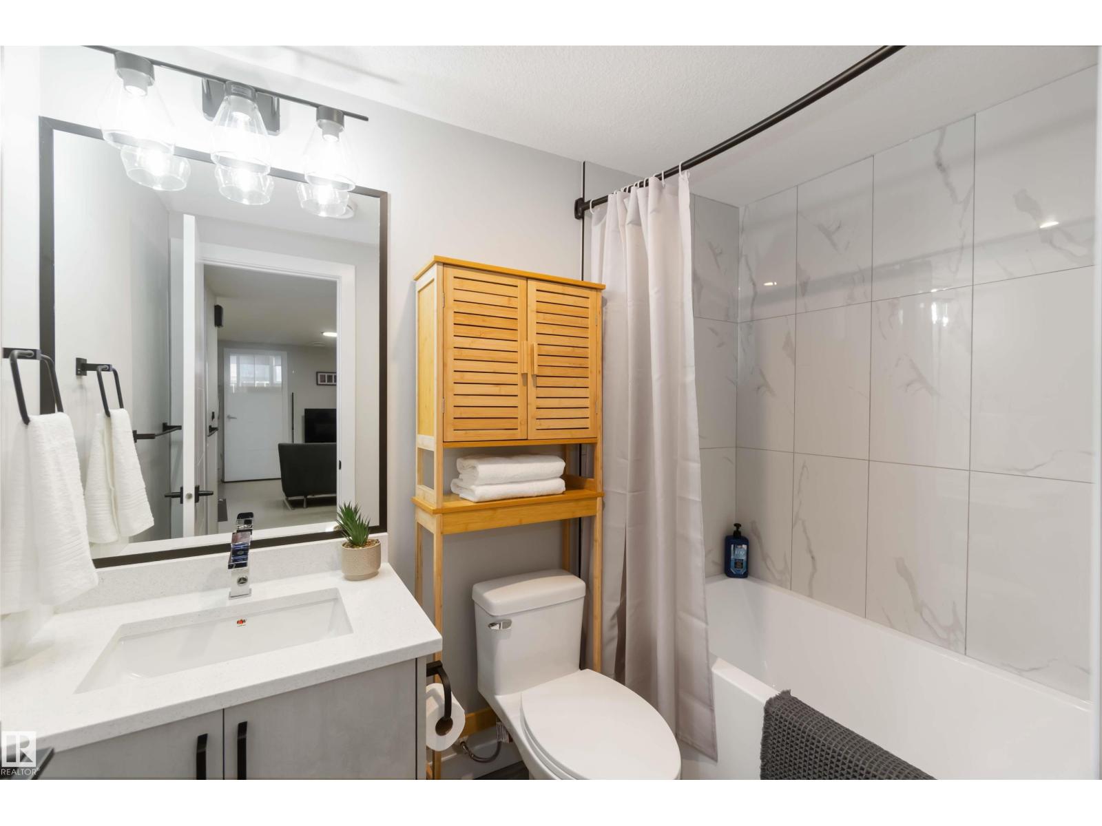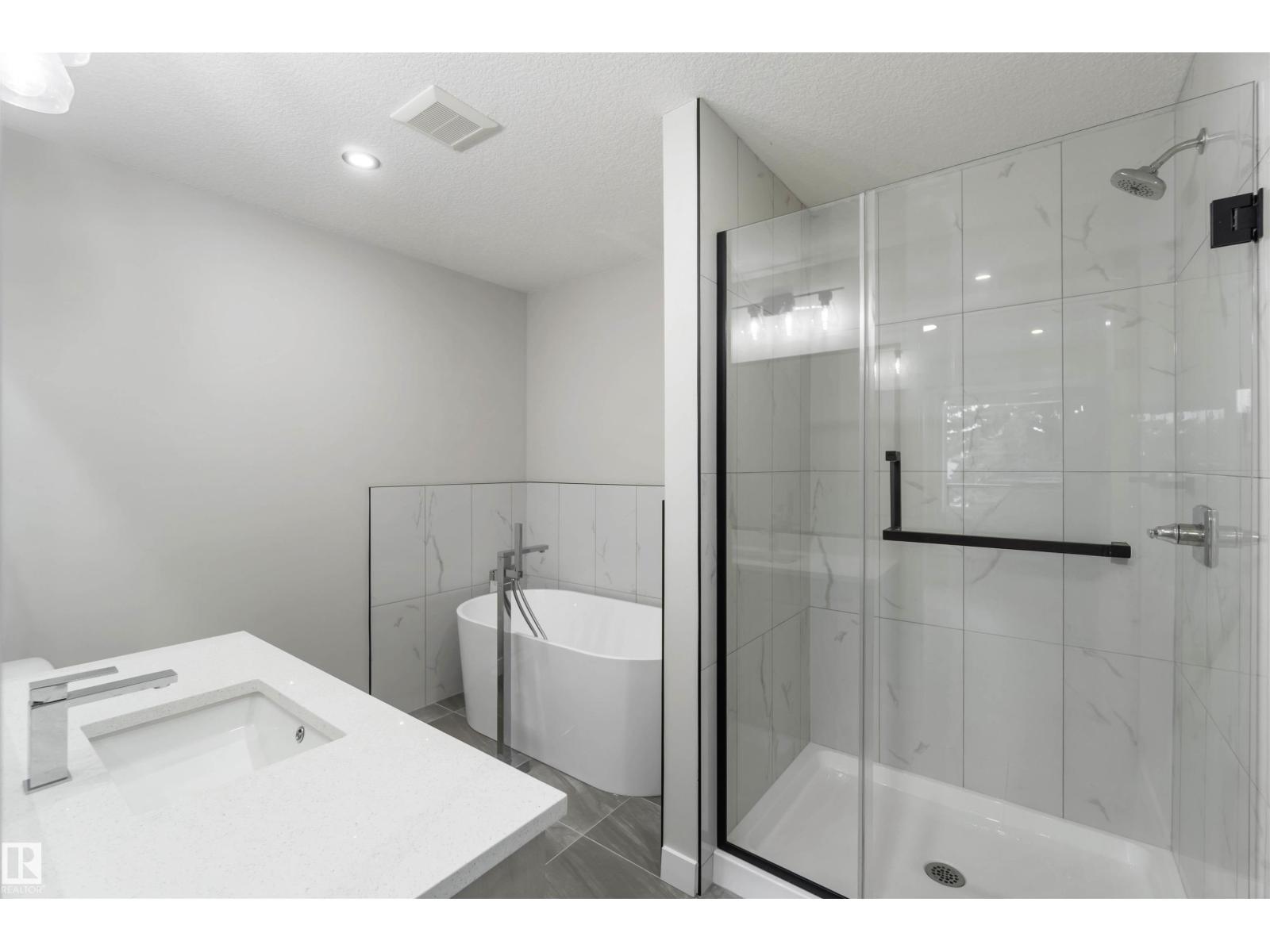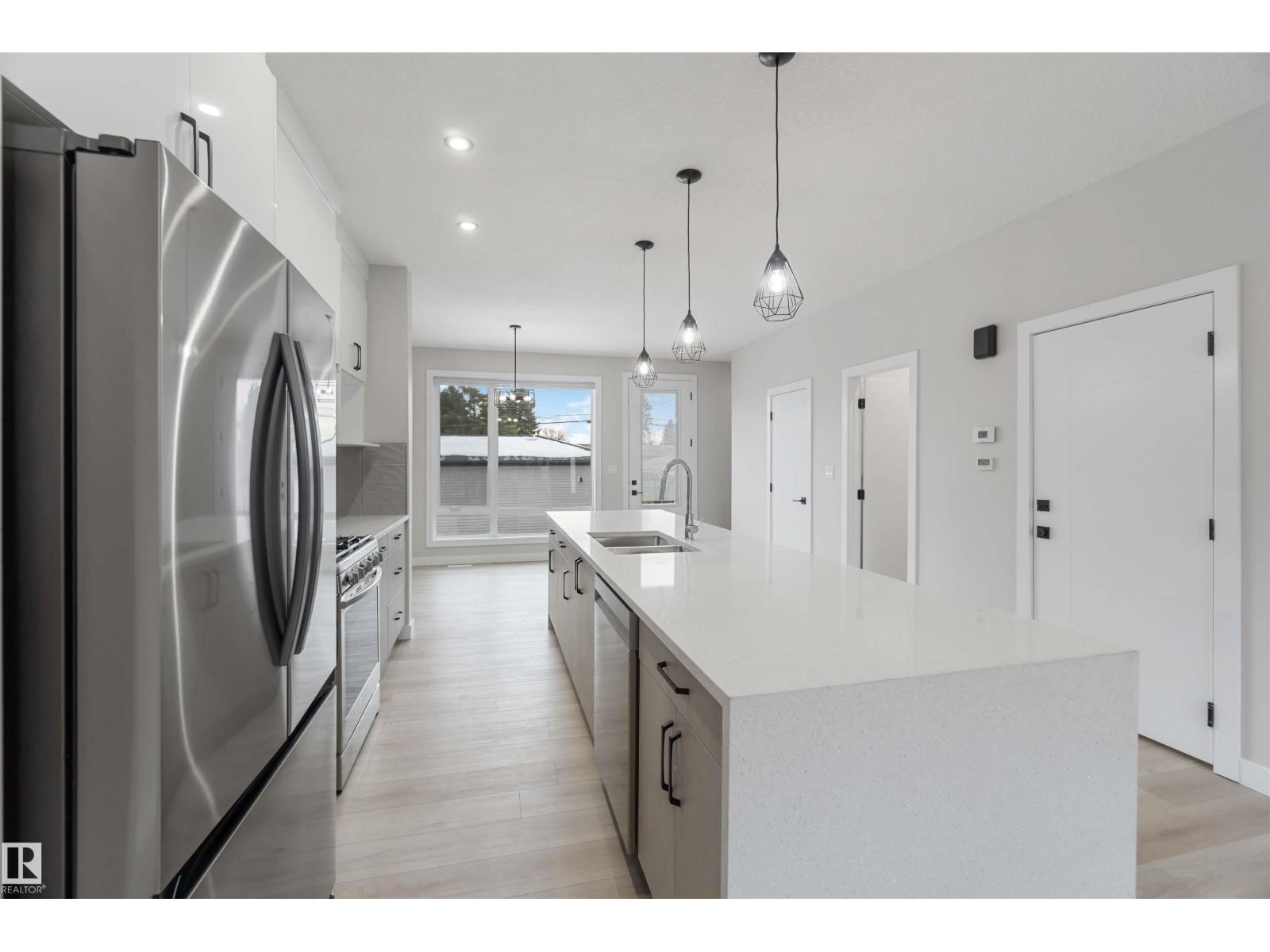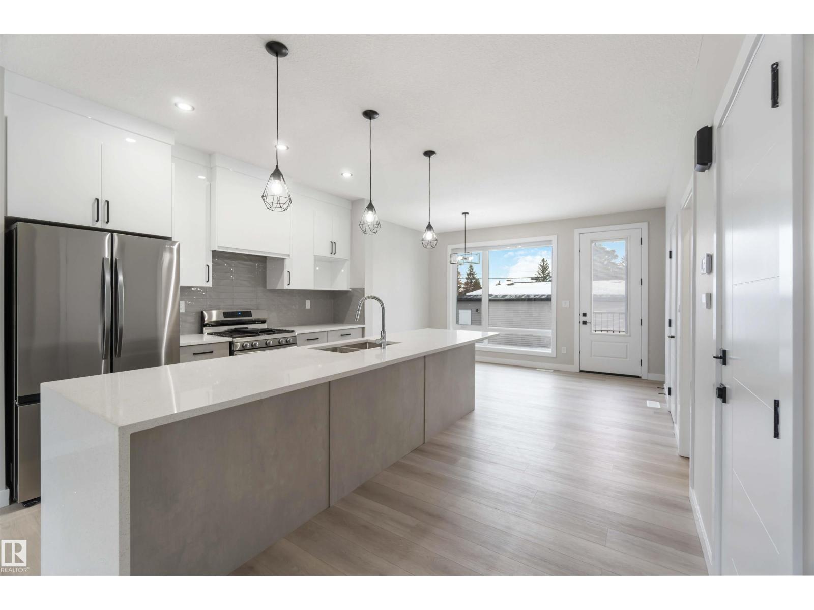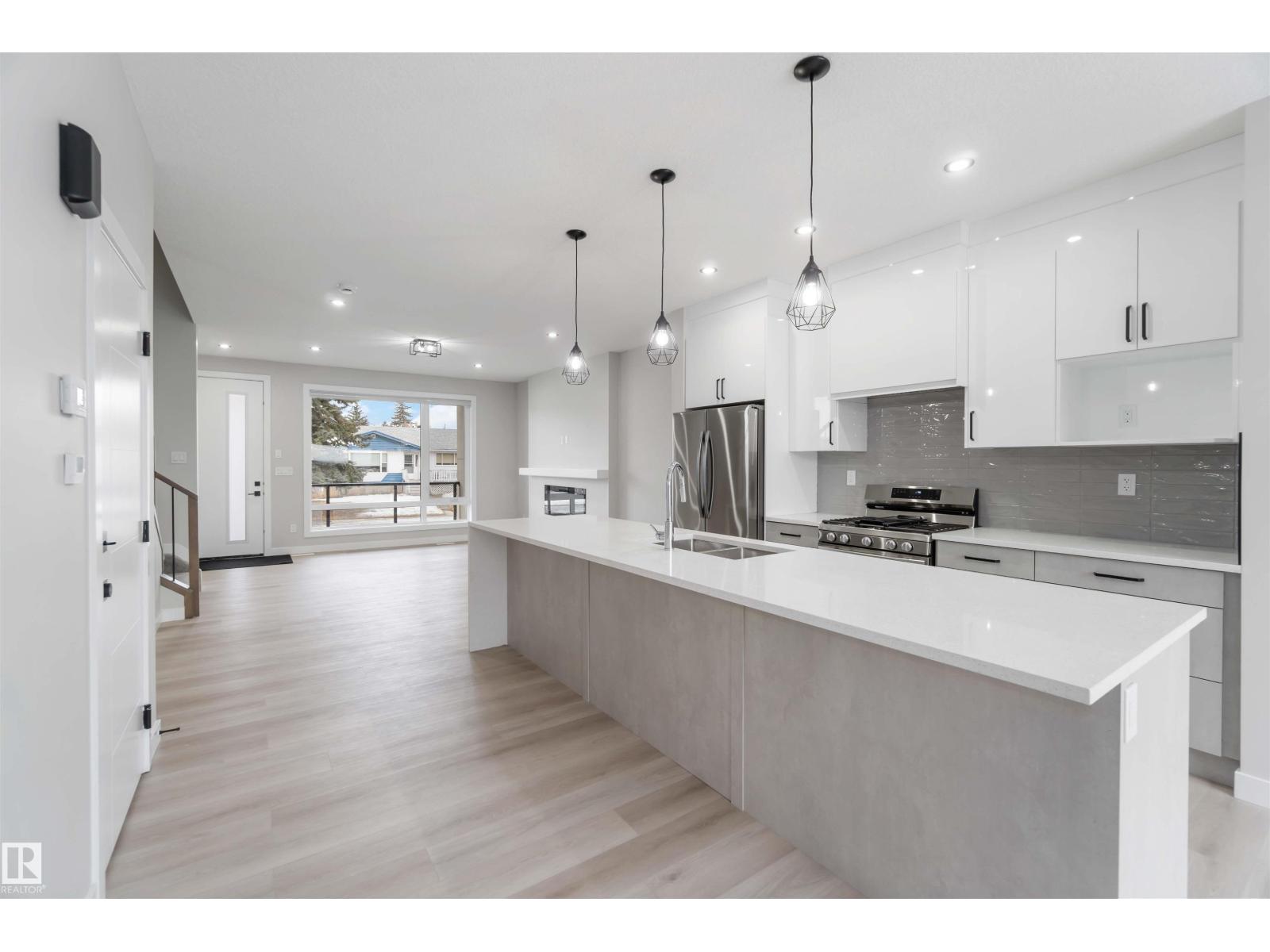 Welcome to this fully finished luxury duplex offering exceptional style featuring a legal basement suite with added income potential. With 5 bedrooms and 3.5 baths in total, this property is perfectly suited for homeowners looking to offset their mortgage or investors seeking a turnkey opportunity (Currently fully leased). The exterior showcases attractive stucco siding, a covered front porch, and a double detached garage. Inside, you’ll find modern finishes throughout, including quartz countertops, a massive kitchen island, ceramic tile and vinyl plank flooring, and a stylish electric fireplace that anchors the main living space. Upstairs, the spacious primary bedroom retreat features a private balcony, a walk-in closet, and a luxurious ensuite complete with a soaker tub and separate standing shower. Two additional bedrooms and a 4-piece bath complete the upper level. The legal basement suite includes 2 bedrooms, 4-piece bath, kitchen, and living room. An outstanding opportunity you won’t want to miss. (id:63190)