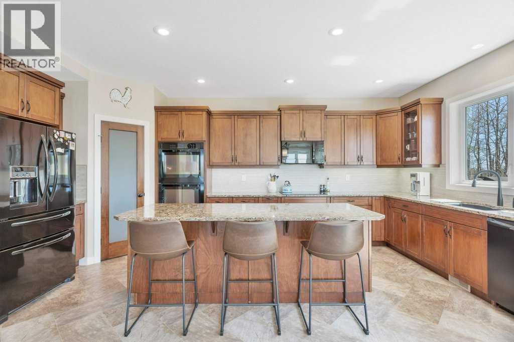 Well laid out acreage located just south of Hwy 11 in the Condor area offered for sale by the original owners. The stunning custom built 1 1/2-storey home is a lovely combination of country charm and modern touches with beautiful views and so many thoughtful features including a spacious and welcoming foyer, open and inviting kitchen, dining room and living area with big bright windows and an oversized island with quartz countertops. The primary bedroom suite is also on the main level and includes a luxurious 4-piece ensuite with an oversized shower and a walk in closet. There's direct access through the laundry area to the 28 x 32' finished garage as well as from the kitchen to the back deck with a treed, private yard. The upper level features two bedrooms and a 4-piece bathroom, perfect for children, guests or a home office. The fully finished walk-out basement adds incredible versatility with a large rec room, bar area, full bathroom, 2 additional bedrooms, a gym or craft room, ample storage and a spacious utility room. Just off the lower level there's a private patio and fire pit, perfect for entertaining guests or relaxing with family. Large windows throughout the home allow for just the right amount of natural light and it's also wired with Control 4 technology (all components will stay). In addition to the garage is a 30 x 40' shop with 20 x 40' lean-to space on either side for additional storage and parking. If you're hoping to have a few animals there's a fenced pasture area and stock waterer. We could go on and on about this amazing property, but it would be better if you come and see it for yourself! (id:63190)