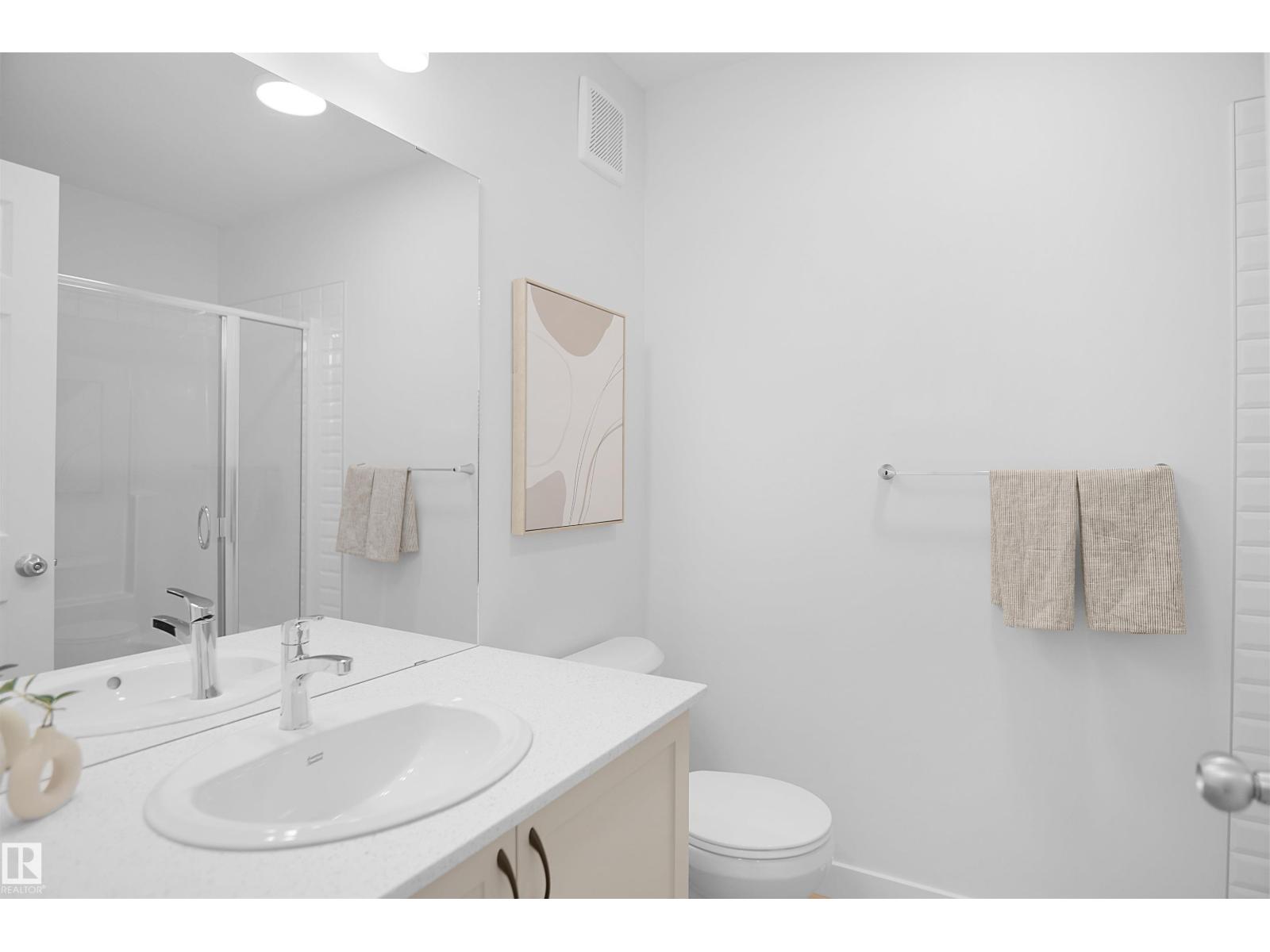 Welcome to this brand new half duplex, the “Reimer” model built by the award-winning Pacesetter Homes, located in one of Edmonton's newest west-end communities of River’s Edge. With over 1,280 sq. ft. of thoughtfully designed living space, this home is ideal for a young family or couple looking for modern style and functionality. The main floor features a versatile flex room or 3rd bedroom located conveniently near the garage entrance, complete with a full 3-piece bathroom perfect for guests or a home office setup. Upstairs on the second level, you'll find a contemporary kitchen with upgraded cabinetry, premium countertops, tile backsplash, and luxury vinyl plank flooring flowing seamlessly into the spacious great room, ideal for entertaining. The upper level offers 2 comfortable primary bedrooms and 2 full bathrooms, including a well-appointed primary suite. Additional features include a single oversized attached garage and modern finishes throughout. *** under construction , complete by August 2026 *** (id:63190)
