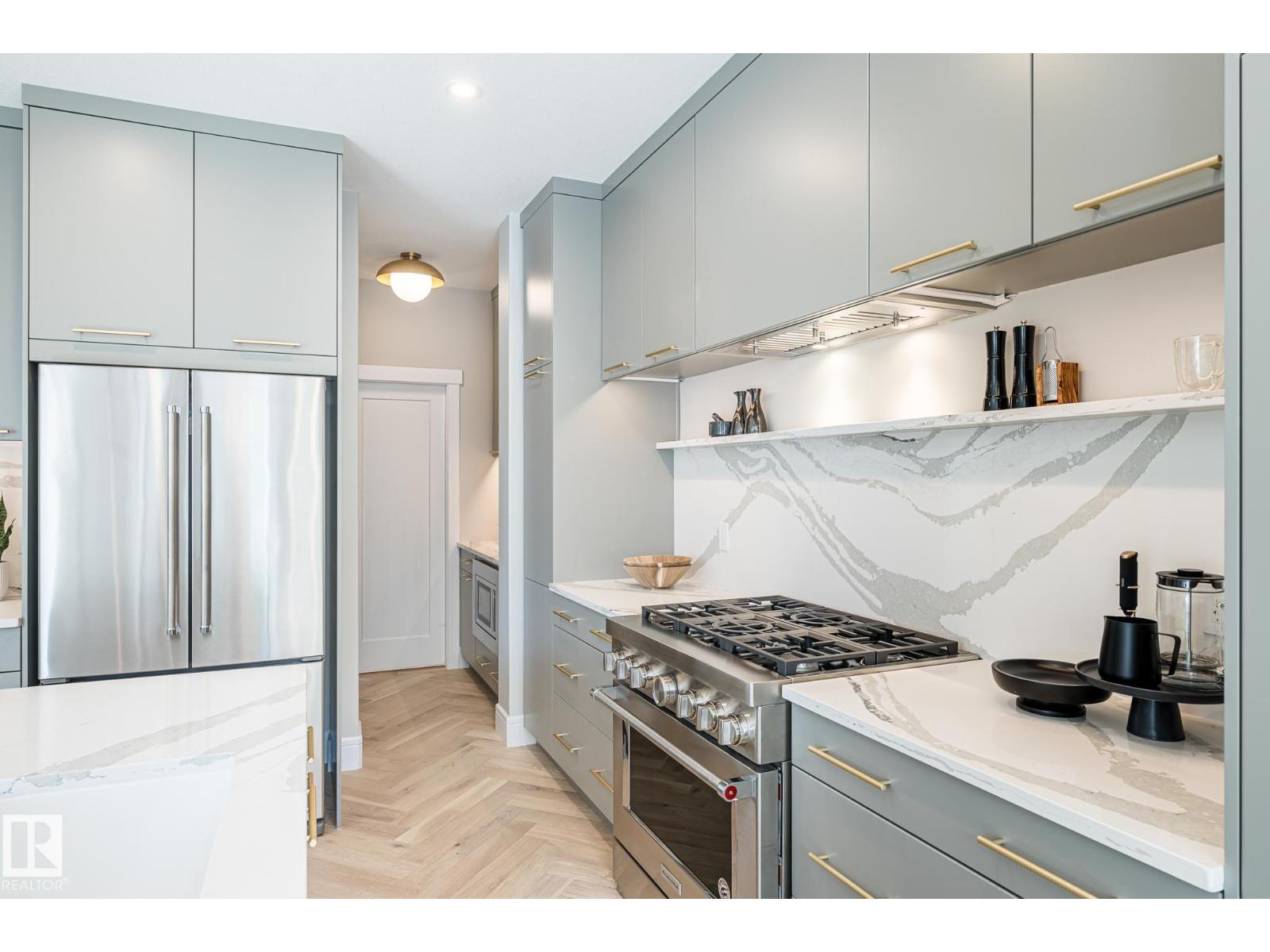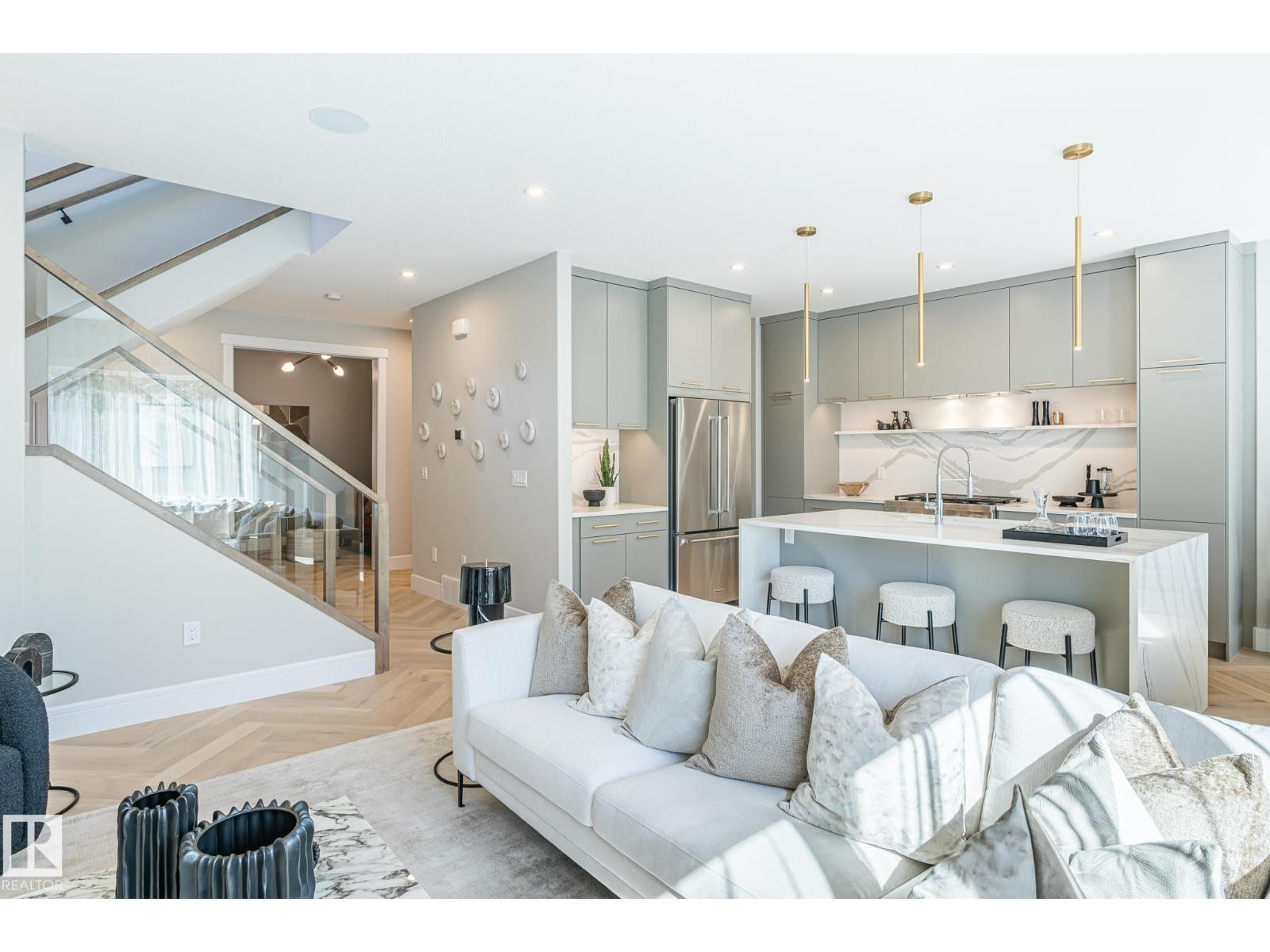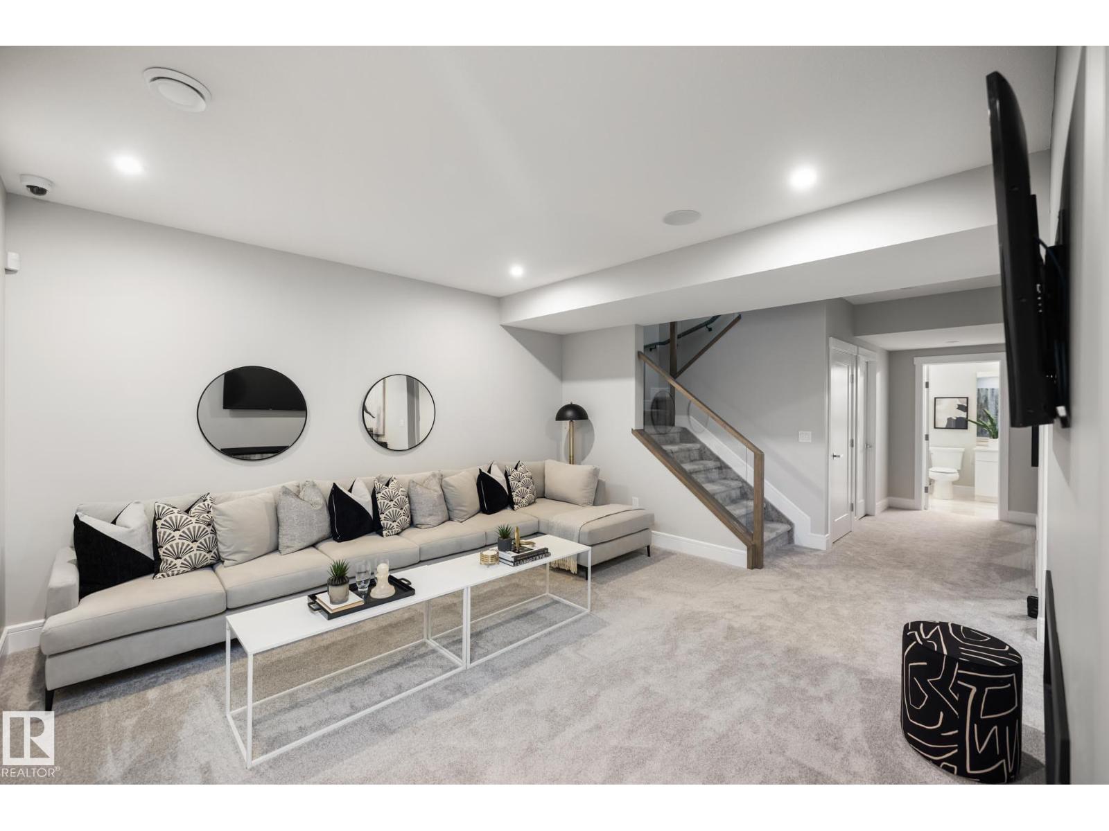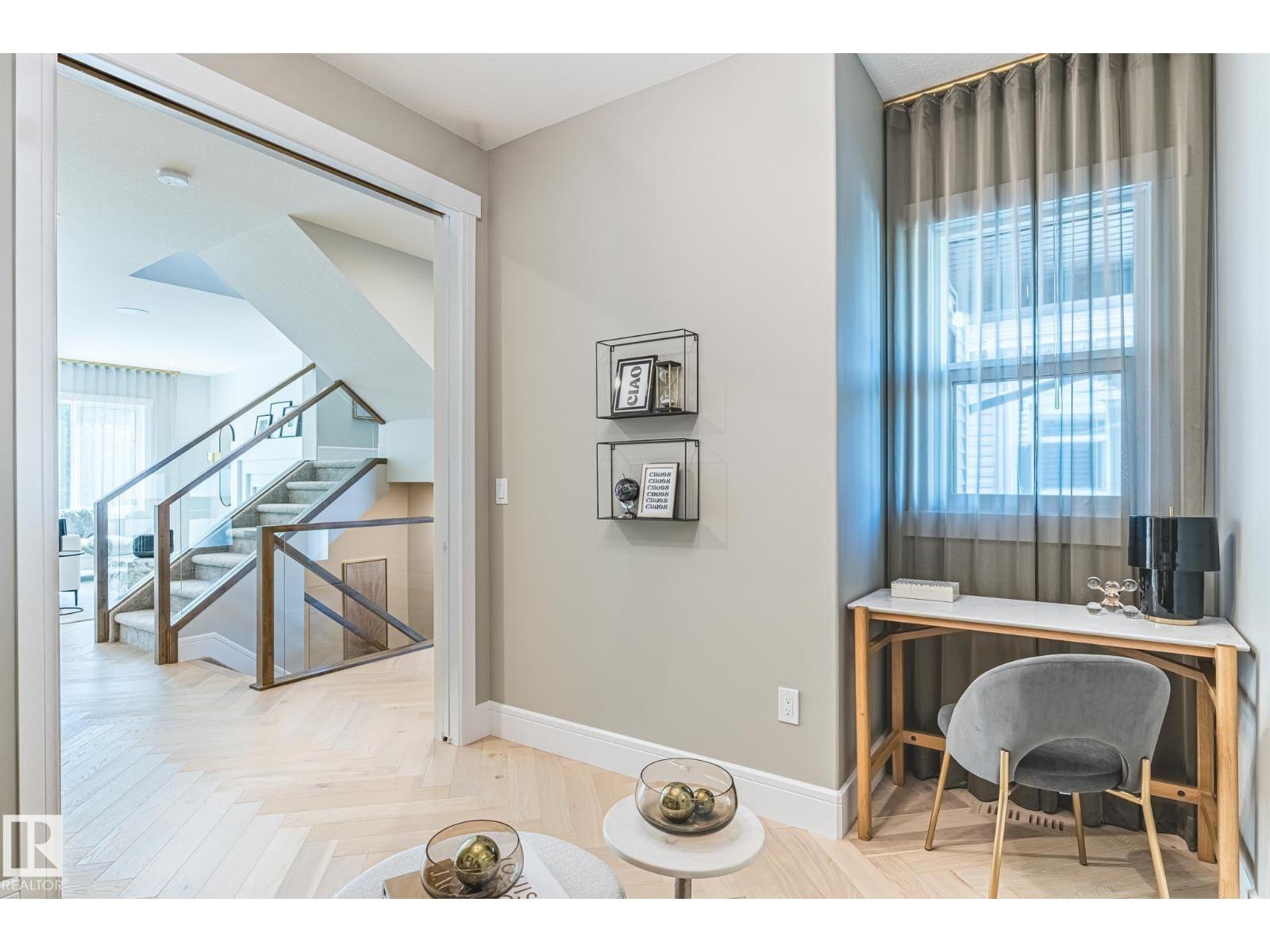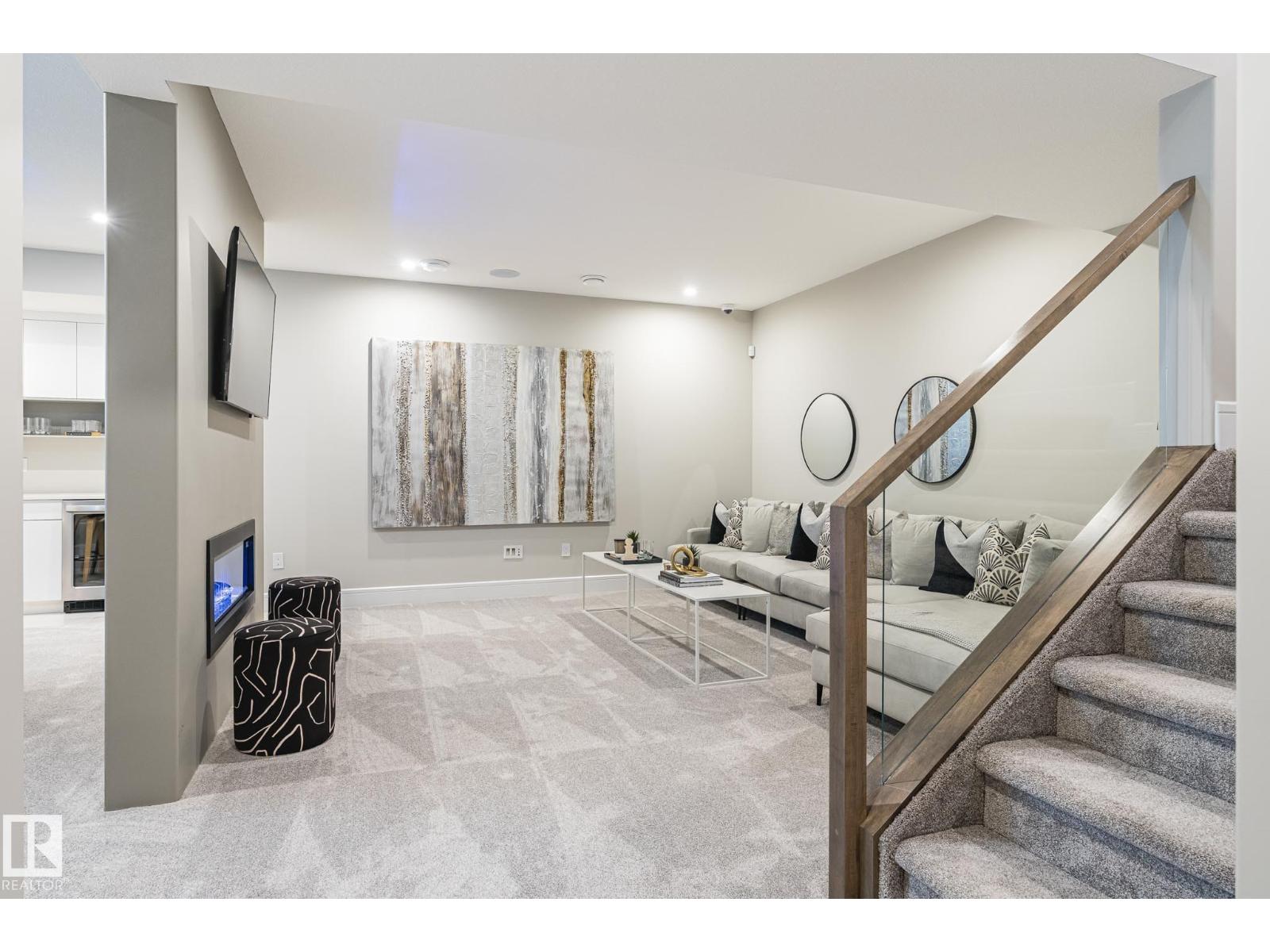 Designed to leave a lasting impression, this former Coventry Homes showhome captures the perfect balance of luxury and comfort. The main floor showcases 9’ ceilings (also in the basement), herringbone hardwood, and a showstopping kitchen w/ stainless steel appliances, gas stove, waterfall quartz island, full quartz backsplash, upgraded cabinetry, and walkthrough pantry. Gather in the inviting living room around the stunning mantel and gas fireplace, while a dining area, main floor den, mudroom, and half bath add everyday ease. Upstairs, the spacious primary suite offers a walk-in closet and spa-like ensuite w/ freestanding tub, tiled glass shower, and dual sinks, plus a bonus room, 2 bedrooms, full bath, and laundry. The finished basement features a 2-sided fireplace, wet bar, rec space, 4th bedroom, games area, and full bath. Landscaped yard, deck, and double attached garage complete this exceptional home. (id:63190)