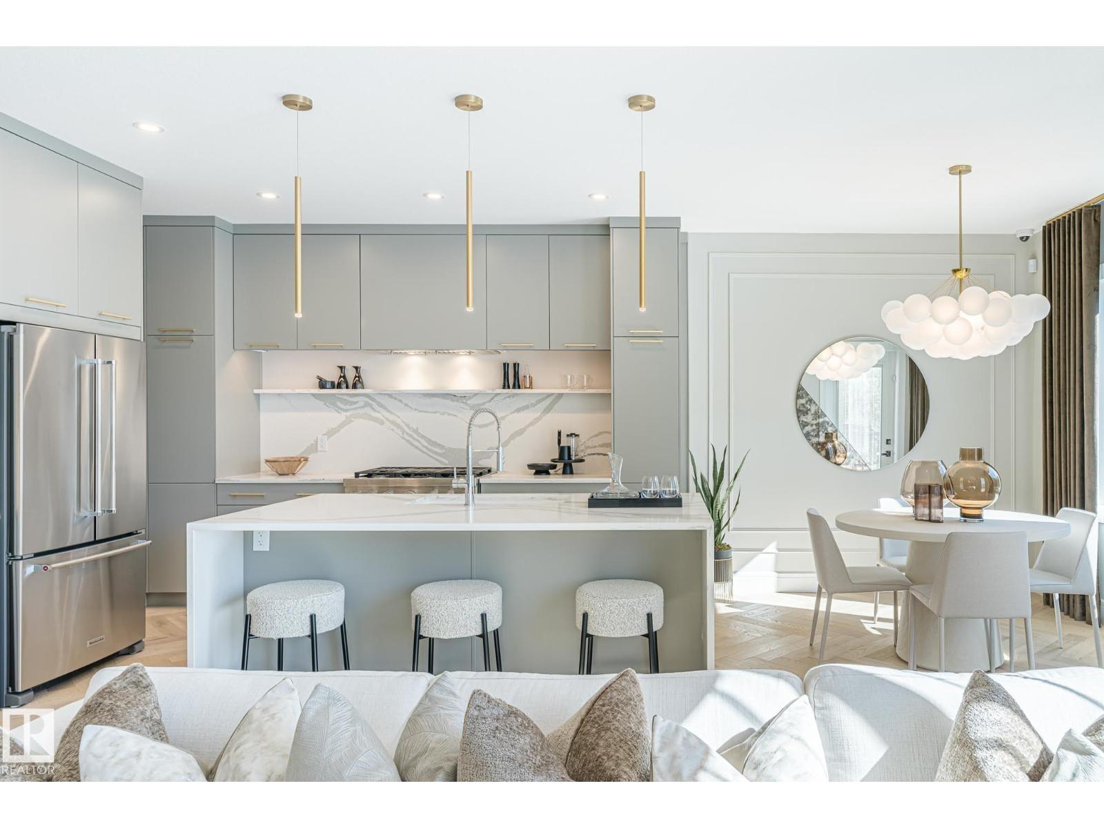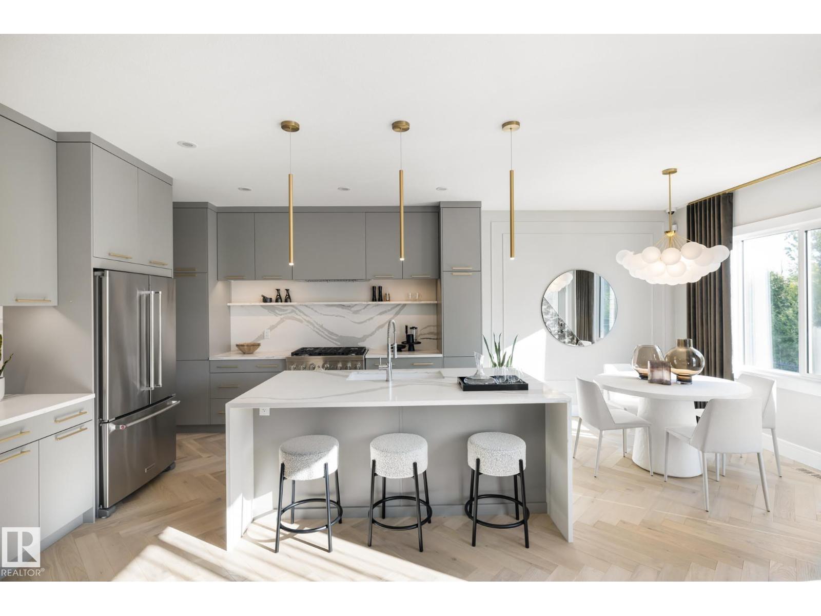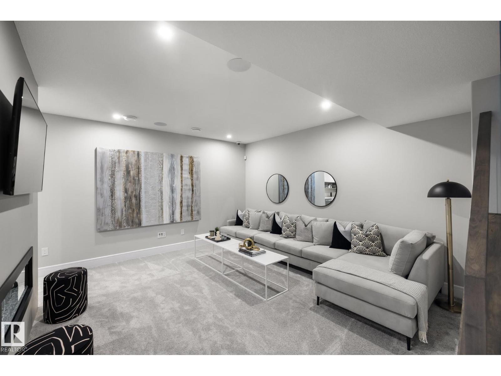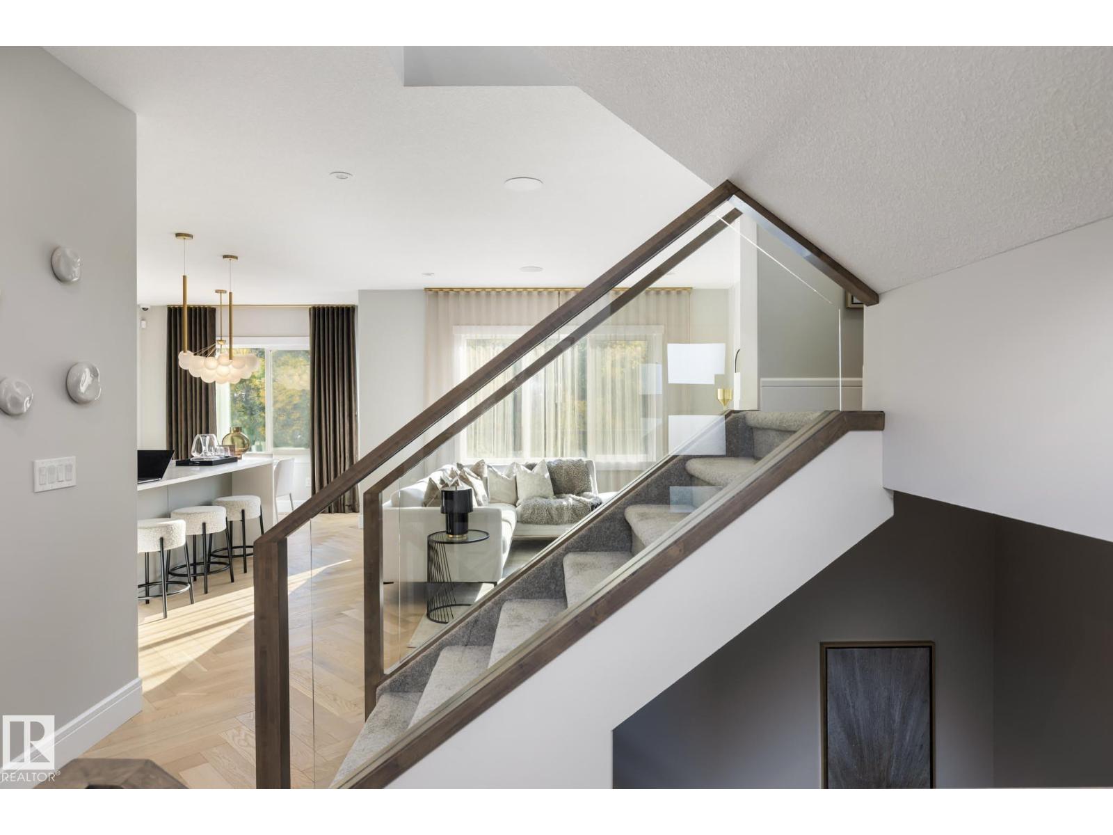 Designed to leave a lasting impression, this former Coventry Homes showhome captures the perfect balance of luxury and comfort. The main floor showcases 9’ ceilings (also in the basement), herringbone hardwood, and a showstopping kitchen w/ stainless steel appliances, gas stove, waterfall quartz island, full quartz backsplash, upgraded cabinetry, and walkthrough pantry. Gather in the inviting living room around the stunning mantel and gas fireplace, while a dining area, main floor den, mudroom, and half bath add everyday ease. Upstairs, the spacious primary suite offers a walk-in closet and spa-like ensuite w/ freestanding tub, tiled glass shower, and dual sinks, plus a bonus room, 2 bedrooms, full bath, and laundry. The finished basement features a 2-sided fireplace, wet bar, rec space, 4th bedroom, games area, and full bath. Landscaped yard, deck, and double attached garage complete this exceptional home. (id:63190)