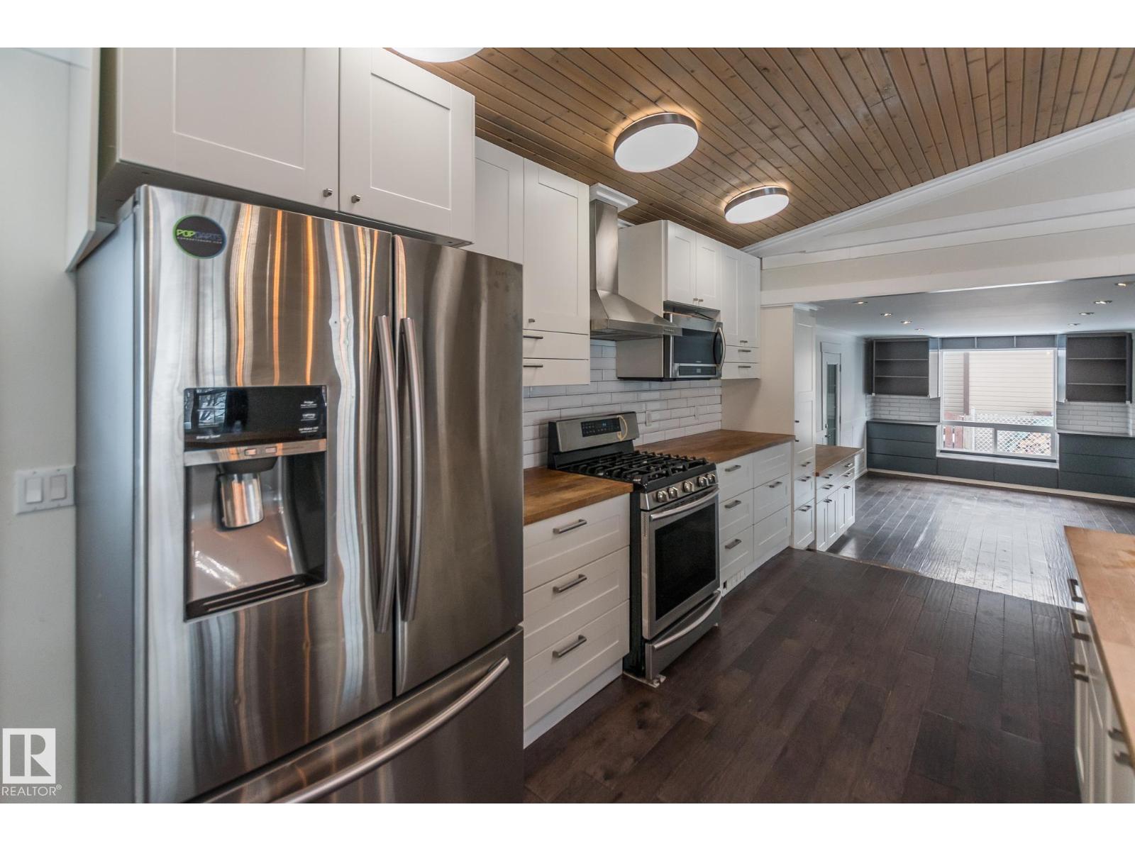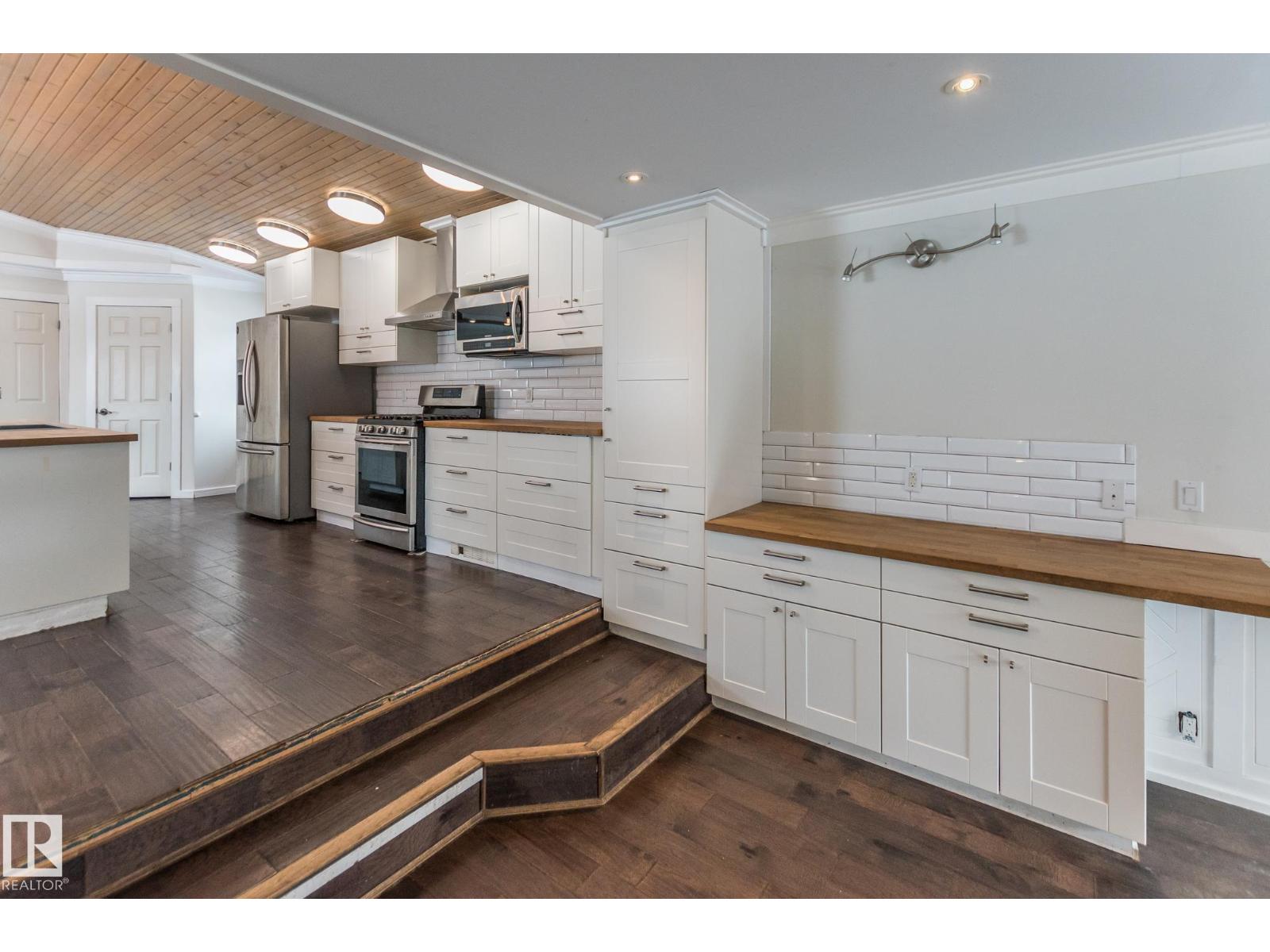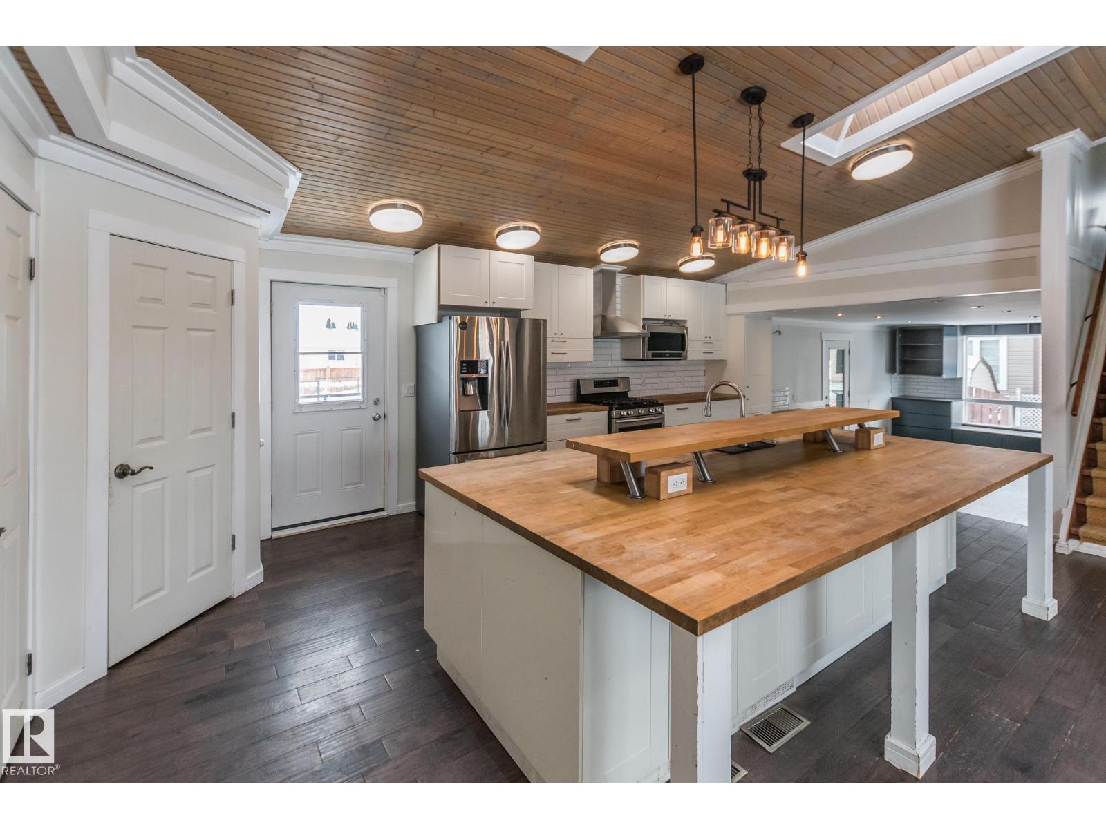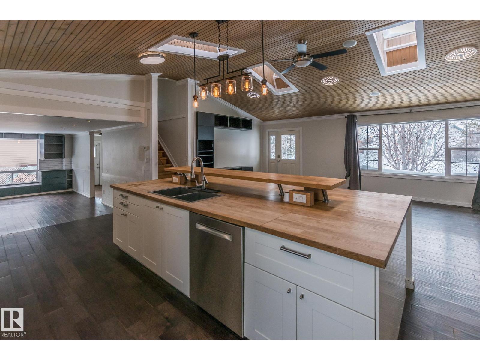 Welcome to this beautifully updated 3-level split offering 2,026 sq ft of living space, thoughtfully designed for comfort and function. This home features 4 bedrooms and 4 bathrooms, including a stylish 4-piece ensuite. The bright and open kitchen is a true showstopper—complete with white cabinetry, butcher block counters, stainless steel appliances, a large island with seating, and stunning wood ceilings with skylights that fill the space with natural light. Enjoy relaxing in the hot tub room, perfect for year-round use, or unwind in the fully fenced backyard, ideal for family gatherings and outdoor living. The oversized double detached heated garage provides plenty of space for vehicles, storage, or a workshop. Nestled in a quiet cul-de-sac and close to schools, this home is perfect for families seeking space, privacy, and convenience. (id:63190)