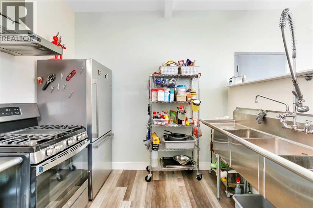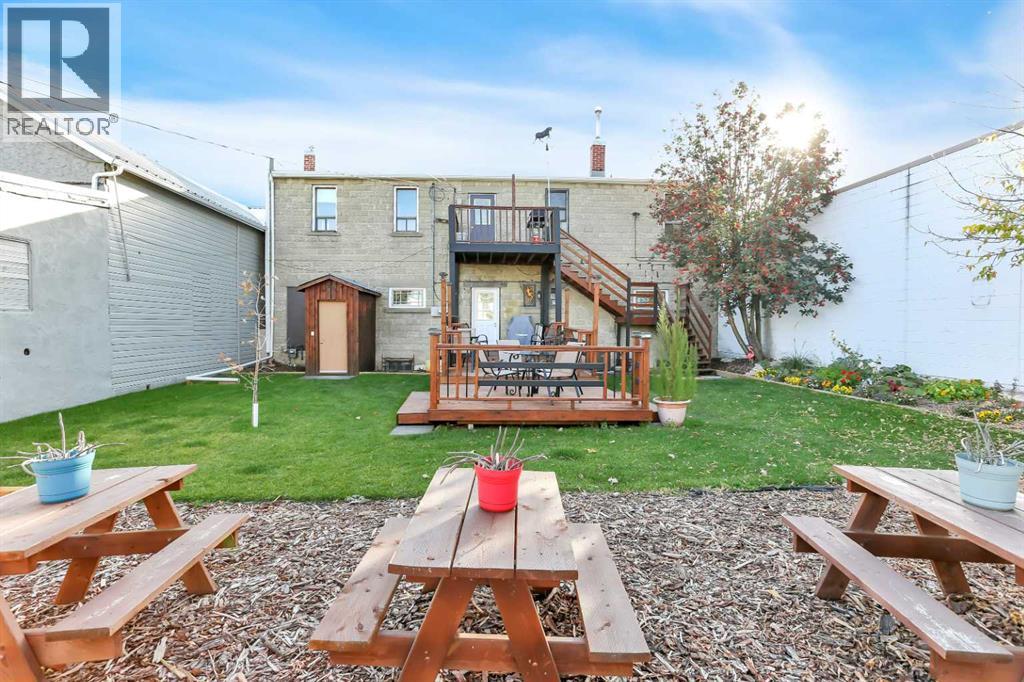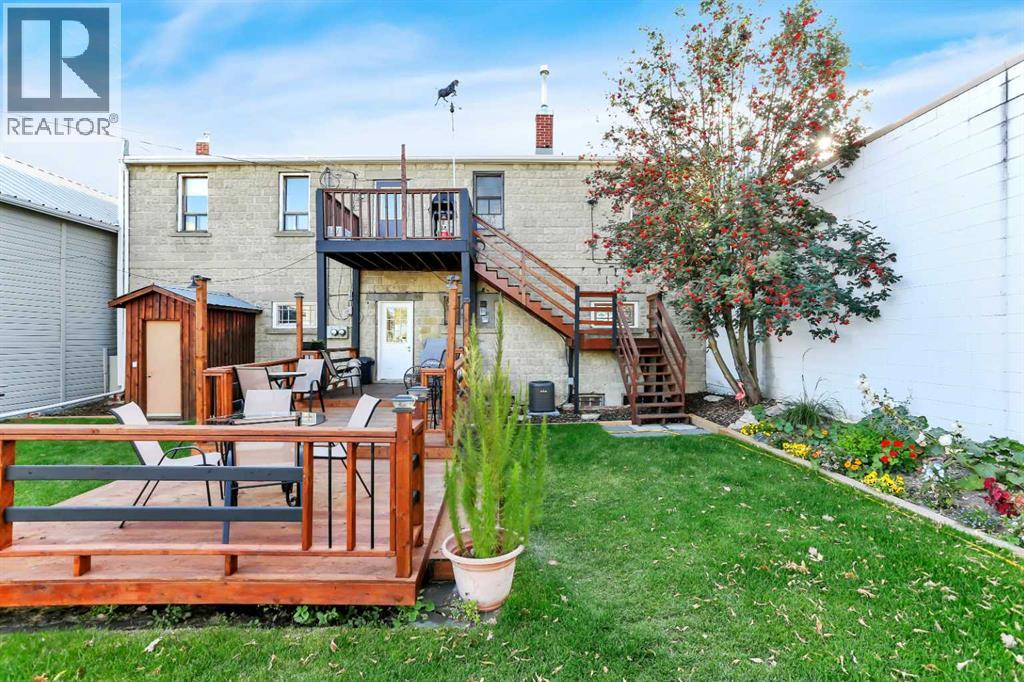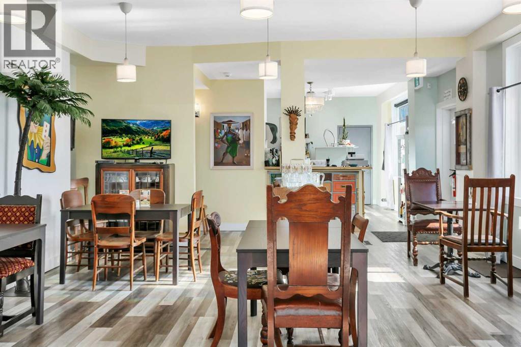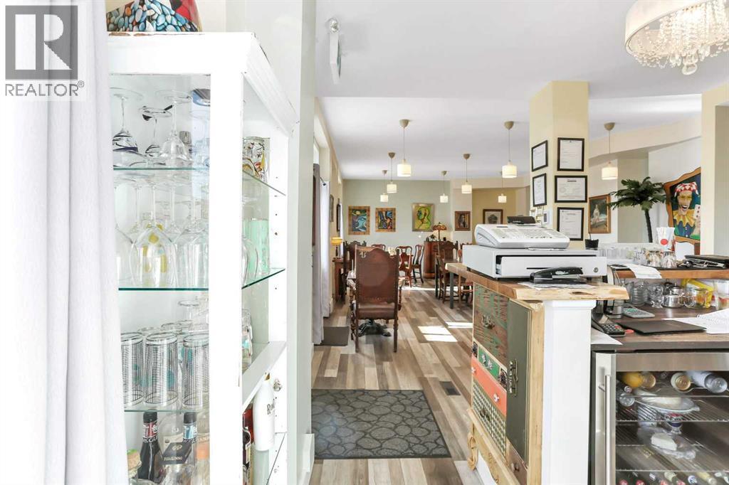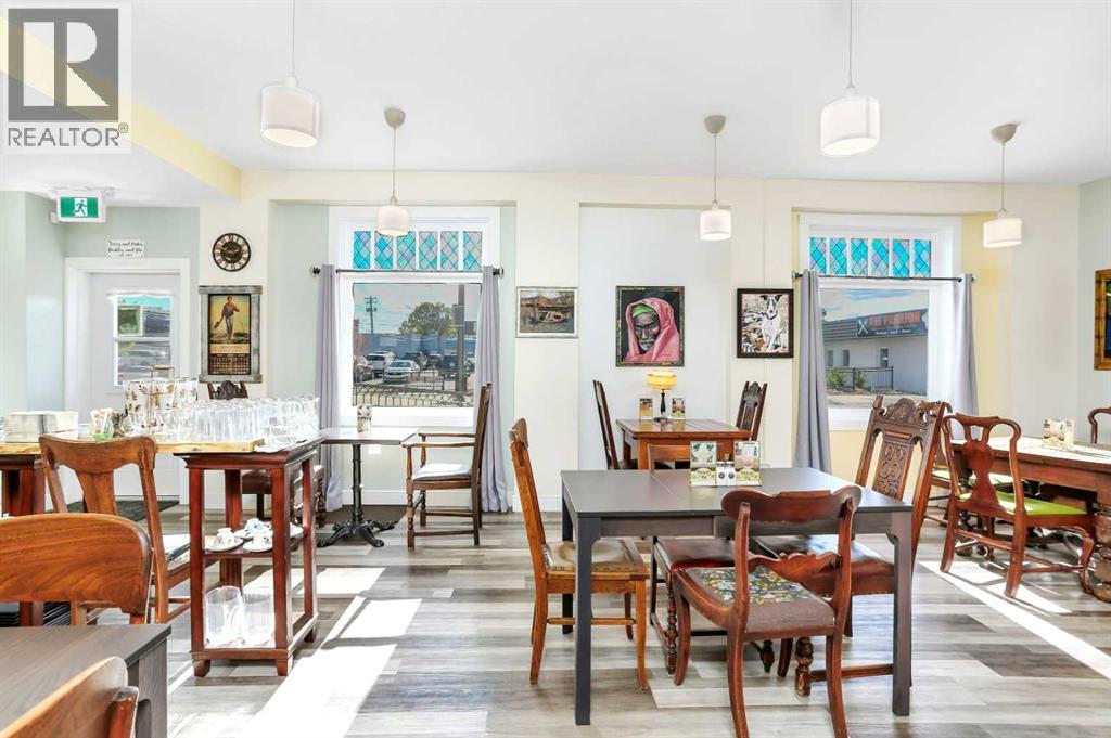Here is a beautifully restored historic property offering both commercial space and a residential suite in the vibrant heart of downtown. Currently operating as a successful restaurant/cafe specializing in lunches and special events. The restaurant has operational approval from Alberta Health Services, and also has a liquor license. It is Ideally located on a revitalized, high-traffic street, this distinctive building blends timeless character with extensive modern upgrades, creating exceptional flexibility for business, investment, or personal use. The main floor presents an inviting commercial space ready to bring your entrepreneurial vision to life by continuing with the restaurant or another business. There are four bathrooms in tota! Upstairs, you’ll find a fully renovated studio-style suite designed with both comfort and functionality in mind. The upper level features two bathrooms, a warm and welcoming living area, and private access to a deck, patio, and raised garden beds which are perfect for relaxing or entertaining. With a simple window modification, the suite could easily be reconfigured into a one- or even two-bedroom residence, adding further versatility and value. Significant upgrades completed in 2023/2024 provide peace of mind and long-term confidence, including new sewer and water lines, updated plumbing and electrical, furnace and air conditioning, new flooring, framing and drywall, fire door and front door, eavestroughs, and more. The exterior has also been thoughtfully enhanced with new fencing, refreshed landscaping, additional garden space, and beautifully constructed decks. With its seamless blend of historic elegance and modern improvements, this property may also qualify for historic preservation grant opportunities an added benefit for investors and business owners alike. There is plenty of space on the 50’ x 120’ lot for parking at the back with the option of buidling a garage in the future. Whether you’re looking to establish your business in a thriving downtown setting, generate rental income, or enjoy the convenience of living and working in one dynamic location; you won’t want to miss this opportunity. (id:63190)