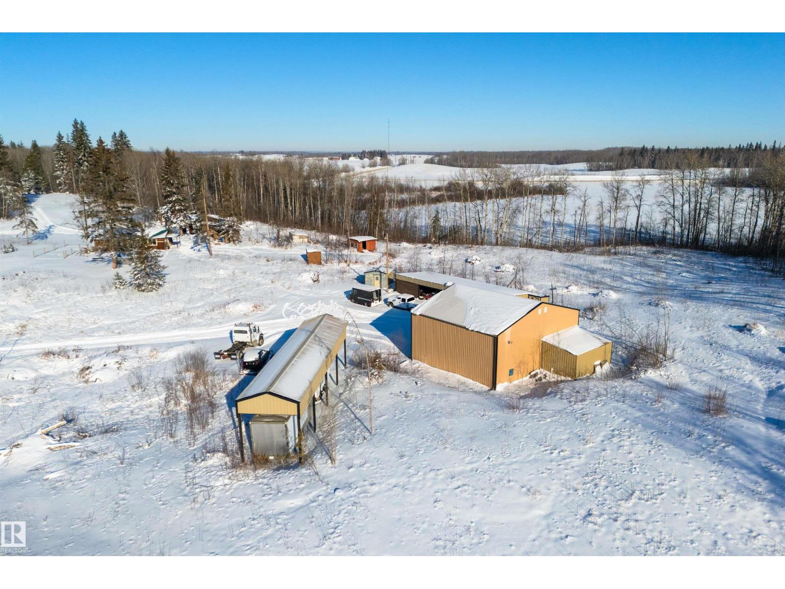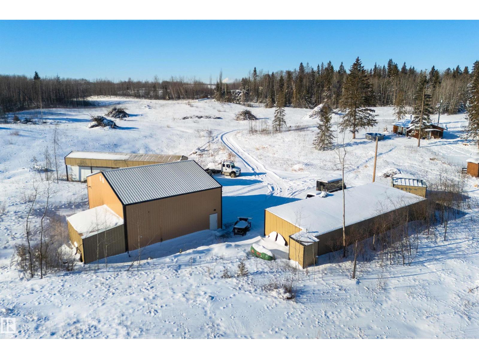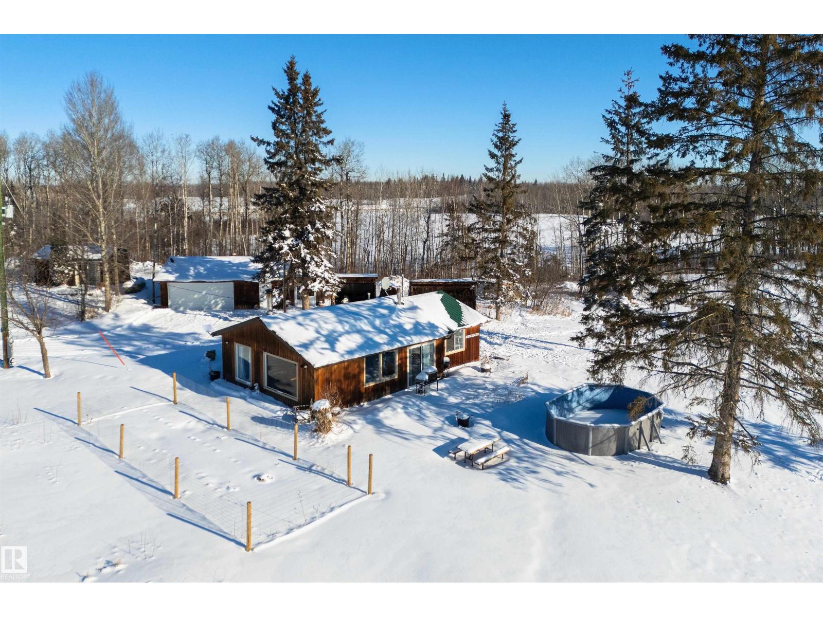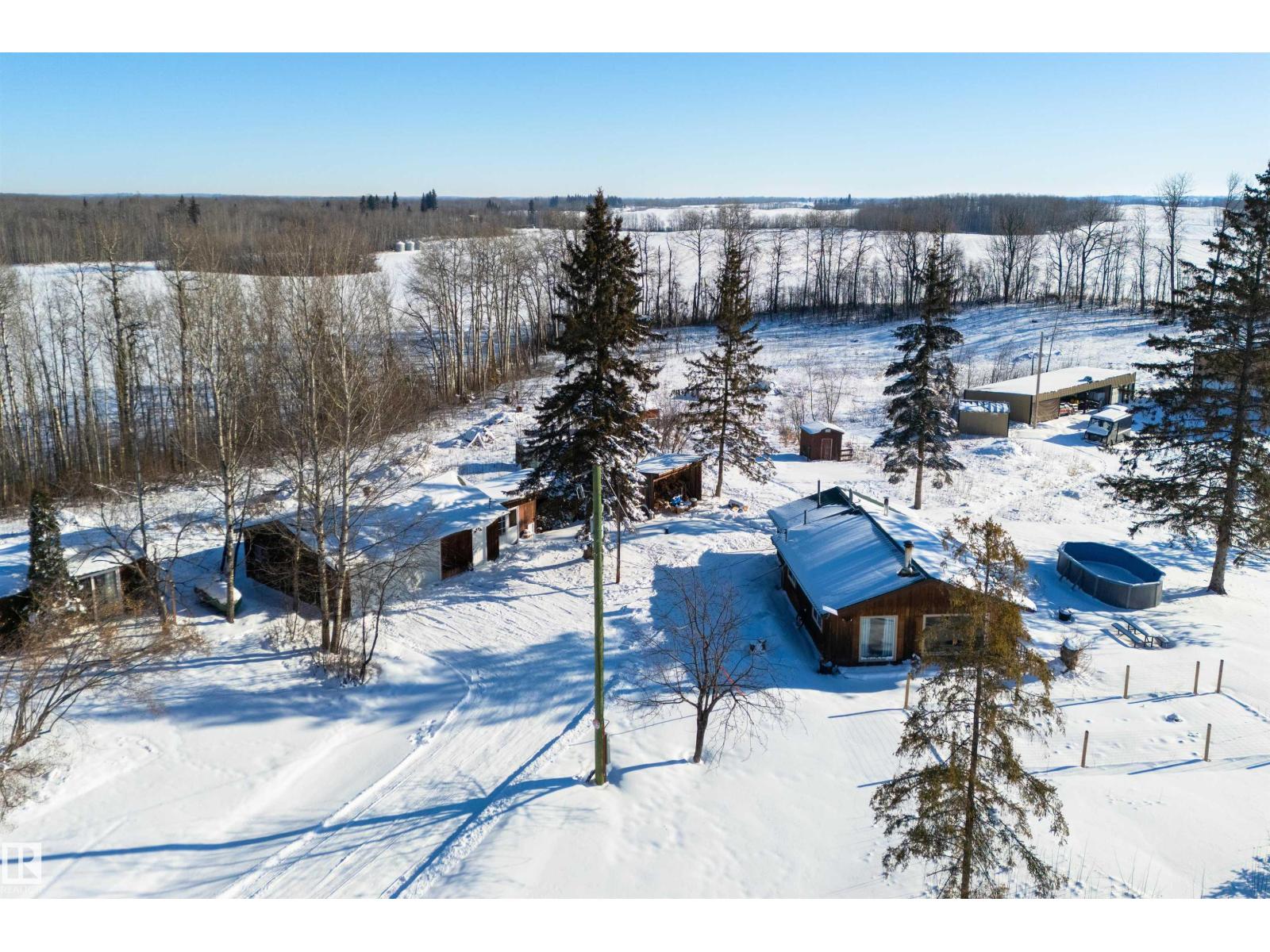 See the vision… build the dream… keep the infrastructure. This is a rare opportunity for the buyer who needs land and serious outbuildings, and is looking to build their dream home. This 9.71 acre parcel in Parkland County offers gently rolling terrain, has been recently cleared (perimeter trees remain) and is ready for a future custom-build. The existing 900 sqft 1-bedroom bungalow is clean, functional and ideal to live in or rent while you plan next steps, while the exterior outbuildings hold real value: a heated 40’x34’ shop with 220V power, 12’x60’ covered RV parking, 24’x64’ bar/storage building with covered storage area, detached 29’x23’ garage, powered 19’x11’ bunkhouse, chicken coops & sheds. Located out of subdivision and minutes to Jackfish, Mink & Hasse Lakes, this property offers you privacy, flexibility and the space to build out your acreage dream. (id:63190)