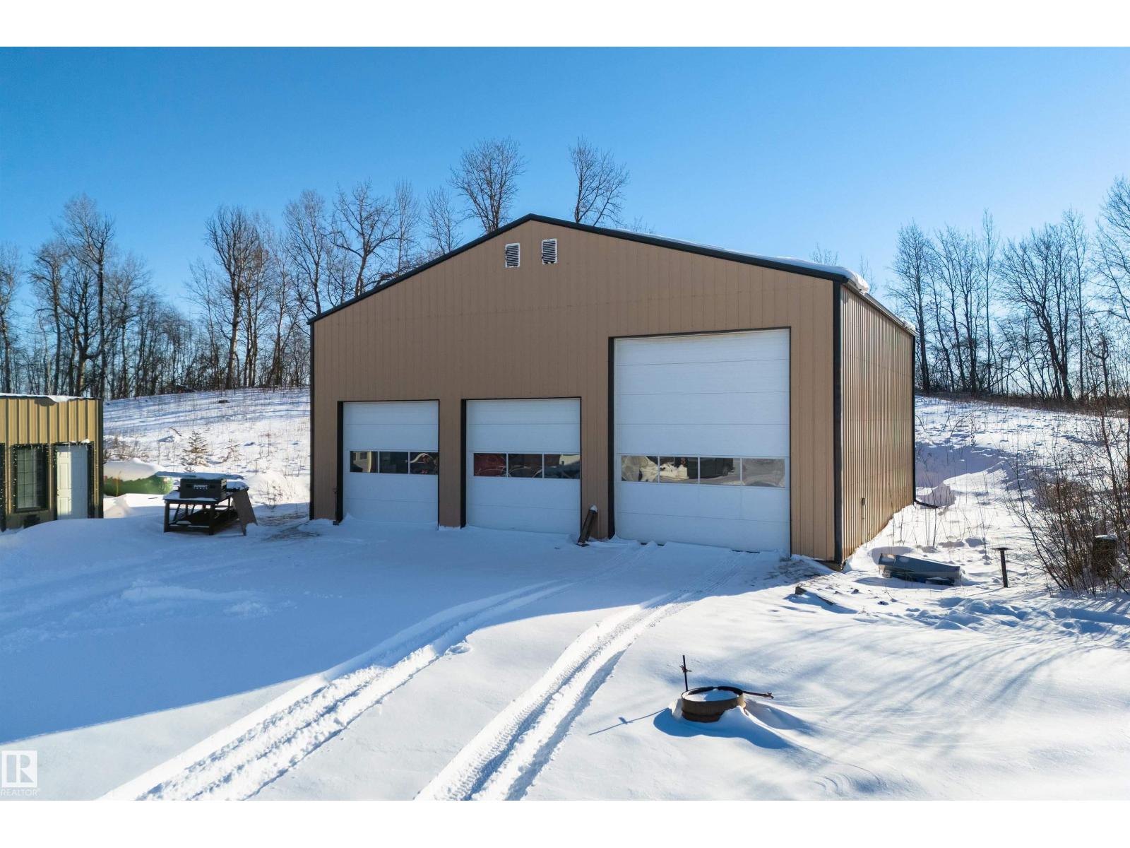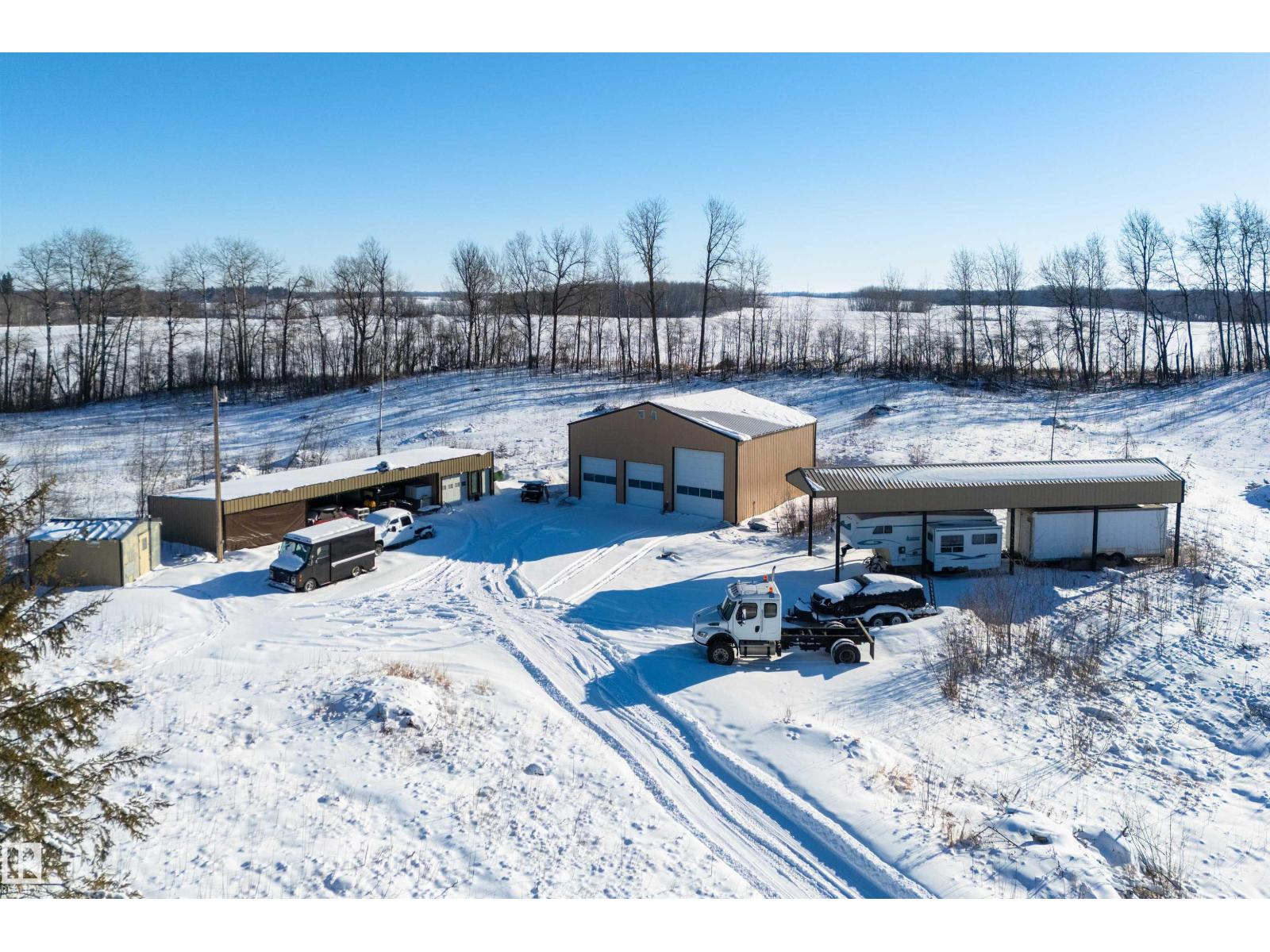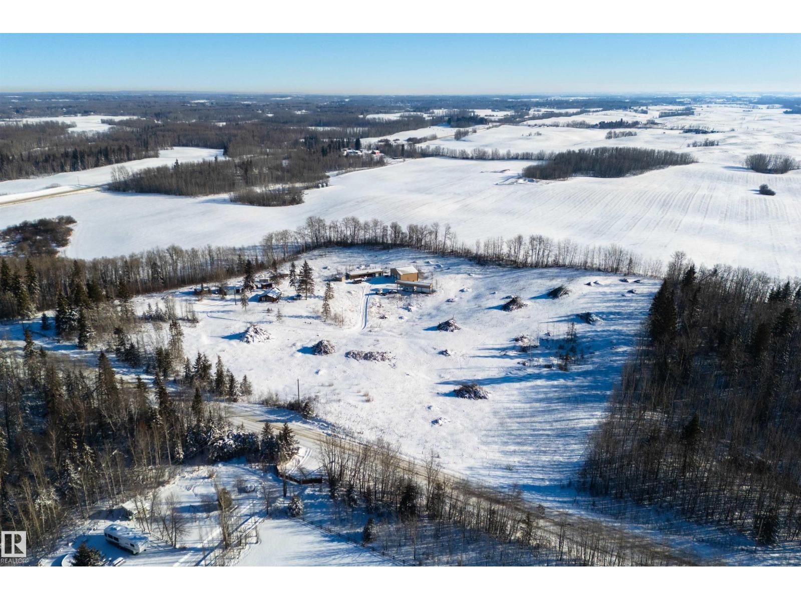 See the vision… build the dream… keep the infrastructure. This is a rare opportunity for the buyer who needs land and serious outbuildings, and is looking to build their dream home. This 9.71 acre parcel in Parkland County offers gently rolling terrain, has been recently cleared (perimeter trees remain) and is ready for a future custom-build. The existing 900 sqft 1-bedroom bungalow is clean, functional and ideal to live in or rent while you plan next steps, while the exterior outbuildings hold real value: a heated 40’x34’ shop with 220V power, 12’x60’ covered RV parking, 24’x64’ bar/storage building with covered storage area, detached 29’x23’ garage, powered 19’x11’ bunkhouse, chicken coops & sheds. Located out of subdivision and minutes to Jackfish, Mink & Hasse Lakes, this property offers you privacy, flexibility and the space to build out your acreage dream. (id:63190)