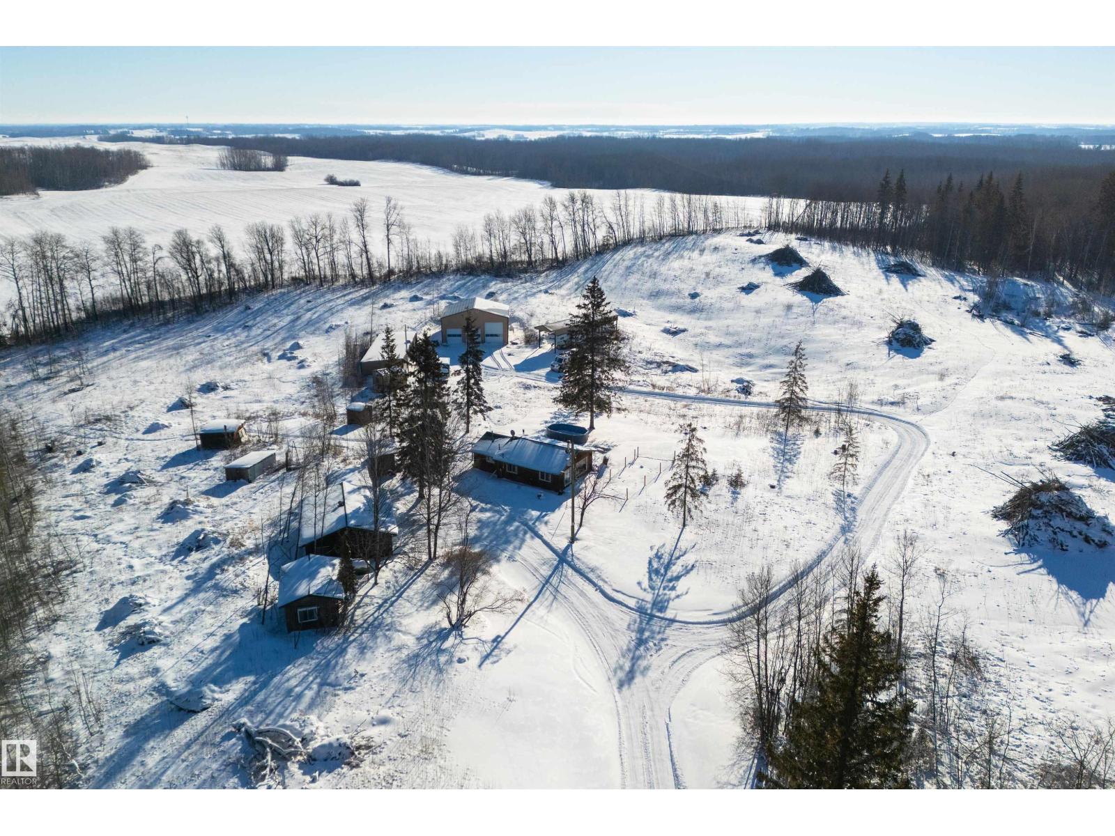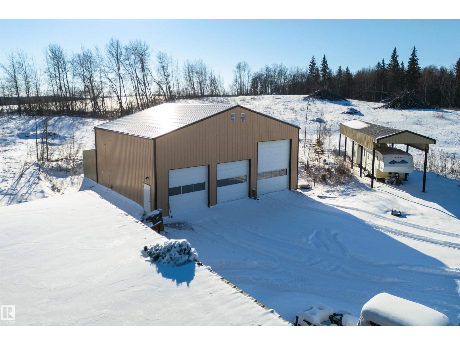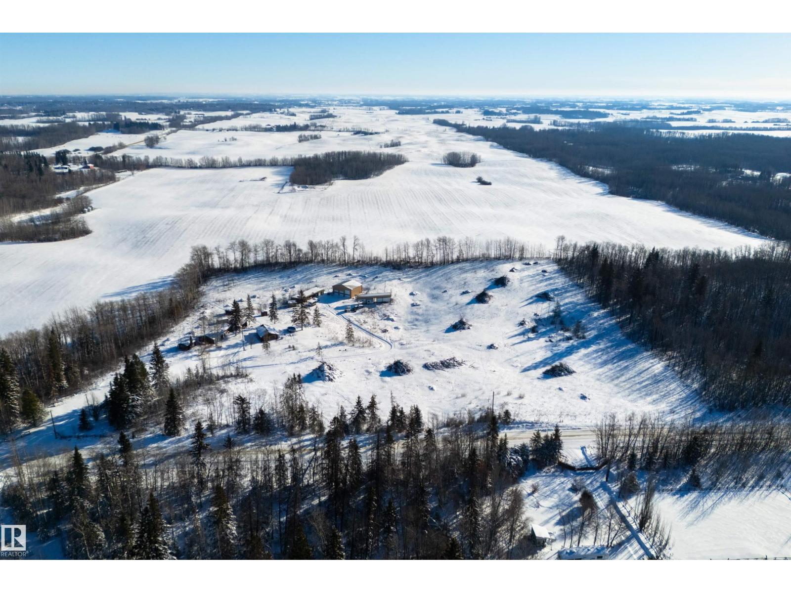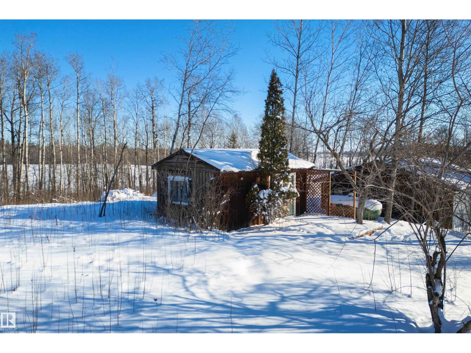 See the vision… build the dream… keep the infrastructure. This is a rare opportunity for the buyer who needs land and serious outbuildings, and is looking to build their dream home. This 9.71 acre parcel in Parkland County offers gently rolling terrain, has been recently cleared (perimeter trees remain) and is ready for a future custom-build. The existing 900 sqft 1-bedroom bungalow is clean, functional and ideal to live in or rent while you plan next steps, while the exterior outbuildings hold real value: a heated 40’x34’ shop with 220V power, 12’x60’ covered RV parking, 24’x64’ bar/storage building with covered storage area, detached 29’x23’ garage, powered 19’x11’ bunkhouse, chicken coops & sheds. Located out of subdivision and minutes to Jackfish, Mink & Hasse Lakes, this property offers you privacy, flexibility and the space to build out your acreage dream. (id:63190)
