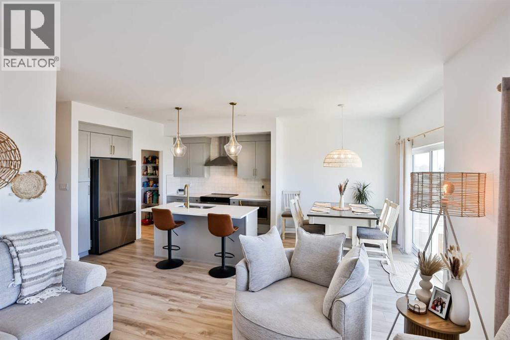 Better than brand new! Have you been looking for a new home, but the thought of putting the finishing touches on it is too daunting?! This is the one for you! Air conditioning? Check. Front and rear landscaping? Check. Fully fenced? Check. Window coverings? Check. Washer and dryer? Check. Framing the basement? Check. Not only did this wonderful seller finish off all these things for you, they also upgraded a few things to elevate this home. Sleek glass railing, not one but TWO fireplaces, finishing the stairwell to the basement, permanent Christmas lights, extra built in shelves in the pantry, and the best looking garage you’ve seen in awhile… it’s fully finished complete with paint, upgraded flooring, and incredible built in shelves you need in your life. This two storey home is wonderfully designed. Through the front door you enter in to a large sunken foyer, then up a couple steps in to your bright, open main floor. The kitchen boasts quartz countertops, stainless steel appliances, an island with good working space, and a walkthrough pantry with extra shelves. You’ll love the fireplace in the living room with modern detail, making this space feel extra cozy! The glass railing flows nicely from the main to second floor and really does provide the wow factor and makes things feel higher end. The bonus room greets you at the top of the stairs, with another electric fireplace to make game nights and spending time together as a family even more cozy. Two bedrooms, laundry, and a full four piece bathroom are on the second floor as well as your primary bedroom. The primary features an incredible vaulted ceiling which totally transforms this space, and gives you your own oasis. Huge windows flood the entire space with glorious natural light. A nice size walk in closet and ensuite with walk in shower complete the space. We really need to talk about the garage… it’s extremely tall, and the built in bin storage system is incredible. It’s finished to paint stage, has upgrade d flooring, and is roughed in for a heater if ever you want one. Outside is fully finished with front and rear landscaping, and is fully fenced as well. Just bring the dog and they’ll have all the room to roam! Located just a quick couple minutes walk to the phenomenal Legacy Park, you will absolutely love this neighborhood. This park is over 70 acres and features an epic playground, several paved walking paths, a spray park, sports courts, skate board park, picnic shelters, a sledding hill, a pond and wetlands, and a community pavilion. Your kids will practically live at this park year round! This home is also located close to schools, groceries, pharmacies, restaurants, and more. Give your REALTOR® a call and come see this practically brand new home with flooded with upgrades. (id:63190)