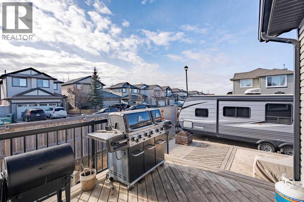 YOUR CHANCE TO ACCESS AIRDRIE DETACHED CORNER LOT FOR UNDER $600,000! | Set on a prominent corner lot in the established community of Prairie Springs, this fully developed two-storey offers the space, layout, and versatility for growing families! With ~2,400 sqft of total living space designed to function as beautifully as it feels, featuring 4 total bedrooms, 3.5 bathrooms and a fully developed basement.The double front attached garage, double-car driveway, and additional RV parking pad in the backyard create rare flexibility for multi-vehicle households, recreational storage, or future utility needs. Corner lots also mean more breathing room, additional street parking, and enhanced curb appeal.Inside, the main floor unfolds in a warm and welcoming open-concept design. Rich hardwood flooring leads into a kitchen that is both practical and polished, featuring granite countertops, ample prep space, and seamless flow into the dining area and quick access onto the back deck. The spacious living room is anchored by a cozy fireplace – an inviting focal point for quiet evenings or lively gatherings. Whether hosting gatherings or managing weekday routines, the layout supports real life family needs.Large windows invite natural light throughout, while the connection to the backyard deck extends your living space outdoors. The deck is ideal for summer entertaining, morning coffee rituals, or simply unwinding after a long day. Garden beds provide an opportunity to cultivate vegetables, herbs, or seasonal colour – adding personality and purpose to the yard. That's not all – right behind the yard is a community walking path leading to a playground, perfect for walking the dog and for kids to explore!Upstairs, three bedrooms create a comfortable retreat for the family. The primary suite offers privacy and convenience with its own ensuite, while the additional bedrooms are thoughtfully sized for children, guests, or home office flexibility. Carpet upstairs adds comfort un derfoot, balanced by durable ceramic tile in high-traffic areas.The fully developed basement meaningfully expands the home’s functionality. A fourth bedroom, full bathroom, and generous recreation room / movie room creates endless options – whether as a teenager’s retreat, guest quarters, home gym, media lounge, or play space. This lower level ensures the home adapts as your family’s needs evolve.What sets this property apart is its balance: open yet defined spaces, indoor-outdoor flow, storage and parking flexibility, and a location within the established south-Airdrie neighbourhood Prairie Springs that remains popular for its family-oriented atmosphere and accessibility. Quick access onto Highway 2 provides commute to Calgary within minutes. Book your showing today, and see all this home has to offer! Rare corner lot with RV parking! (id:63190)
