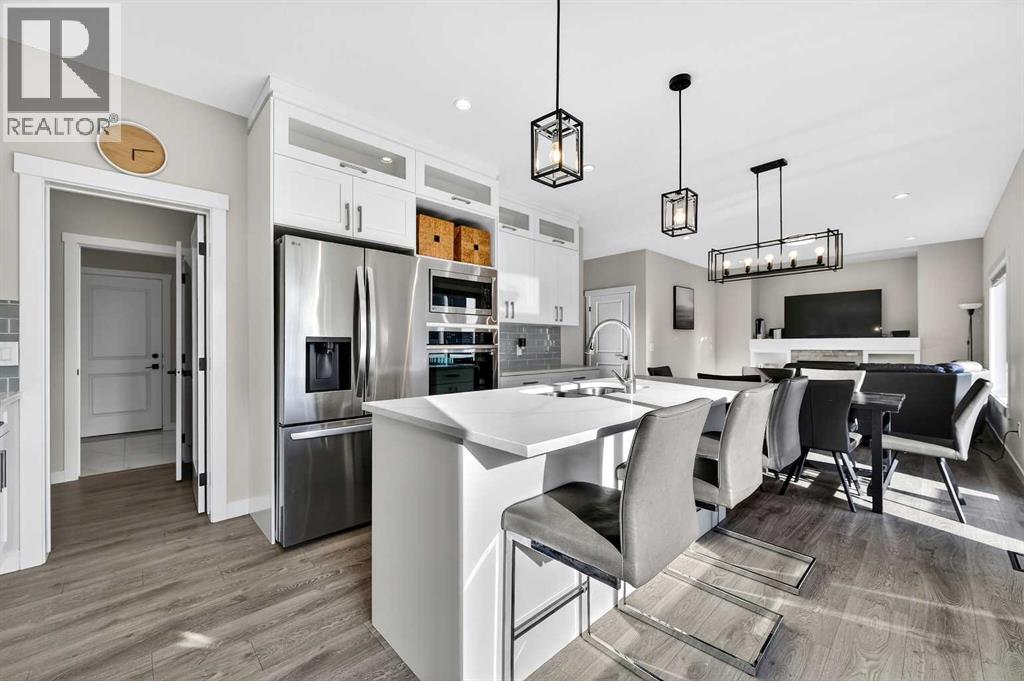 Welcome to this stunning family home, built in 2022 and perfectly situated on a quiet cul-de-sac just steps from a small playground. From the moment you enter, the bright and spacious foyer sparkles — a warm and elegant welcome for you and your guests. The central flex room is ideal as a home office, kids’ playroom, or creative space to suit your family’s lifestyle. The open-concept main floor is designed for connection and comfort, featuring a cozy fireplace, large windows, and patio doors leading to a spacious backyard deck — perfect for summer barbecues and evening relaxation. The kitchen will delight any home chef with its abundance of cabinetry and counter space, complemented by a convenient walk-thru pantry connecting to the garage entry — making grocery drop-offs effortless. A stylish powder room completes the main level. Upstairs, retreat to the luxurious primary suite offering a spa-inspired ensuite with dual sinks, a jetted tub, and a separate tiled shower, plus a generous walk-in closet with custom organizers. Two additional bedrooms, a full bath, a laundry room, and a bright, airy bonus room provide the ideal setup for a growing family. The unfinished basement offers endless potential — whether you design your dream rec space or enjoy it as a wide-open play area. A separate side entrance leads to a fenced dog run for your furry family members. Sellers preparing to install final stretch of fence when weather allows. With quick access to town amenities, scenic walking paths, and easy routes for commuters, you’ll love the blend of small-town charm and modern convenience this home offers. Call your favourite Local Real Estate Agent today to make your small-town dreams come true! (id:63190)
