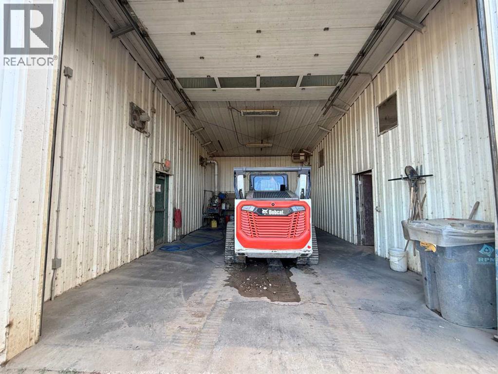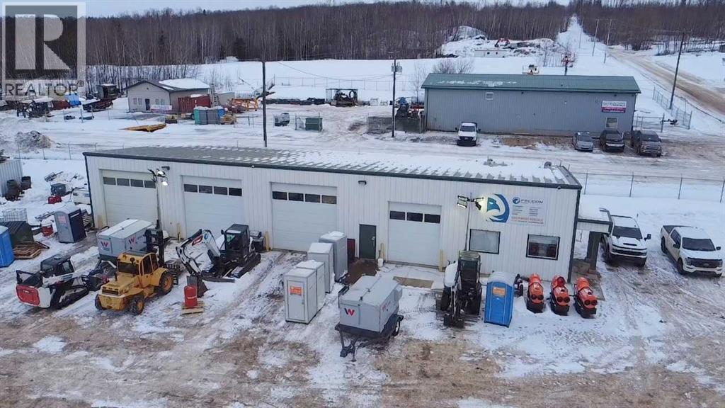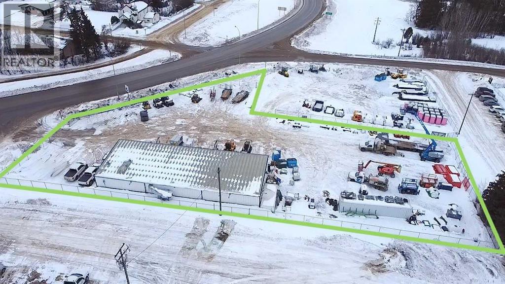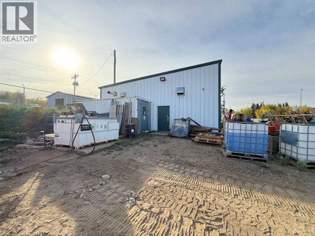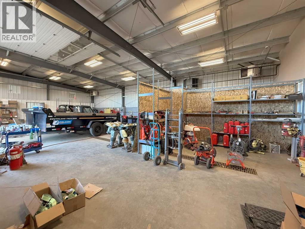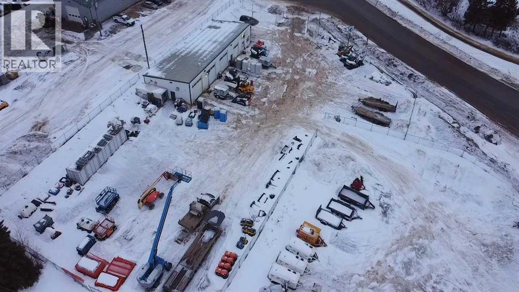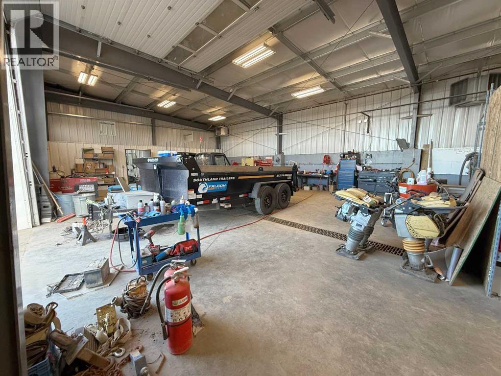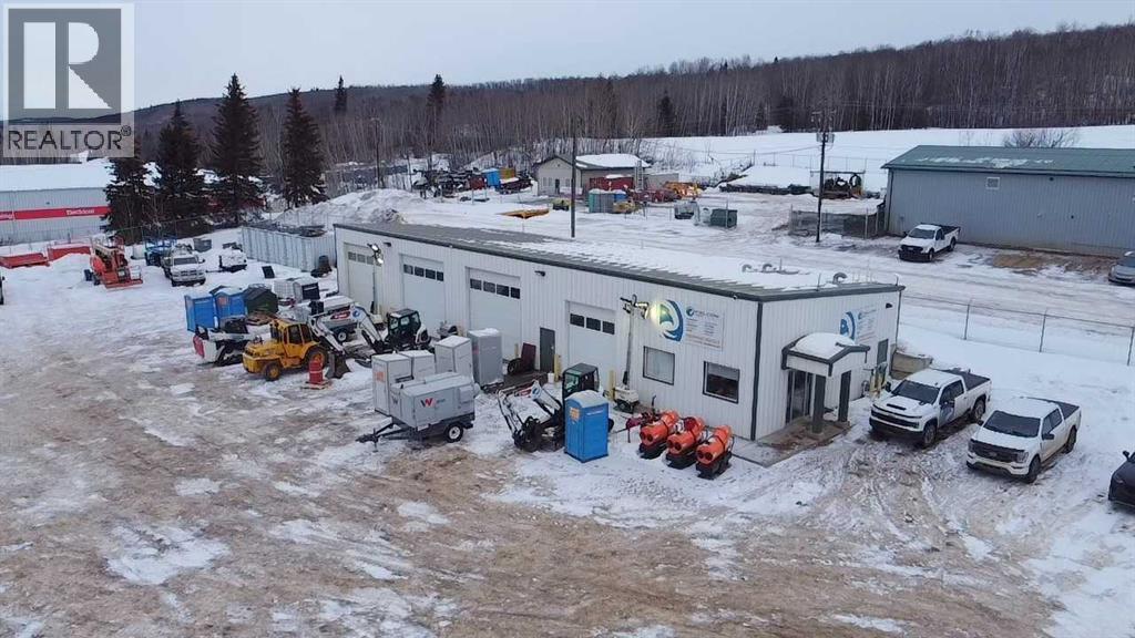 Prime location with maximum exposure on two intersecting highway routes through town. Just over 3400 sq ft, metal frame and siding with mono slope metal roof, built in 2012. 650 sq ft of office/storage space, 60 ft x 33.5 ft shop space, and 18.9 ft x 33.5 ft wash bay. Three 14 ft high x 14.5 ft wide doors, plus one 12 ft high x 10.5 ft wide. Excellent long term tenant in place. Zoned industrial, yard is completely fenced for secure outdoor storage. If more land is required, the adjoining vacant lot is also available for sale. (id:63190)