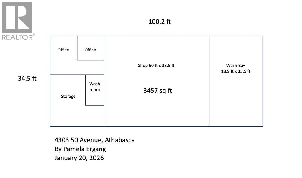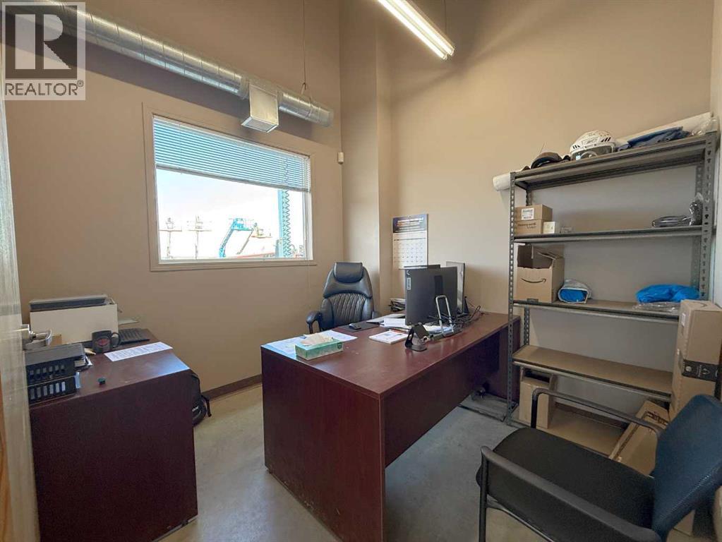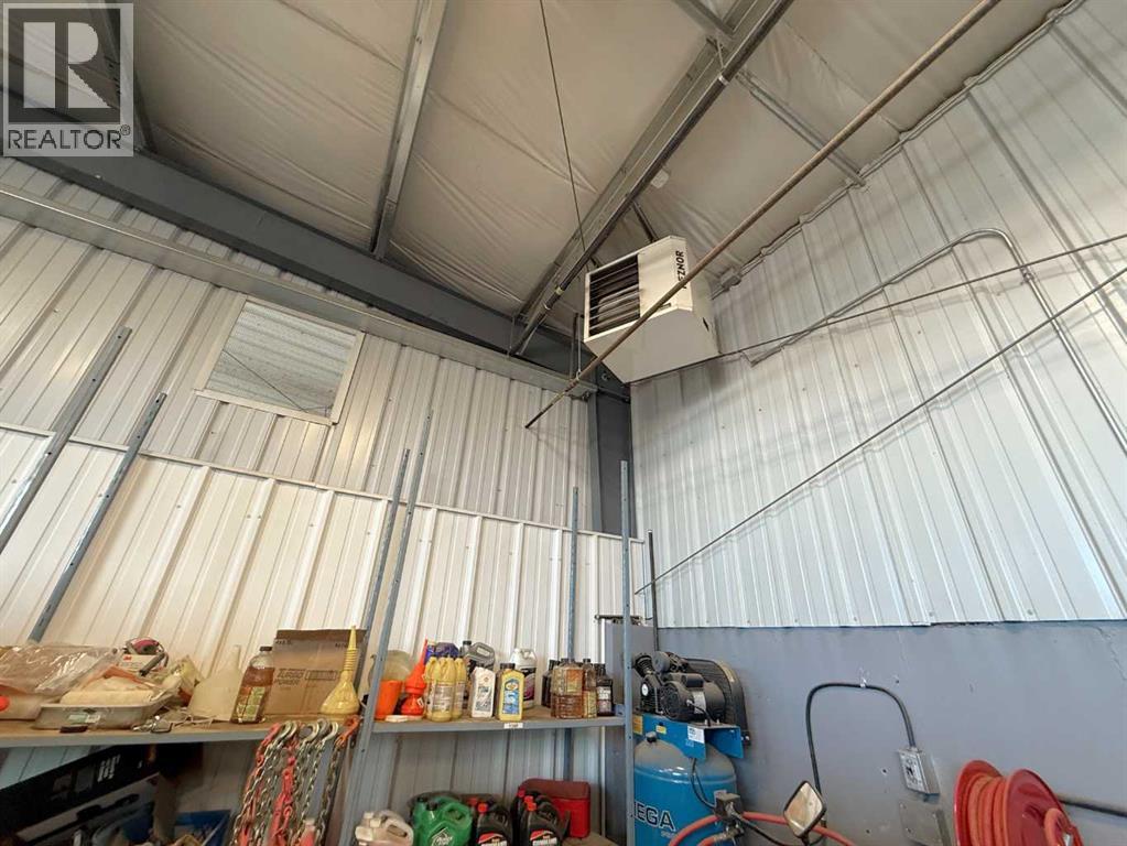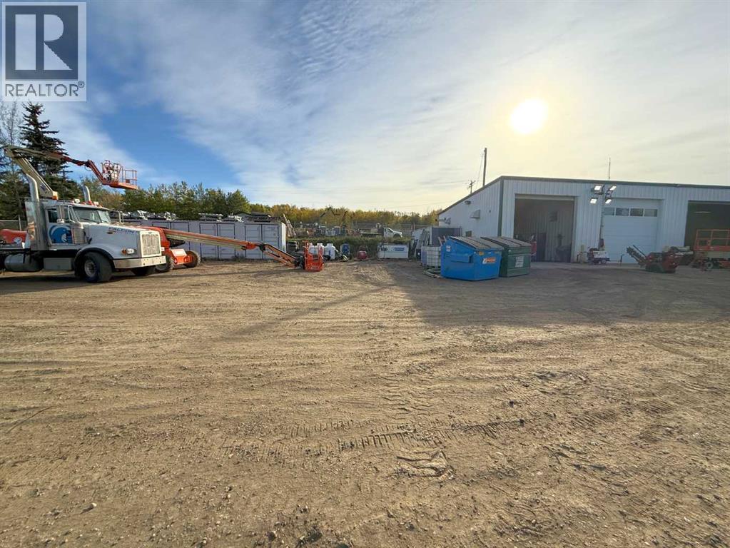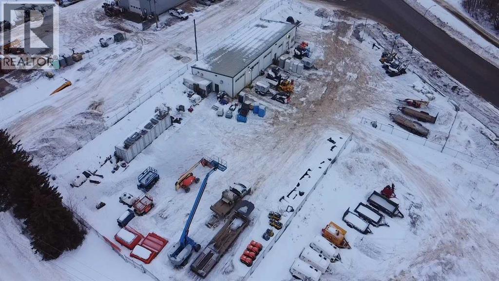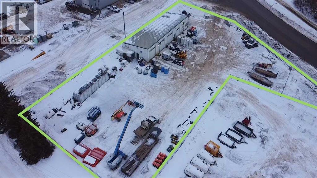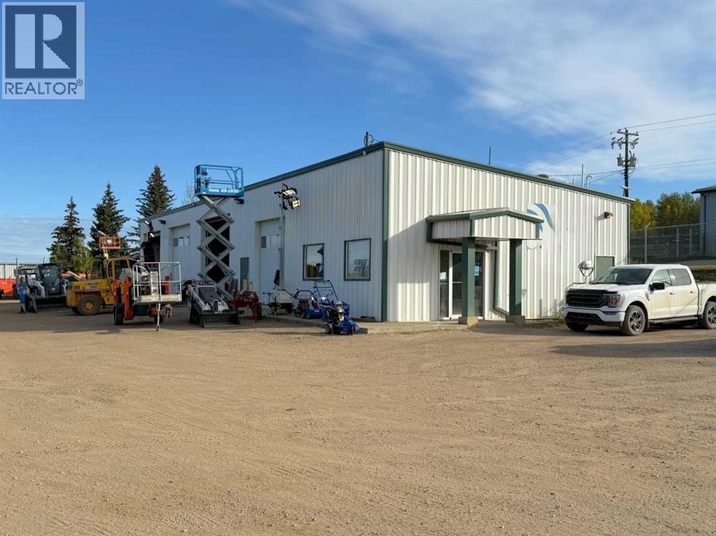 Prime location with maximum exposure on two intersecting highway routes through town. Just over 3400 sq ft, metal frame and siding with mono slope metal roof, built in 2012. 650 sq ft of office/storage space, 60 ft x 33.5 ft shop space, and 18.9 ft x 33.5 ft wash bay. Three 14 ft high x 14.5 ft wide doors, plus one 12 ft high x 10.5 ft wide. Excellent long term tenant in place. Zoned industrial, yard is completely fenced for secure outdoor storage. If more land is required, the adjoining vacant lot is also available for sale. (id:63190)