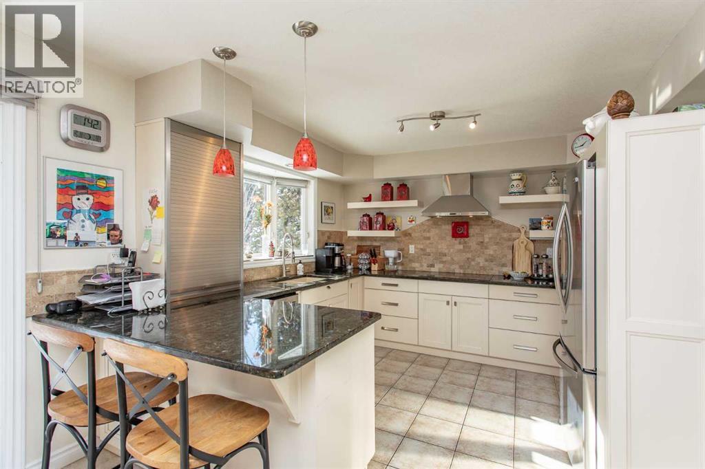 Beautiful two story home loaded with recent upgrades that will be sure to impress. Surrounded by mature trees and within walking distance to large park area, this incredible Morrisroe location will be a must see on your list. A sizable front conversation room is perfect for uninterrupted reading of your favorite novel or catching up socializing with your good friend. A chefs dream kitchen is offered which boasts all new antique white cabinets, granite counter tops, under mount sink, new fixtures and decorative tile back splash. Full range of updated stainless steel appliances which includes a built-in oven & microwave, electric cook top with commercial style hood range plus double door refrigerator. Large eating area which overlooks the spacious family room with large windows and full floor to ceiling tiled wood fireplace. Formal dining area is ideal for extra guests during the holidays. Upstairs is perfect for the families as it offers three bedrooms on the upper level. Updated Primary bedroom includes a sliding barn door into the deep walk in closet plus a remodeled en suite which includes a nice size walk in shower, beautiful tile surround, new vanity with glass basin and all new fixtures. Main bath has been completely renovated as well with all new tile, fixtures, tub surround and above basin sink. Downstairs you will find a large media room great for streaming movies or watching the game. An office/studio space is ideal for a home based business or remote worker. Three piece bath offers an additional shower to the home plus a generous laundry room with wash basin. An extra large utility space has plenty of room for additional storage plus work bench area for home hobbyist. Nearly all the windows in the home have been replaced, plus hot water tank & softener have been updated. The fully fenced and landscaped yard is complimented with the large wood deck, numerous shrubs & trees, garden shed plus there is even RV parking with gated access. Double garage has radia nt heater making it an added bonus for vehicle storage. Family oriented location makes this home perfect with schools, shopping amenities plus recreation all close by. (id:63190)