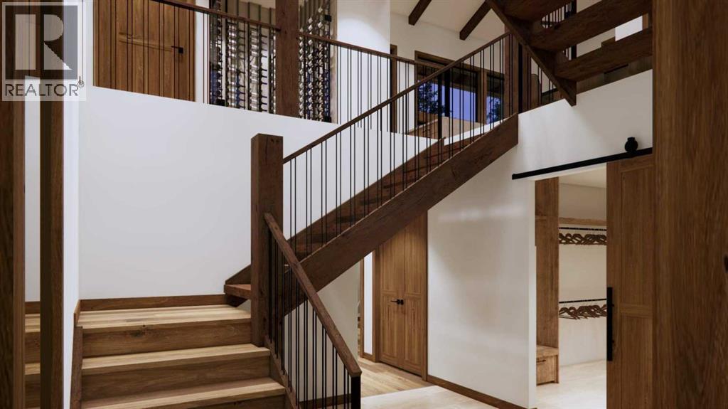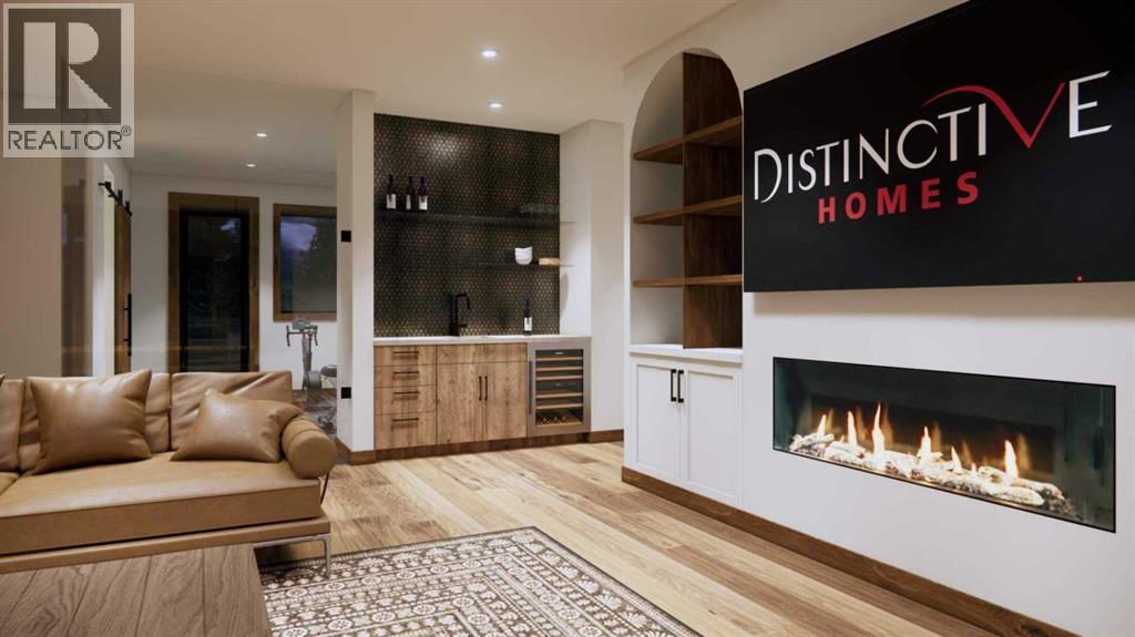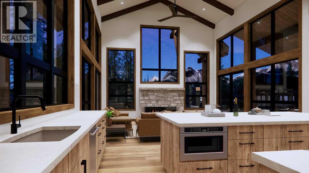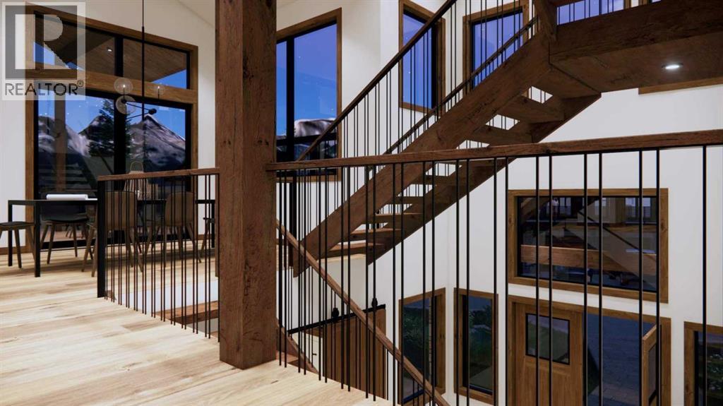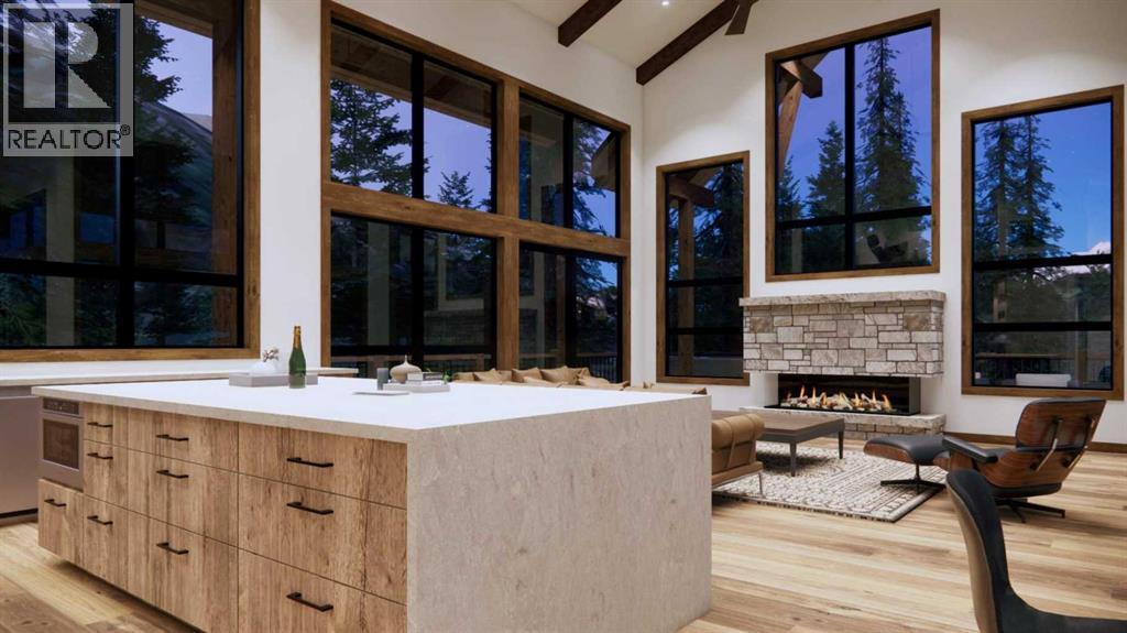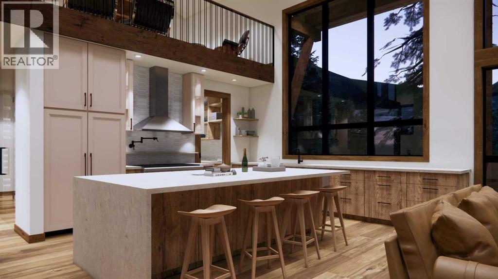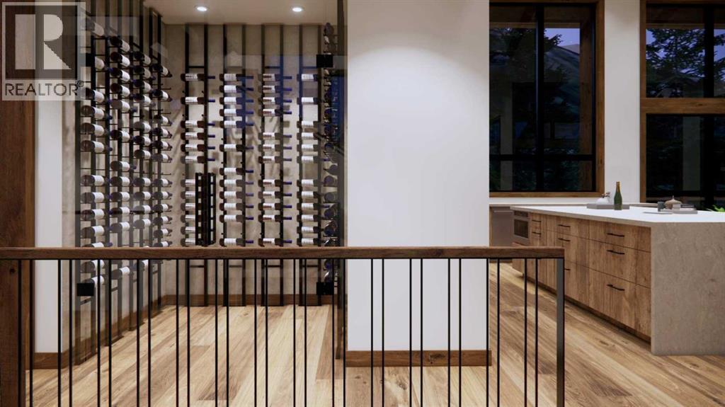 Step into luxurious living with this exceptional estate home, perfectly positioned on the renowned Silvertip Golf Course. Spanning nearly 4400sf, this exquisite residence features 5 spacious bedrooms and countless premium amenities designed to elevate your lifestyle. The home welcomes you with a grand foyer that seamlessly flows into the mudroom where you'll find built-ins, bench seating, and custom cabinetry while the triple car garage offers plenty of space for vehicles and gear. On this first floor, you’ll find a well-appointed home gym with glass enclosure and two of the five bedrooms offering comfort and versatility. The large rec room, complete with a wet bar and second gas fireplace is perfect for entertaining or unwinding after a day on the course. An elevator provides convenient access to all three floors, ensuring every level can be easily navigated. The heart of this home is undoubtedly the kitchen. Adorned with massive vaulted ceilings and nearly 360-degree windows capturing stunning views of Canmore’s most famous mountain ranges. Equipped with a built-in fridge, a generous butler’s pantry, large quartz island, 6 burner gas fireplace, and opulent wine cellar. Centered around a show-stopping stone-facing gas fireplace, the living room opens to a generous wrap around deck with unparalleled views and all day sun. Past the dining room and down the hall, you'll find the primary suite including an 11x17 walk-in closet and dreamy ensuite with double vanities and water closet, and a private balcony. Heading upstairs, you're greeted by an open air loft, 2 additional bedrooms and a Jack and Jill bathroom, providing both privacy and comfort for family members or guests. Blending luxury, comfort, and nature in a pristine golf course setting, experience the pinnacle of mountain living in this premier home built by one of Canmore's most notable builders, Distinctive Homes. *all interior selections can be chosen and customized by the buyers* (id:63190)