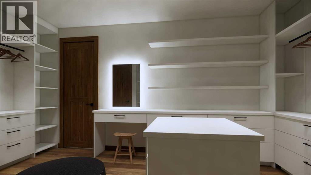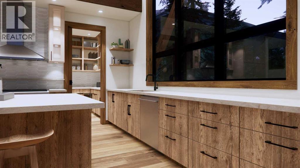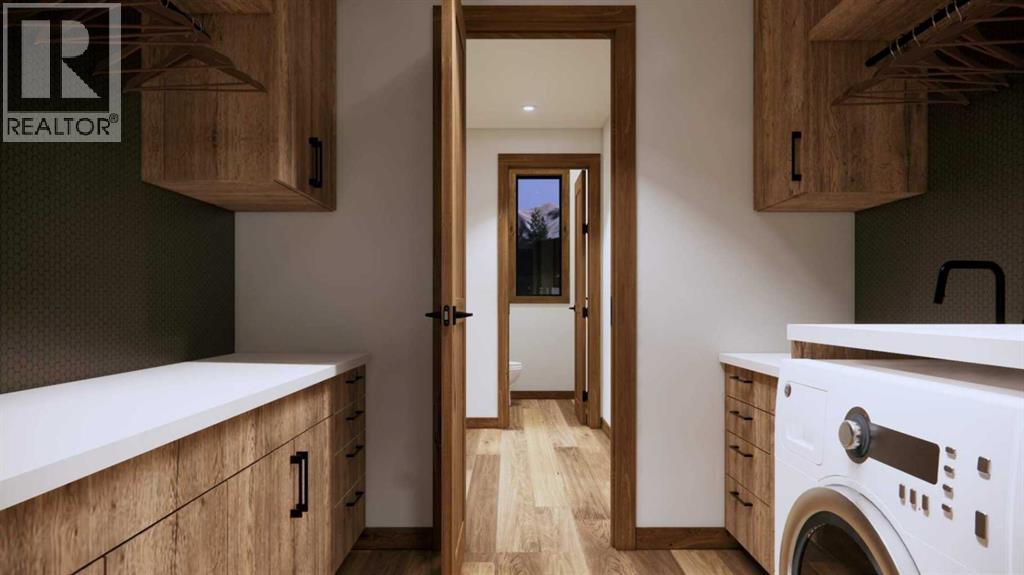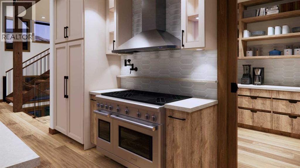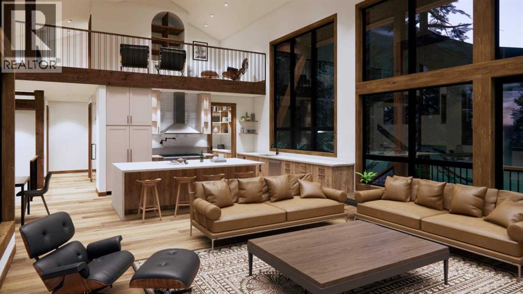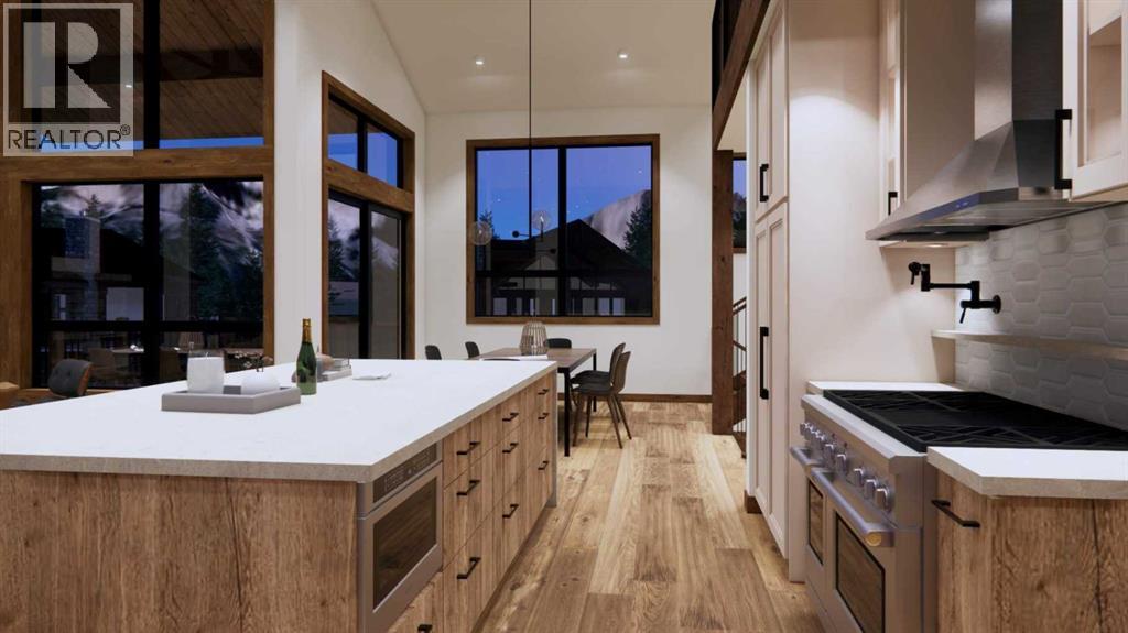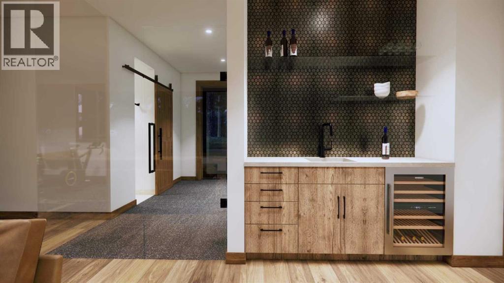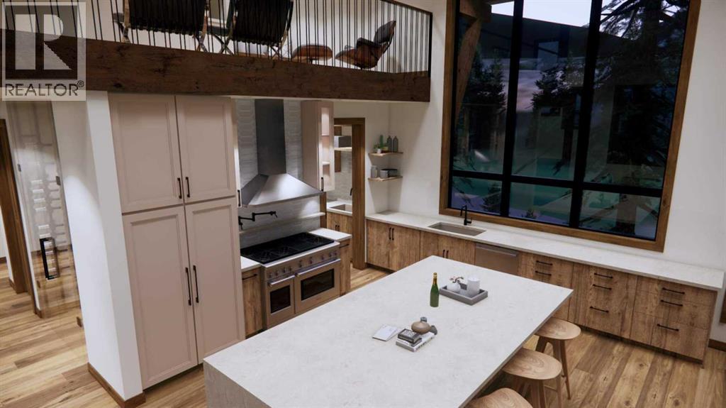 Step into luxurious living with this exceptional estate home, perfectly positioned on the renowned Silvertip Golf Course. Spanning nearly 4400sf, this exquisite residence features 5 spacious bedrooms and countless premium amenities designed to elevate your lifestyle. The home welcomes you with a grand foyer that seamlessly flows into the mudroom where you'll find built-ins, bench seating, and custom cabinetry while the triple car garage offers plenty of space for vehicles and gear. On this first floor, you’ll find a well-appointed home gym with glass enclosure and two of the five bedrooms offering comfort and versatility. The large rec room, complete with a wet bar and second gas fireplace is perfect for entertaining or unwinding after a day on the course. An elevator provides convenient access to all three floors, ensuring every level can be easily navigated. The heart of this home is undoubtedly the kitchen. Adorned with massive vaulted ceilings and nearly 360-degree windows capturing stunning views of Canmore’s most famous mountain ranges. Equipped with a built-in fridge, a generous butler’s pantry, large quartz island, 6 burner gas fireplace, and opulent wine cellar. Centered around a show-stopping stone-facing gas fireplace, the living room opens to a generous wrap around deck with unparalleled views and all day sun. Past the dining room and down the hall, you'll find the primary suite including an 11x17 walk-in closet and dreamy ensuite with double vanities and water closet, and a private balcony. Heading upstairs, you're greeted by an open air loft, 2 additional bedrooms and a Jack and Jill bathroom, providing both privacy and comfort for family members or guests. Blending luxury, comfort, and nature in a pristine golf course setting, experience the pinnacle of mountain living in this premier home built by one of Canmore's most notable builders, Distinctive Homes. *all interior selections can be chosen and customized by the buyers* (id:63190)