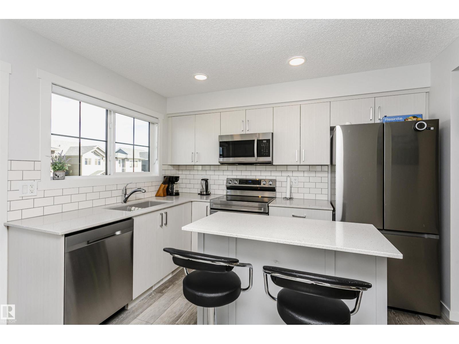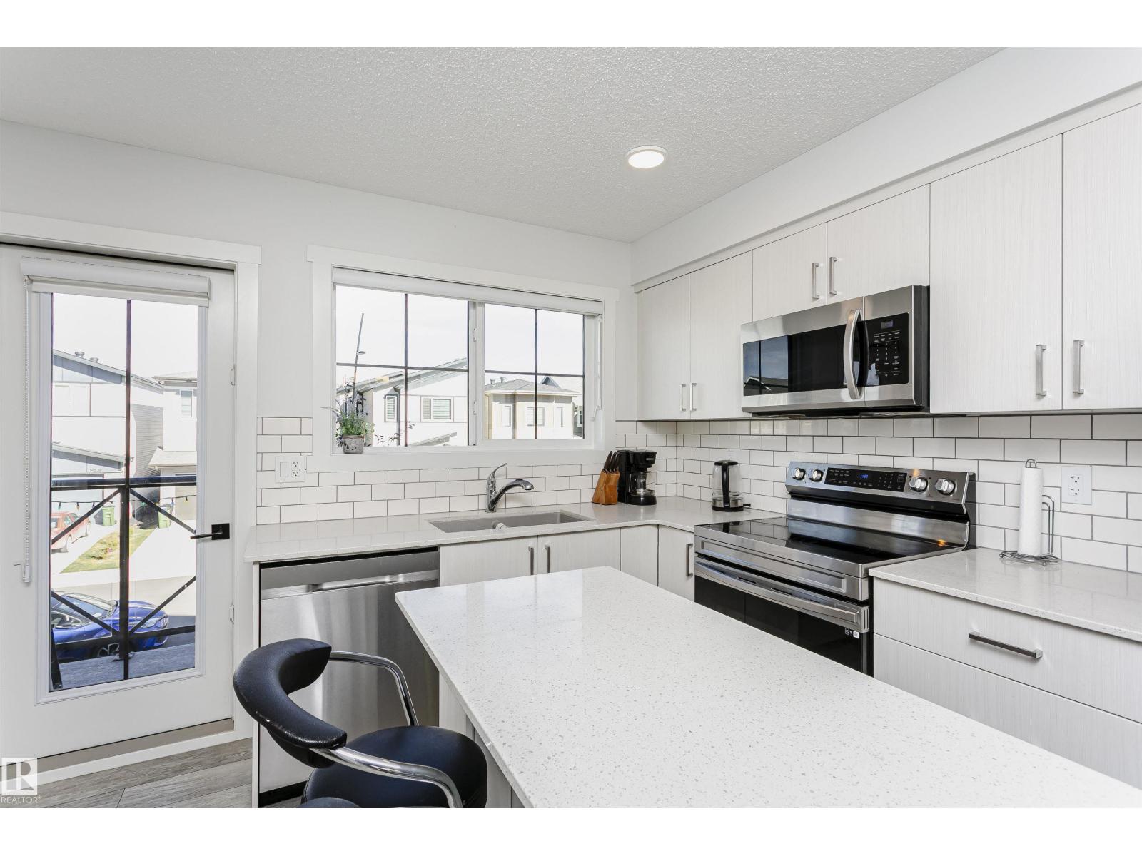 Discover the perfect blend of style, space, and convenience in this stunning END-UNIT townhouse located in a vibrant Southwest Edmonton community. The lower-level DEN offers ideal space for a home office, playroom, or guest area. An OVERSIZED ATTACHED GARAGE provides ample parking and storage, plus a convenient half bath. The open-concept second floor features a modern kitchen with sleek countertops, stainless steel appliances, and generous cabinetry flowing into bright living and dining areas. Upstairs includes TWO FULL BATHROOMS, including a private ENSUITE for the primary bedroom, and a spacious second bedroom. Enjoy NO CONDO FEES, full landscaping, and a CONCRETE PATIO — perfect for first-time buyers, downsizers, or investors. (id:63190)