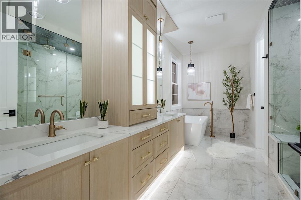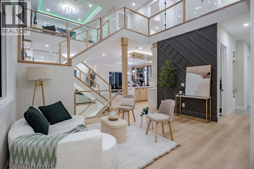 Welcome to this Award Finalist Show Home, recognized by the BILD Calgary Region, built Twenty First Century Homes, located in the growing community of Waterford Estates in Chestermere. Offering approximately 4,500 sq ft of developed living space on a 45’ x 113’ lot, this property provides a spacious and functional layout designed for modern family living.The main floor features 10’ ceilings, an open-to-above living area, family room, dining space, and a full 3-piece bathroom. A versatile flex room can function as a bedroom, office, or additional living area. The kitchen is equipped with upgraded appliances and complemented by a walk-through spice kitchen with direct access to the mudroom and triple attached garage.Upstairs, you will find 4 generously sized bedrooms, each with walk-in closets, including two primary bedrooms with private ensuites. A bonus room with tray ceiling detail and an open-to-below feature enhances natural light and openness. The upper-level laundry room includes cabinetry and a sink for added convenience.The fully developed basement expands the living space and includes 2 additional bedrooms, a bathroom, a games/recreation room, and a wet bar.Located close to schools, parks, shopping, and everyday amenities, this property offers substantial living space in a well-connected Chestermere location. (id:63190)