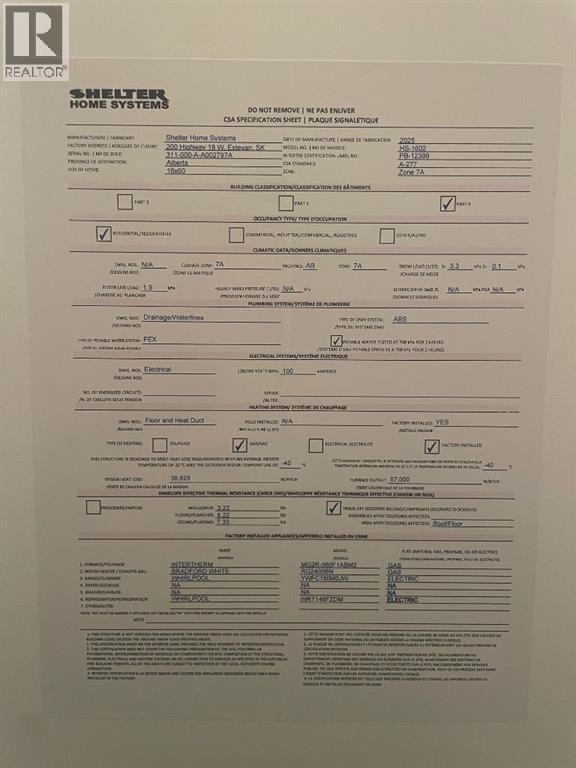 MODERN, EFFICIENT & AFFORDABLE! Brand new, quality built "Shelter" manufactured home will give you peace of mind, easy maintenance & budget conscious payments of $950 monthly OAC. Low maintenance home exterior has vinyl siding, upgraded skirting & vinyl windows. Bright open plan has kitchen, dining & living room centered between the bedrooms at either end of the home. Functional & beautiful kitchen has plenty of cabinets & appliances under warranty. You'll love the kitchen window with the south view. King sized primary bdrm has extra large walk-in closet. Laundry is quietly tucked away around the corner, out of sight of the main living area. Roomy 4 pc bath has easy care tub / shower combo & good storage. Partially fenced, the landscaping is a blank slate, waiting for your plans. Lot rent of $510 monthly. Bassano has excellent amenities with a friendly, small town feeling. Hospital, k-12 school, shopping, golf course, arena & more! You won't find a new home like this at a better price! Take the virtual tour & expect to be impressed. Park manager approval applies. Taxes are not yet assessed. QUICK POSSESSION POSSIBLE. (id:63190)