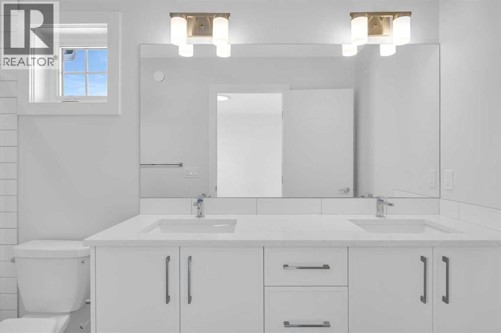 Welcome to The Edward by Partners, a brand new quick possession home in Logan Landing offering a rare fully developed two bedroom, two bathroom legal basement suite with a private side entrance. Positioned on a premium corner lot and complete with a 20’ x 21’ double detached garage, this home delivers exceptional flexibility for homeowners and investors alike. A rare main floor bedroom and full bathroom add immediate versatility, ideal for guests, a private office, or added living flexibility. Nine foot ceilings on both the main level and basement enhance the sense of space throughout. The kitchen is thoughtfully designed with full height cabinetry, upgraded quartz countertops with undermount sinks, under cabinet lighting, a chimney hood fan with built in microwave, and a Whirlpool stainless steel appliance package. The open concept layout connects seamlessly to the dining and living areas, creating a bright and functional environment for everyday living. Upstairs, the primary suite offers a walk in closet and a well designed ensuite with additional vanity storage, quartz surfaces, and a walk in shower. Two additional bedrooms, a central bonus room, and upper level laundry with washer and dryer included complete a layout that adapts easily to changing needs. The legal basement suite truly sets this home apart. Featuring 775 square feet of developed living space with two bedrooms, two full bathrooms, nine foot ceilings, walk in showers, and its own kitchen and living space, it functions as a fully independent residence. Whether used for consistent rental income, extended family, or mortgage support, this is a rare and highly desirable configuration. The double detached garage includes a 60 AMP subpanel and 50 AMP EV rough in, offering future ready convenience for electric vehicle charging and additional power capacity. Additional features include air conditioning rough in, knockdown ceilings, and quality finishes throughout. Located in Logan Landing with access to pa rks, pathways, and the Bow River, this property offers a strong balance of lifestyle, long term value, and income potential. (id:63190)