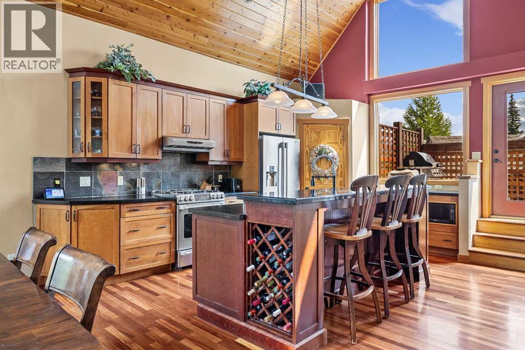 214 Eagle Point is an extraordinary mountain sanctuary perched on the sunny side of Canmore—where timeless alpine charm meets refined modern living.From the moment you step inside, the home welcomes you with a soaring great room anchored by a magnificent stone fireplace, rich exotic hardwood floors, and an abundance of natural light. Expansive windows draw the eye outward to breathtaking, unobstructed views of the Rocky Mountains, creating a seamless connection between the beauty indoors and the spectacular landscape beyond.At the heart of the home lies a gourmet kitchen designed for both culinary creativity and social gatherings, all framed by panoramic mountain scenery.Step outside onto the gated south-facing deck, an exceptional vantage point for soaking up sunshine and admiring the rugged peaks. Whether you're enjoying your morning coffee or hosting friends at sunset, this outdoor living space elevates every moment.The rear yard is a private, tranquil oasis backing onto an environmental reserve—lush, evergreen, and alive with nature. It’s an idyllic setting for quiet relaxation, alfresco dining, or unwinding in the hot tub beneath a sky full of stars.More than a home, 214 Eagle Point offers a lifestyle shaped by comfort, style, and the unparalleled beauty of Canmore’s natural surroundings. From fireside evenings to forest-side mornings, every day here feels like a retreat. (id:63190)