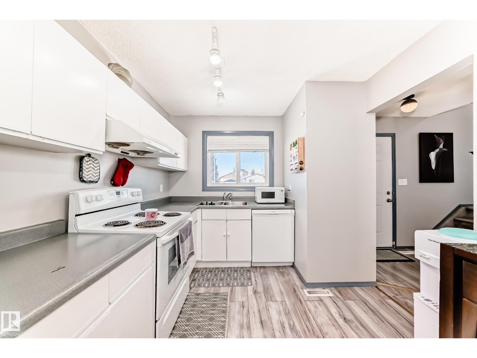 INVESTORS and FIRST TIME BUYERS, this is a great opportunity to build equity! Whether you’re looking for a rental property or a place to call home, this end unit 3 bedroom in Dunluce is worth a look. Located close to schools, parks, playgrounds, transit, shopping, and everyday amenities, the location is super convenient. The main floor features a bright, open layout with large windows, laminate flooring, and fresh paint throughout. The dining area flows into the kitchen with white cabinets and plenty of natural light, plus there’s a handy half bath on the main level. Upstairs you’ll find three comfortable bedrooms with newer laminate flooring and a full bathroom with dual access to the primary bedroom. The home is carpet free, making it easy to maintain.The basement includes the laundry area and offers lots of space for future development. BRAND NEW FURNACE AND AC UNIT Corner lot with green space and tree views out front, plus one energized parking stall. QUICK POSSESSION is available, don’t miss out! (id:63190)