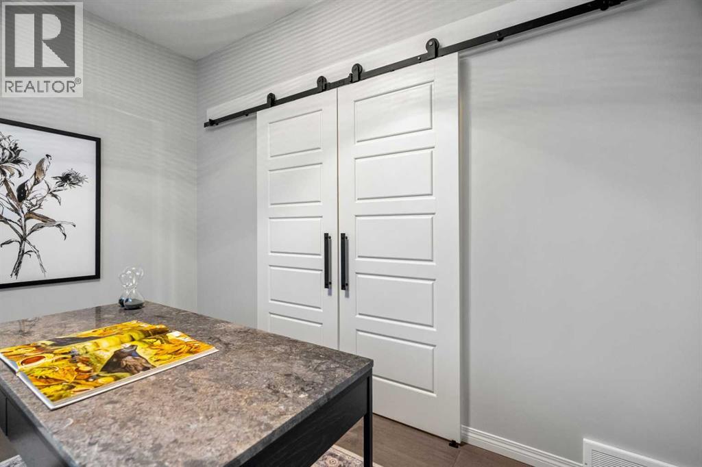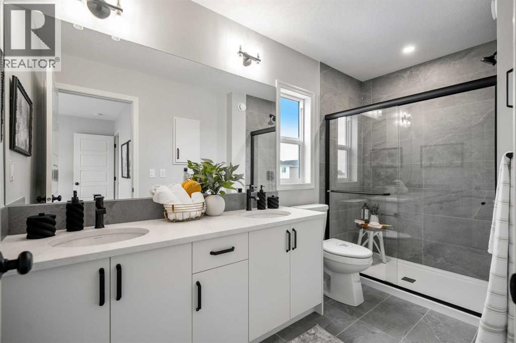 **Open House Saturday from Noon to 5pm** Located in the desirable community of Bridgeport in Chestermere, 541 Bridgeport Street is a beautifully designed two-storey home that blends modern style, functional living, and investment potential. Thoughtfully crafted with elegant finishes and a highly practical layout, this home offers the perfect balance of comfort and sophistication.The main level welcomes you with a dedicated office space featuring stunning barn doors, creating a private and stylish work-from-home environment. A full bathroom on the main floor adds versatility for guests. The heart of the home is the impressive kitchen, complete with a gas stove, sleek hood fan, double-door refrigerator, and a generous central island that provides ample prep space and seating—ideal for both everyday living and entertaining. The open-concept layout flows seamlessly into the living and dining areas, filled with natural light and enhanced by thoughtful design details throughout.At the rear of the property, a detached double garage provides secure parking and additional storage. From the garage, you’re welcomed by a deck that leads into a spacious and functional mudroom, offering an organized and convenient transition into the home.Upstairs, the well-designed upper level features a comfortable family room, perfect for relaxing or creating a secondary entertainment space. Two additional bedrooms share a full bathroom, while the primary retreat offers a private sanctuary complete with a walk-in closet and ensuite bathroom. The conveniently located upper-level laundry in the hallway enhances everyday practicality.The basement remains undeveloped, offering excellent potential for future customization—whether you envision additional living space, a recreation room, home gym, or extra bedrooms.As a professionally decorated showhome, this property is not only beautifully finished but also presents a unique opportunity. Ask about the leaseback program, *LEASE BACK OPPORT UNITY, PURCHASE THIS HOME AND THE BUILDER WILL RENT IT BACK.With its elegant design, thoughtful layout, and flexible investment potential, 541 Bridgeport Street is a standout opportunity in one of Chestermere’s welcoming communities. (id:63190)