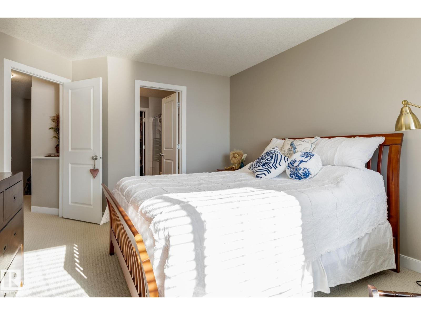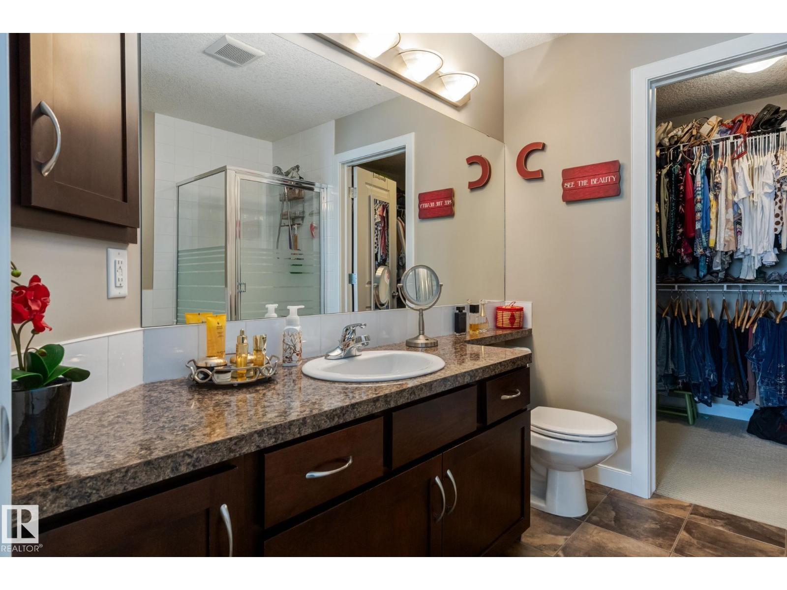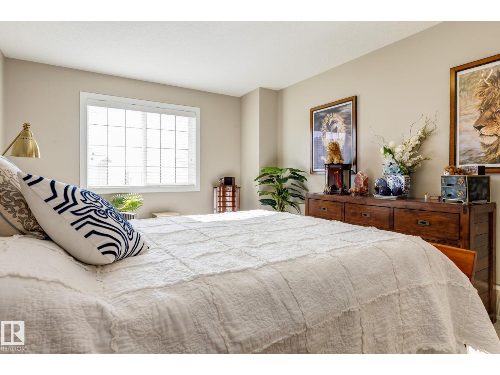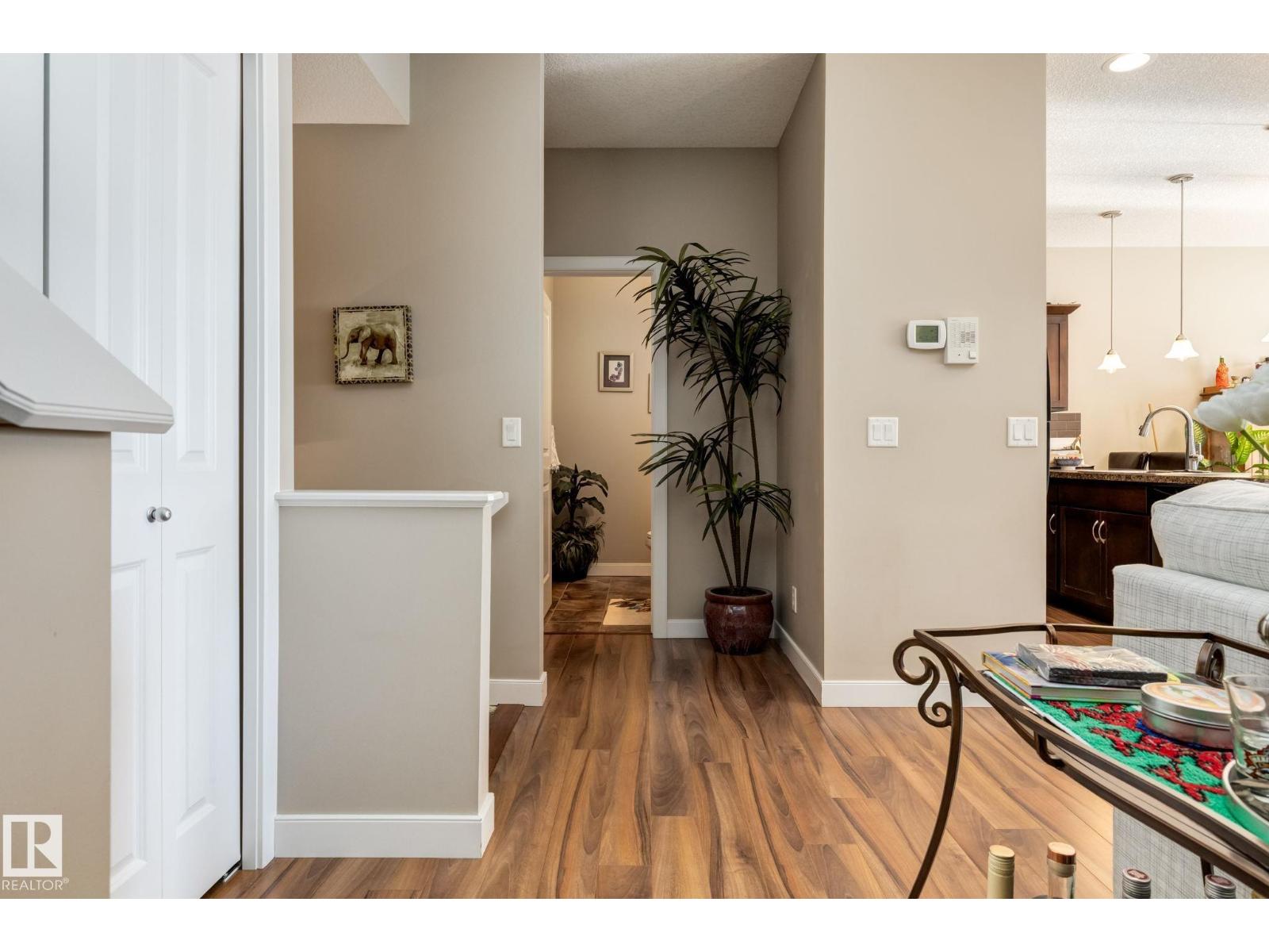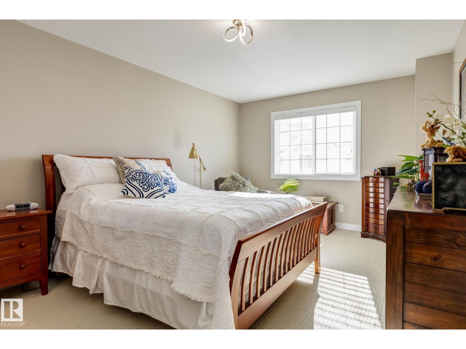 Immaculate and move-in ready, this unit offers outstanding value with all appliances included. Positioned near the front entrance for easy access, it’s also tucked away from building traffic, giving you a quiet, private setting. The home features rich espresso cabinetry, an open-concept kitchen overlooking the family room with a gas fireplace, six appliances, and attractive walnut-style laminate flooring in wide planks. Enjoy 9' ceilings, French doors leading to the deck with a gas BBQ hookup, and the convenience of main-floor laundry and an attached garage. Window coverings are already in place, and the home feels better than new. Both bedrooms are generously sized, and the primary suite includes a spa-inspired ensuite with a soaker tub, separate shower, and a large walk-in closet. With two full baths plus a half bath, this home delivers comfortable executive living at an attainable price. The location provides quick access to Anthony Henday Drive, transit, and nearby essentials. (id:63190)