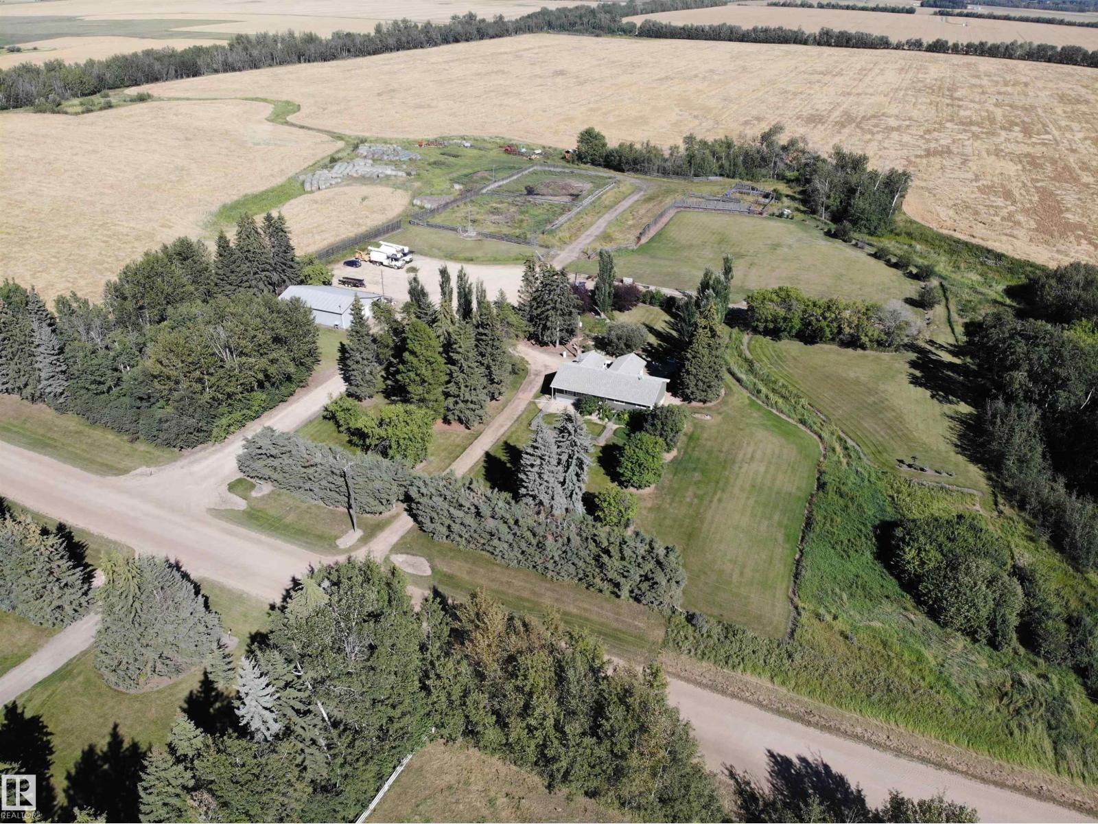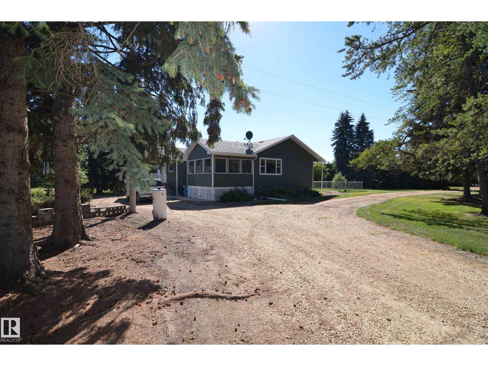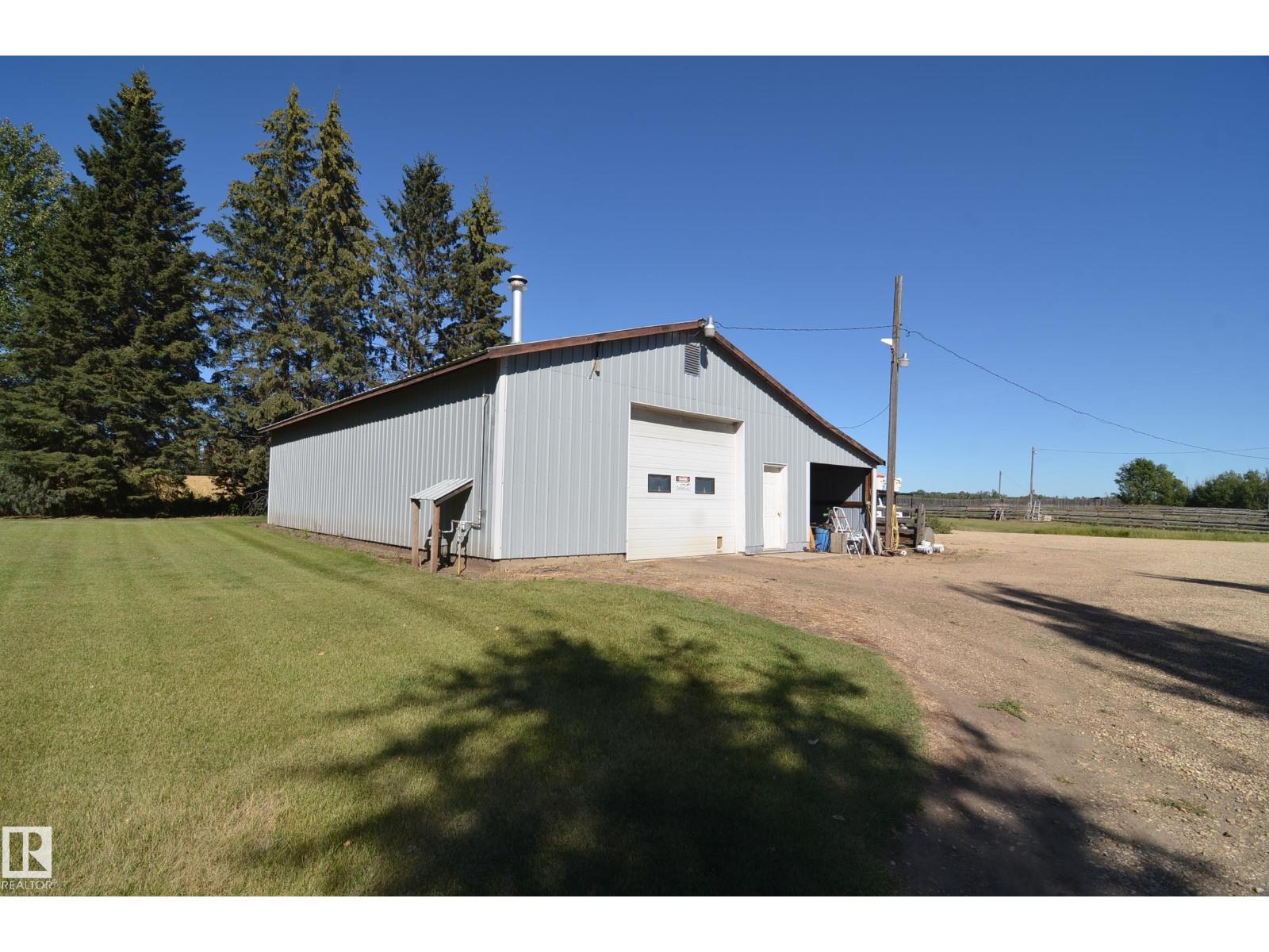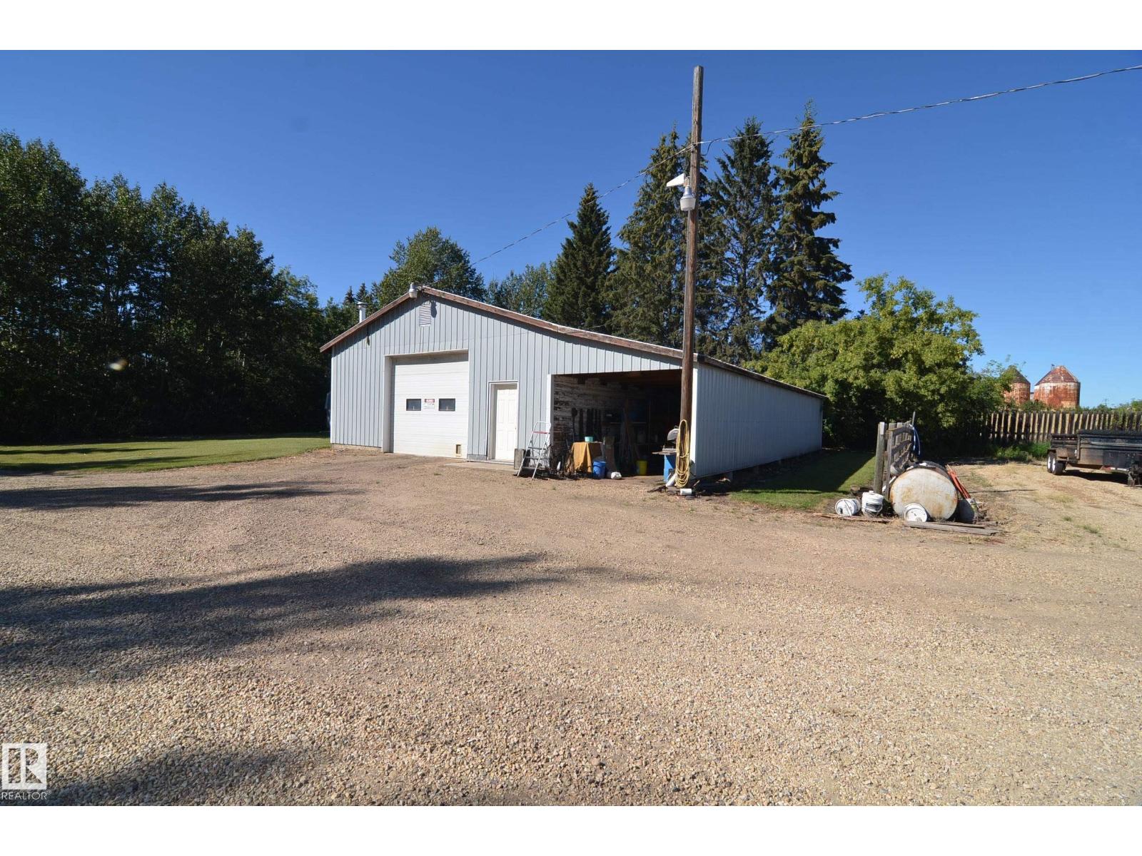 Stunning 6.2 acre Property w/ solid restyled Bungalow, good Shop & fabulous maturely treed landscaping & yard space only 3 mi SE of Barrhead. Private & peaceful setting. Home features many upgrades including shingles, furnace, floors, extensive cabinetry, vinyl windows & more. 4 good sized Bdrms & 2 quality Baths including jetted tub & standing showers. Large living & family spaces both upstairs & down. Spacious dining room attaching to excellent screened in patio sitting area. Very inviting special space that accommodates all age categories. Heated Shop features 30'x50' size along w/ 12'x50' open lean too. 11' shop ceilings & 10'h OH door. Plentiful drinking water courtesy of 2 separate wells plumbed & tied together for anything you may require. Yard storage. Livestock fencing. Heavily graveled yard w/ very good parking & access for larger trucks or equipment. (id:63190)