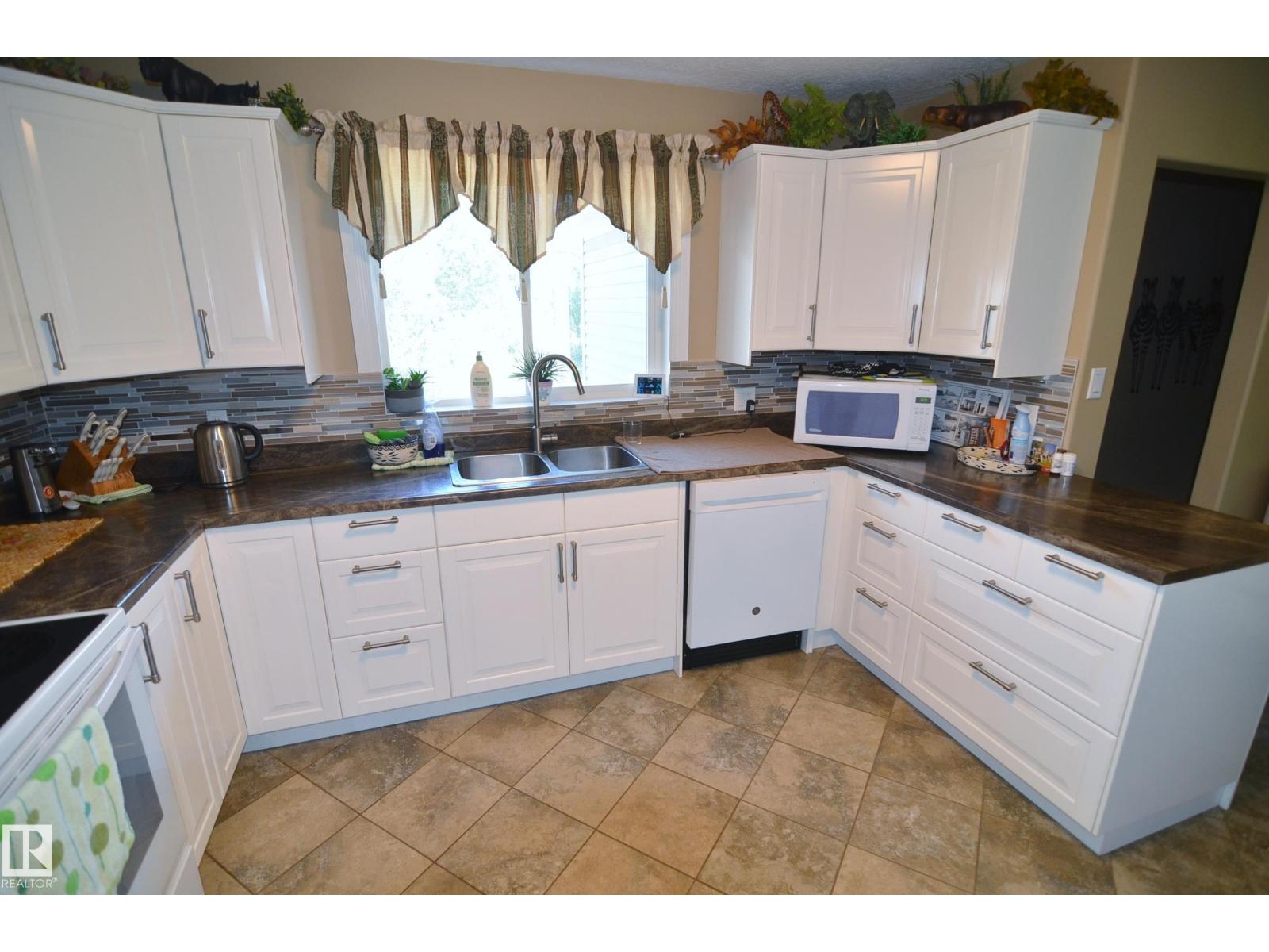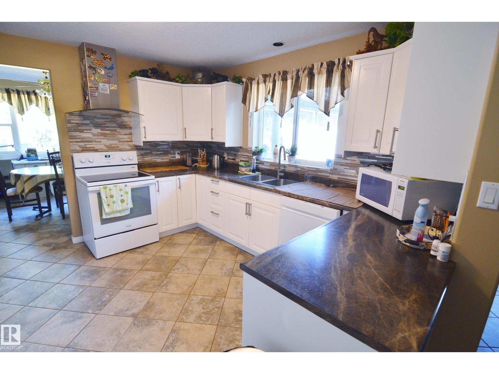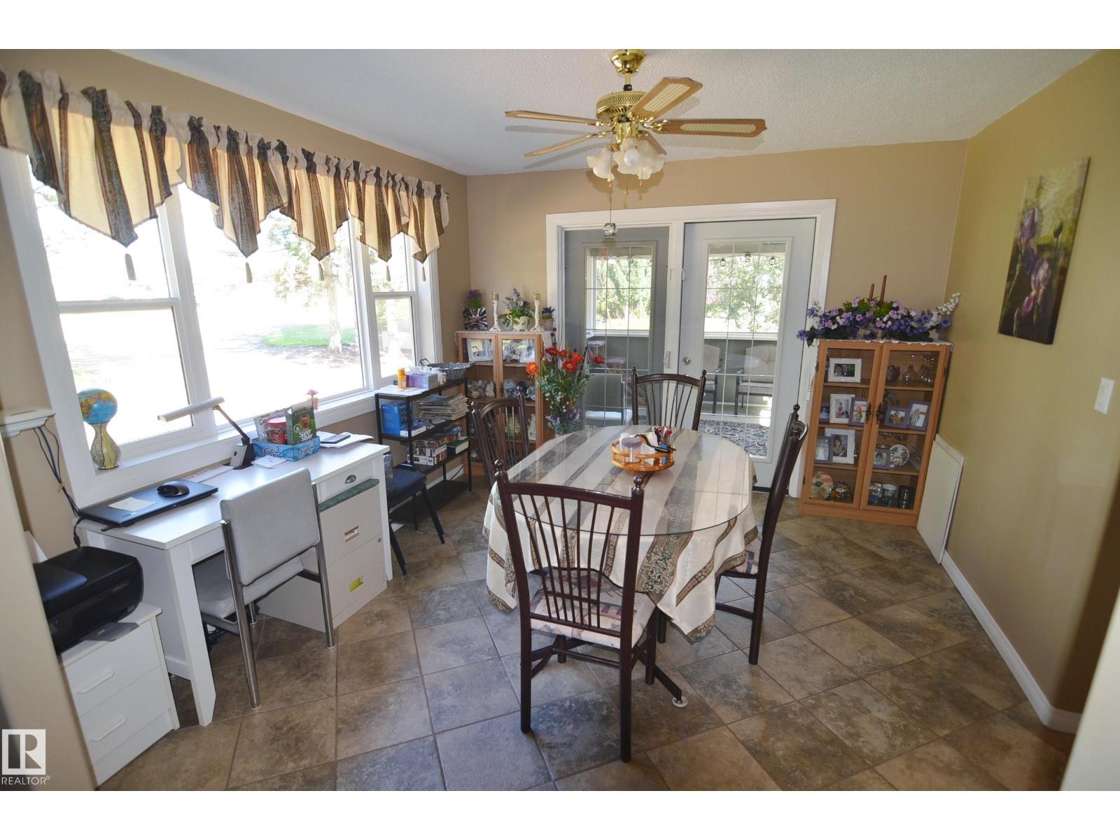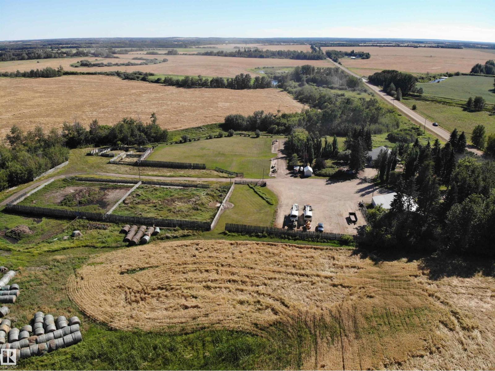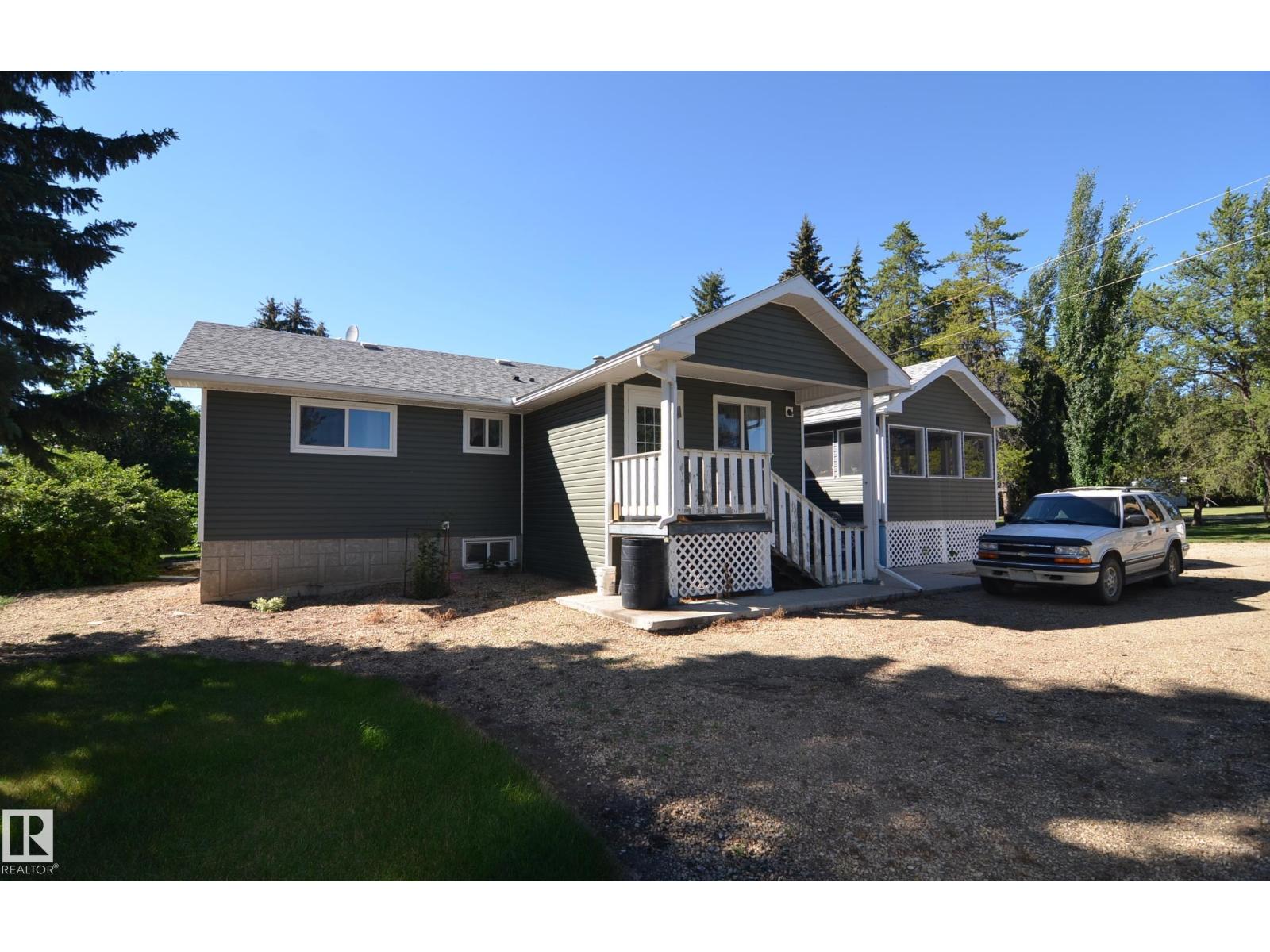 Stunning 6.2 acre Property w/ solid restyled Bungalow, good Shop & fabulous maturely treed landscaping & yard space only 3 mi SE of Barrhead. Private & peaceful setting. Home features many upgrades including shingles, furnace, floors, extensive cabinetry, vinyl windows & more. 4 good sized Bdrms & 2 quality Baths including jetted tub & standing showers. Large living & family spaces both upstairs & down. Spacious dining room attaching to excellent screened in patio sitting area. Very inviting special space that accommodates all age categories. Heated Shop features 30'x50' size along w/ 12'x50' open lean too. 11' shop ceilings & 10'h OH door. Plentiful drinking water courtesy of 2 separate wells plumbed & tied together for anything you may require. Yard storage. Livestock fencing. Heavily graveled yard w/ very good parking & access for larger trucks or equipment. (id:63190)