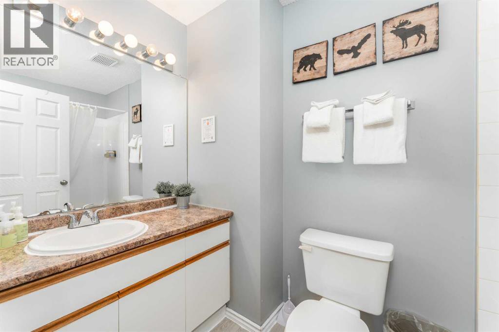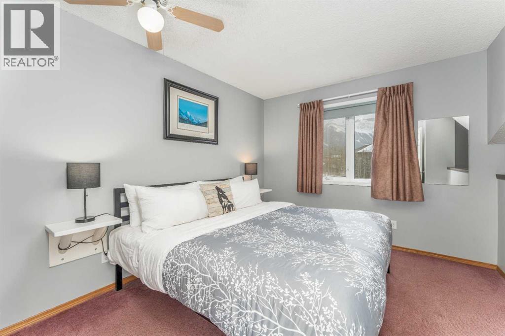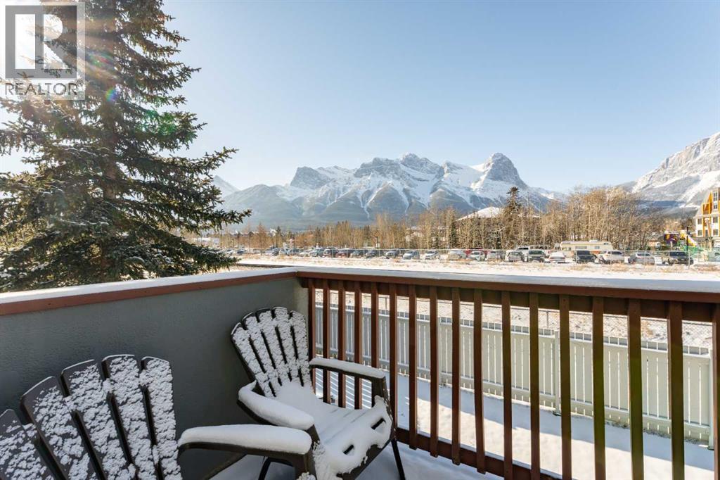 Welcome to your mountain retreat in the heart of Canmore, located in the Canadian Rockies Chalets. Perched on the top floor with no one above, this multi-level 3-bedroom condo offers nearly 1,164 sq ft of thoughtfully designed living space and seriously breathtaking mountain views that truly steal the show.Step onto your private balcony and take in the dramatic Rocky Mountain backdrop, the kind of view guests travel across the world to experience. Inside, the main level features a kitchen with a breakfast bar, a dining area, and a comfortable living room anchored by a cozy gas fireplace, perfect for unwinding after a day on the trails. A convenient 2-piece bath and in-unit laundry complete this level.Upstairs, you’ll find three bedrooms and a full 4-piece bathroom . The primary bedroom offers a unique open-to-below design that adds architectural character and an airy feel you don’t often see in condo living.Currently part of the rental pool, this property presents a fantastic investment opportunity with established guest use already in place. Being sold fully furnished, it is truly turnkey . Condo fees include heat, electricity, gas, water, cable, internet, parking, professional management, and more, offering simplified ownership and predictable monthly costs .Located along Bow Valley Trail, you are just minutes from Canmore’s vibrant downtown filled with local cafés, restaurants, boutique shops, and galleries. World-class hiking, biking, climbing, and cross-country ski trails are right at your doorstep, with Banff National Park only a short drive away. Easy access to the Trans-Canada Highway makes weekend escapes effortless and ensures strong appeal for visiting guests year-round.Whether you are looking for a personal mountain getaway, a revenue-generating investment, or both, this property delivers the lifestyle people come to Canmore for. Reach out today to schedule your private viewing and experience those views in person! (id:63190)