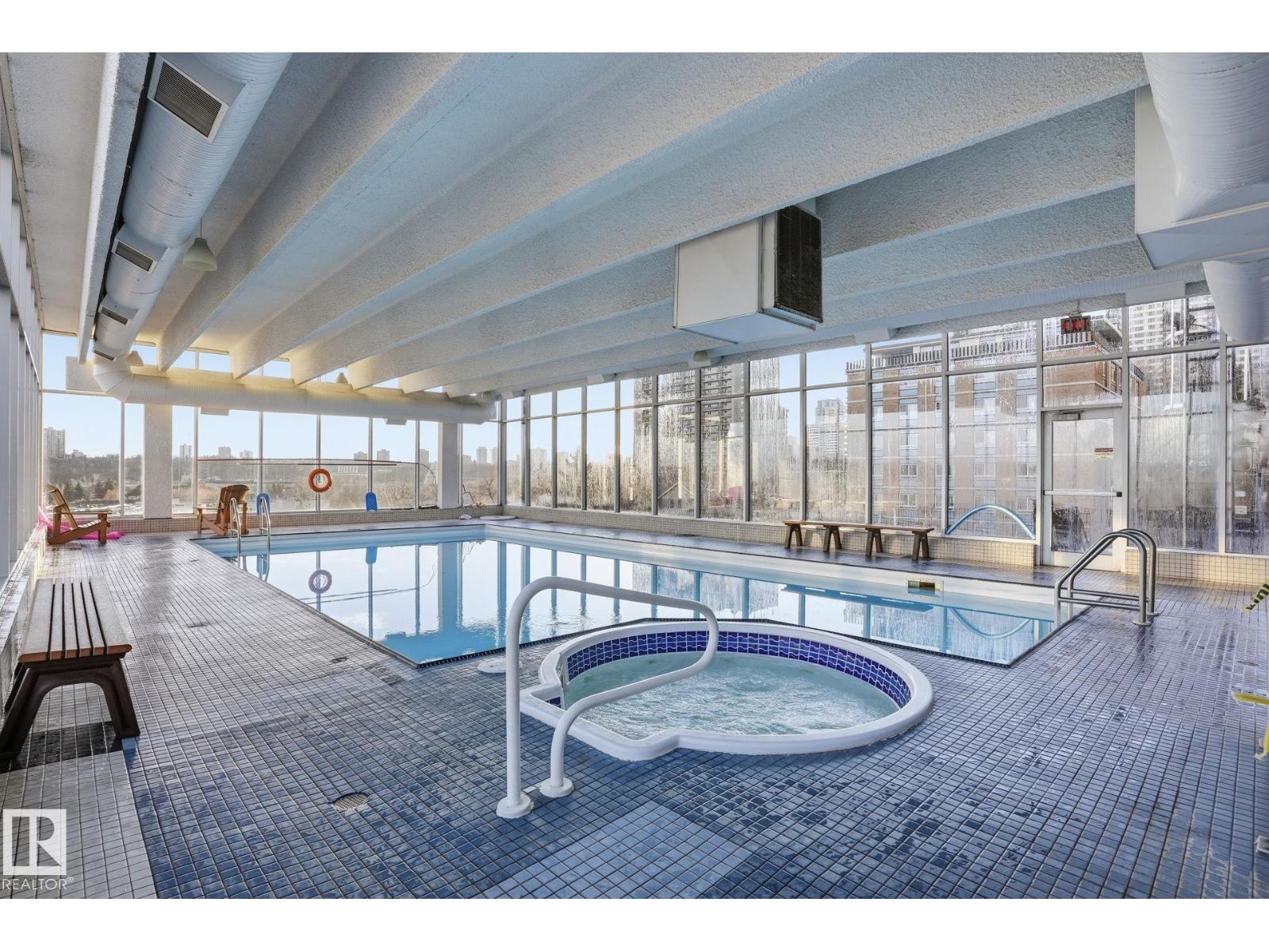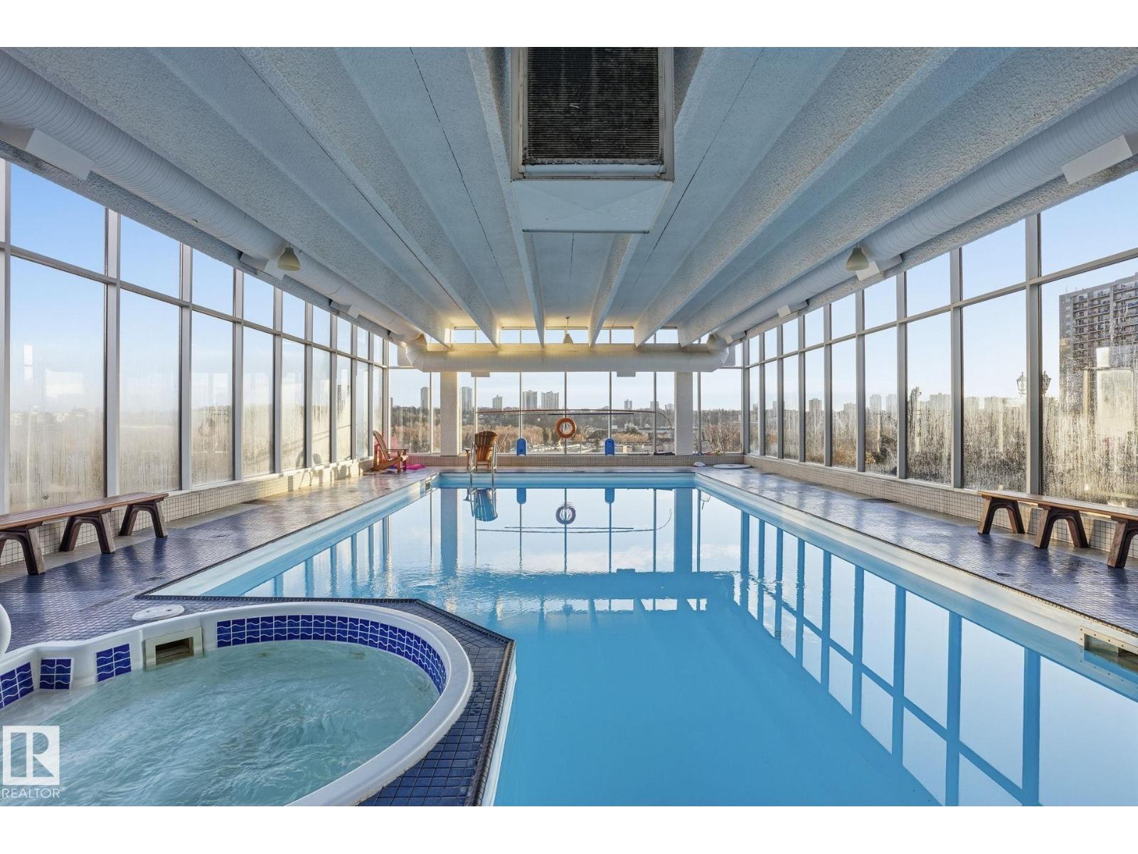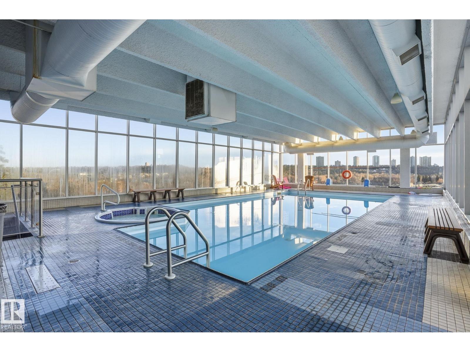 BREATHTAKING VIEWS west facing 1Bed +1 full Bath 731+Sq.Ft 11th floor condo w/1 underground heated stall (#6) in RENAISSANCE PLACE! With plenty of PARKING OUT FRONT! This well managed CONCRETE BUILDING, 1Bdrm Full 4pc Bath has a Spacious KITCHEN w/TILE, LARGE LIVING ROOM & SEPARAT DINING w/LAMINATE FLOORING, A HUGE BALCONY, NEWER WINDOWS & PATIO DOORS, + a large Storage Room/Ofc/Den next to the kitchen. The LARGE BEDROOM has a good size WALK-IN-CLOSET & A PATIO DOOR TO BALCONY. AMENITIES in the building includes an INDOOR POOL, SAUNA, FITNESS ROOM, GAMES ROOM, 19th FLOOR GUEST SUITE with it's own underground heated stall & additional underground parking is available! LAUNDRY ROOM on EACH floor & OUTDOOR PATIO, + SMALL PETS ARE ALLOWED WITH BOARD APPROVAL! ETS & LRT along with The Ice District a short walk up the hill on 101 Street to downtown. SUPERB LOCATION & QUITE AND CLEAN building w/a ONSITE MANAGER. Close to “Central” LRT Stn, Rogerspl, U of A, NAIT, GrantMcEwan. (id:63190)