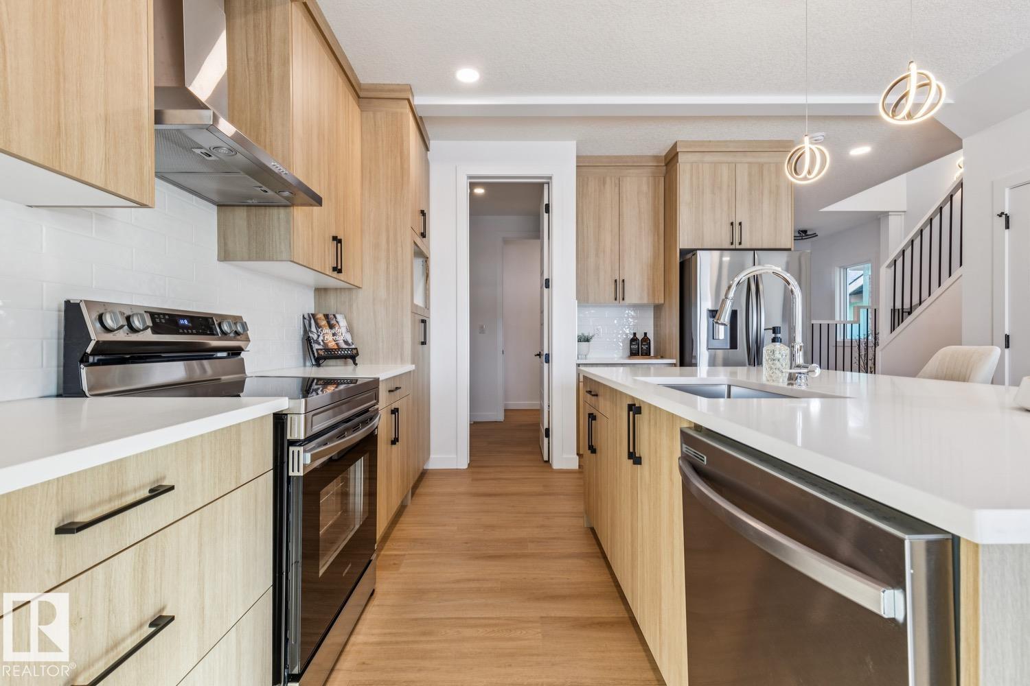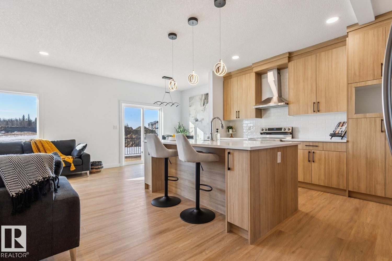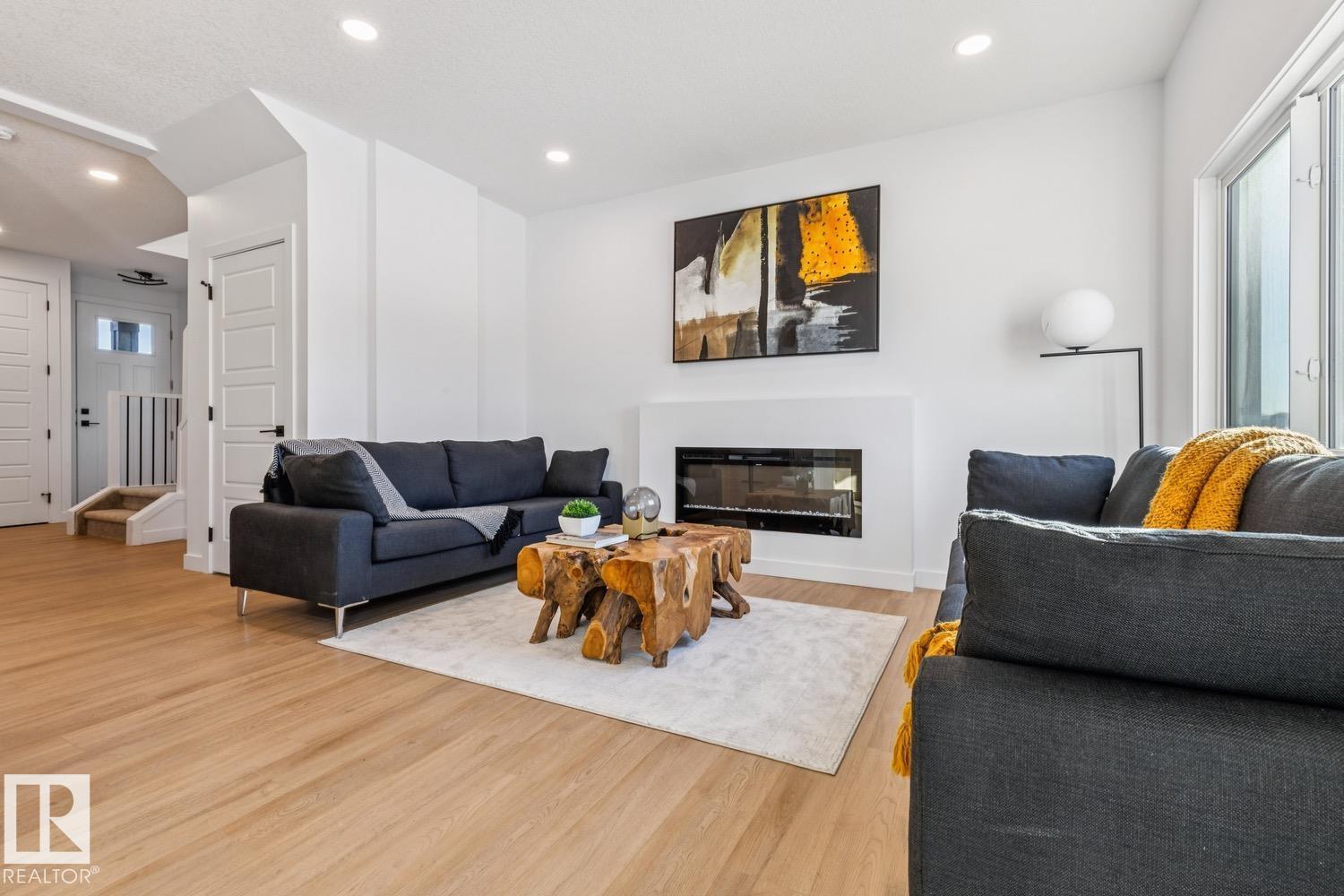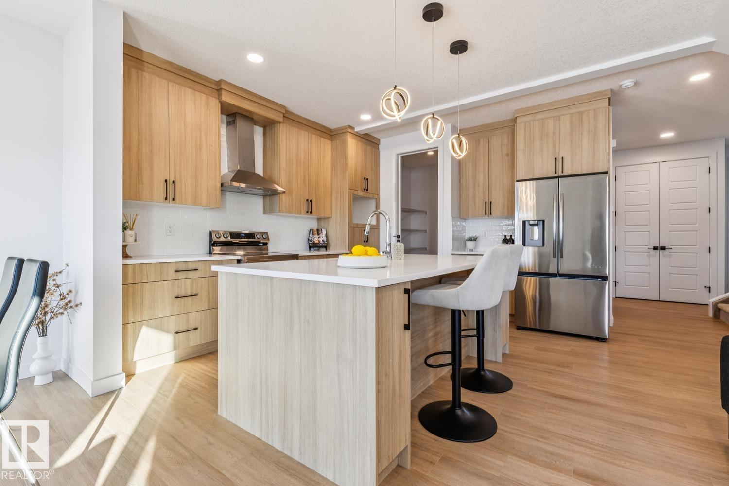 Stunning 1607 sq ft 2 storey townhome with a double attached garage located in the highly sought after community of Copperhaven. This 3 bedroom 2.5 bath home features luxury vinyl plank spanning the entire main floor along with a open concept. Chefs kitchen features upgraded cabinetry complimented by quartz countertops, tiled backsplash, designer pendant lighting, and a full set of stainless steel appliances. Living room features a electric fireplace. Upper floor features a spacious bonus room, 3 bedrooms, 2 bathrooms and the laundry room. The spacious master features a spa like 4 piece ensuite bath with his and her sinks along with a tiled shower. Other features include: Double attached garage, 9 ft ceilings, walk through pantry, separate entrance for future basement suite, designer plumbing, spacious yard, and so much more. Located close to schools, and all the amenities including shopping, transportation, and dining. (id:63190)