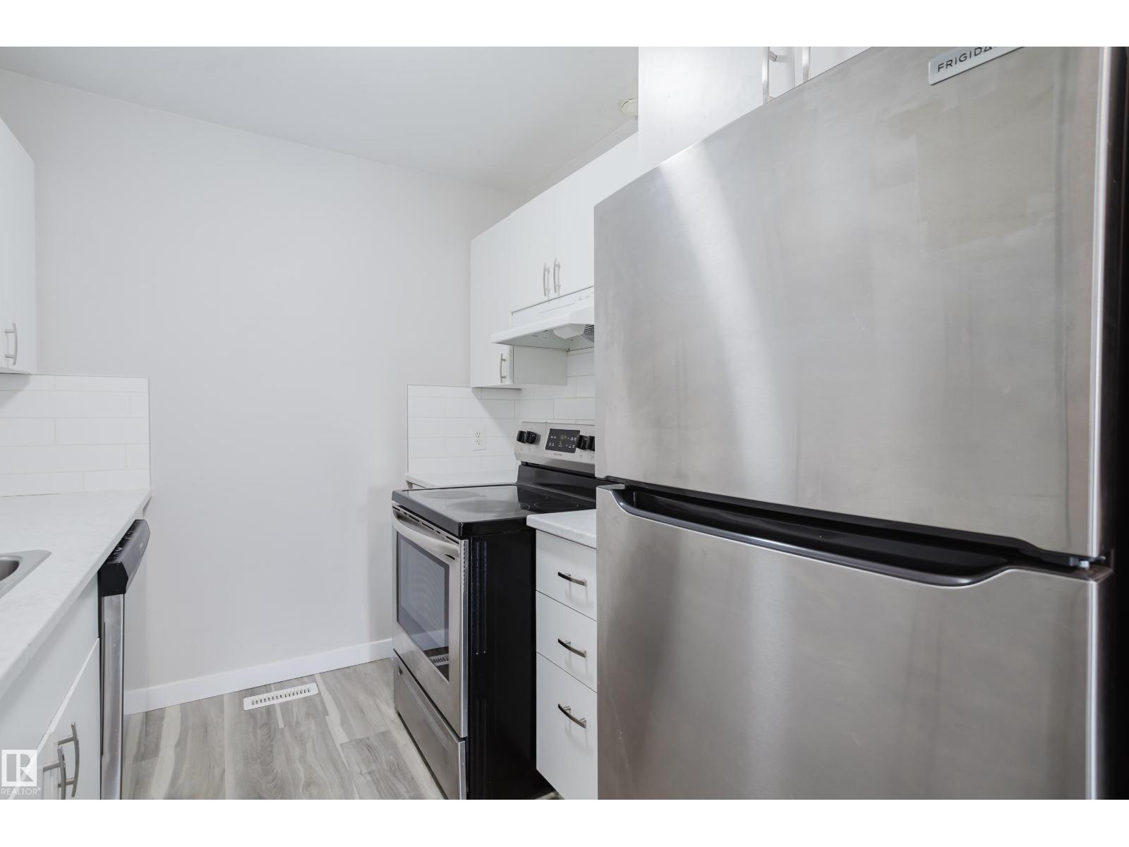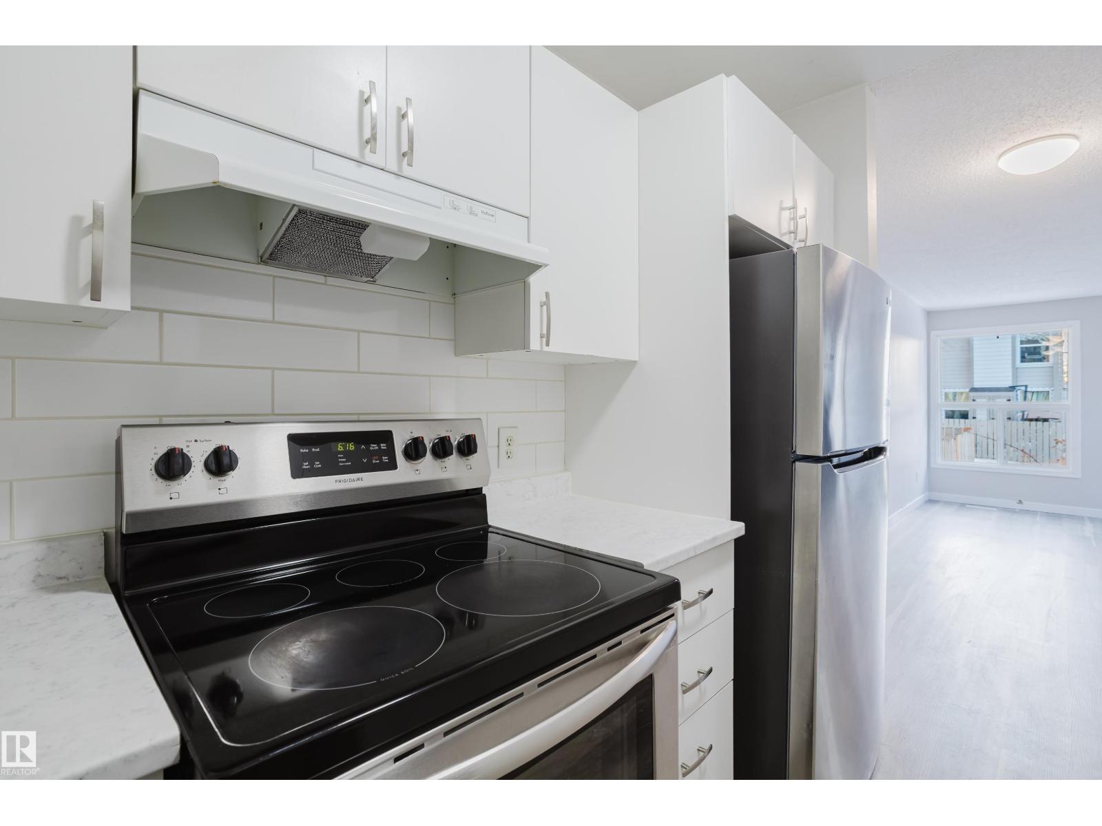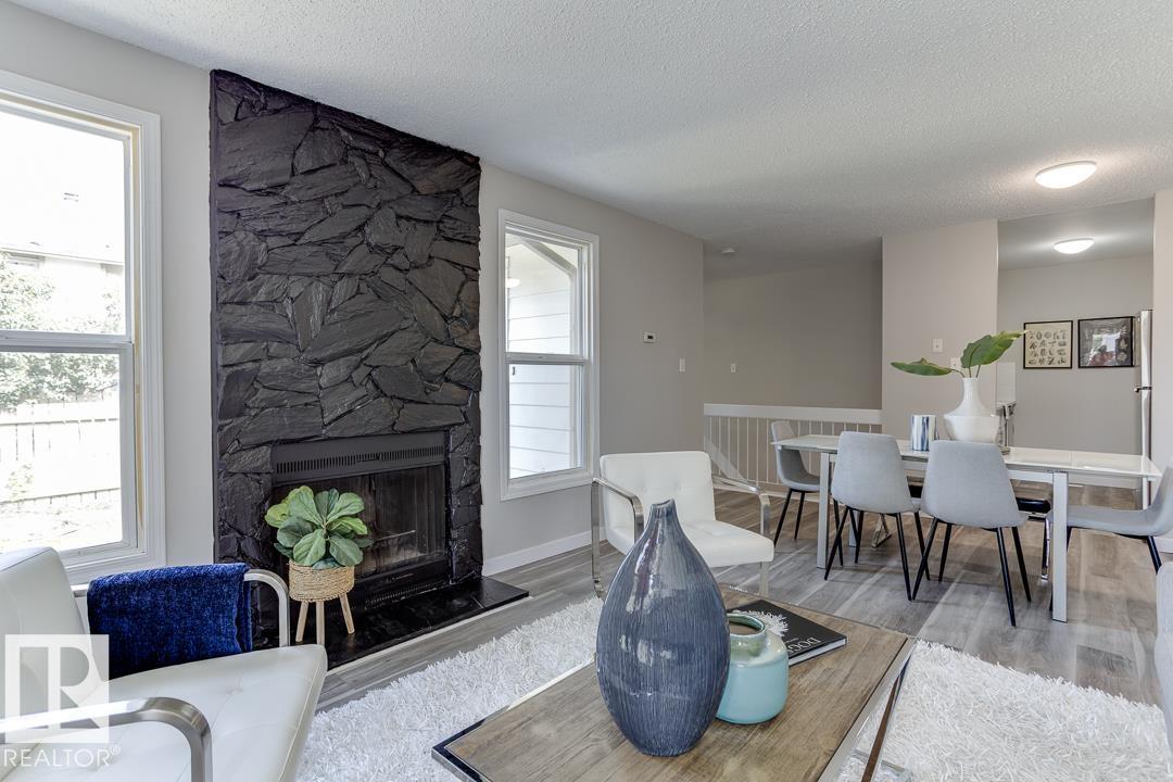 Turnkey bungalow-style townhouse in family-friendly Mill Woods offering comfort, style, and excellent value. This 2-bedroom, 1-bath home features tasteful newer renovations throughout, including updated vinyl flooring, modern baseboards, and a refreshed interior with a clean, contemporary feel. The galley kitchen is both functional and inviting, showcasing updated cabinetry, laminate countertops, subway tile backsplash, and stainless steel appliances. Modern light fixtures enhance the space, while the spacious living room is anchored by a charming wood-burning fireplace—perfect for cozy evenings. The fully renovated 4-piece bathroom adds everyday comfort. Enjoy your private west-facing fenced yard, ideal for relaxing, entertaining, or pets. Walking distance to schools, parks, transit, and shopping, with easy access to the Anthony Henday. A fantastic opportunity for first-time buyers, downsizers, or investors seeking move-in ready convenience in a desirable location. (id:63190)