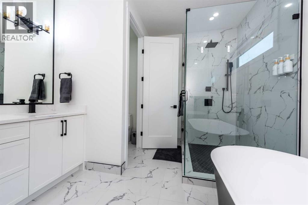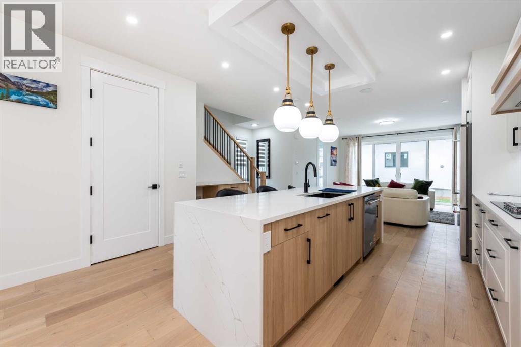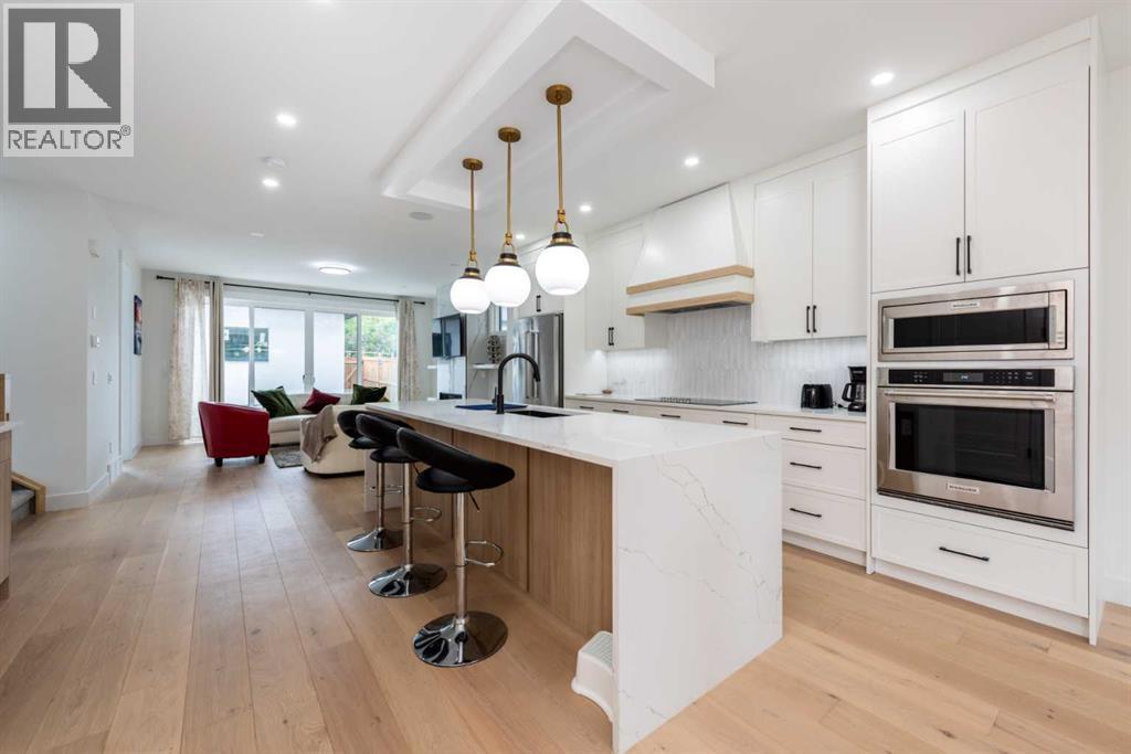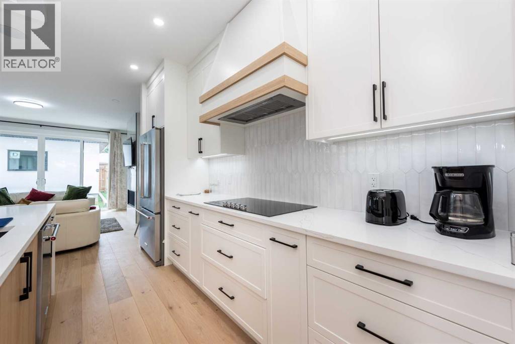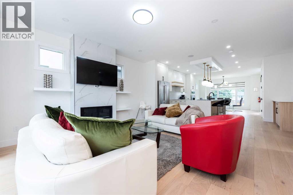 Stunning custom-built detached infill in the highly sought-after community of Highwood! Built recently in 2024 and offering over 2,800 sq ft of thoughtfully designed living space, this immaculate 2-storey home blends modern luxury with exceptional investment potential. Currently operating as a successful, fully furnished Airbnb for the past several months, this turnkey property offers a rare opportunity for investors to step into a thriving short-term rental business, complete with two separate licenses for the upper level and the legal basement suite. Its prime inner city location makes it especially attractive, with strong and consistent demand from guests seeking close proximity to downtown. For those not looking to continue with Airbnb, the home is fully furnished and move-in ready, making it an ideal option for a family wanting a seamless transition into a beautifully finished property. Inside, you are welcomed by a bright, expansive foyer that opens into a sun-filled main floor featuring soaring 9’ ceilings, large windows, elegant hardwood flooring, and refined contemporary finishes throughout. The gourmet kitchen is a chef’s dream with quartz countertops, premium stainless steel appliances, extensive cabinetry, and a stunning waterfall island with seating. The formal dining area connects effortlessly to the inviting living room, highlighted by a cozy gas fireplace, while a stylish powder room and access to the backyard and double detached garage complete the main level. Upstairs, the luxurious primary retreat offers a spacious walk-in closet and spa-inspired ensuite with dual vanities and a freestanding soaking tub, along with a private front balcony with sleek glass railing. Two additional generously sized bedrooms, a beautifully appointed full bathroom, and convenient upper-level laundry add both comfort and practicality. The fully approved legal basement suite features its own private entrance, full kitchen, spacious living area, two large bedrooms with wa lk-in closets, and a full bathroom, making it perfect for additional rental income or extended family. Custom-built closet organizers in the bedrooms, ample storage space, and ceramic tile finishes in bathrooms and laundry areas further enhance the home’s quality and functionality. Located on a quiet, tree-lined street just minutes from downtown, schools, shopping centers, and picturesque parks, this property offers the perfect combination of style, comfort, convenience, and income potential. Book your private showing today! (id:63190)