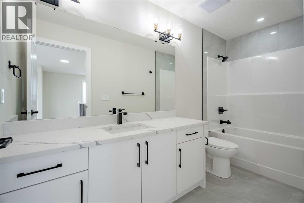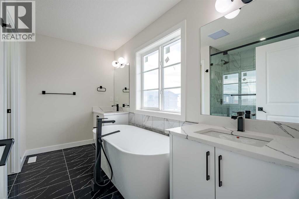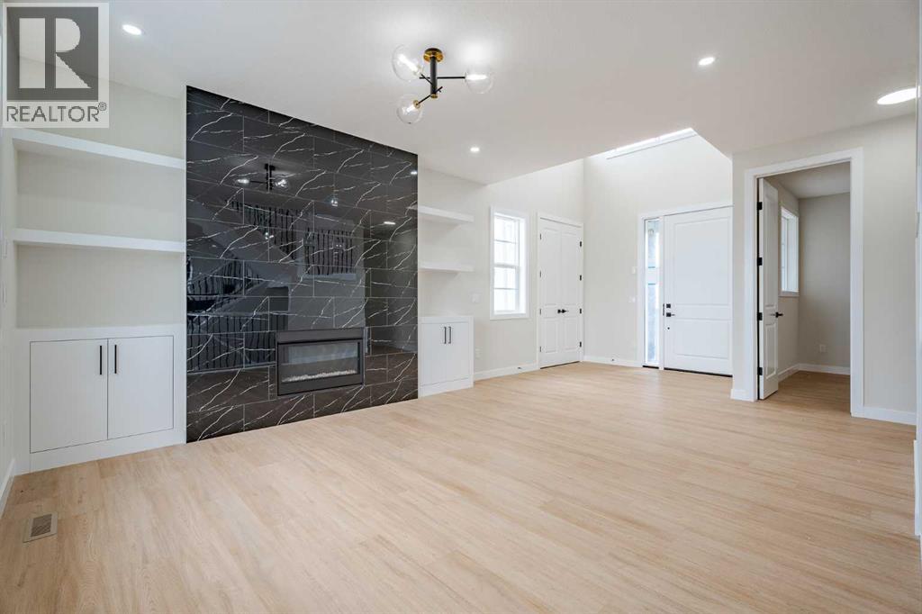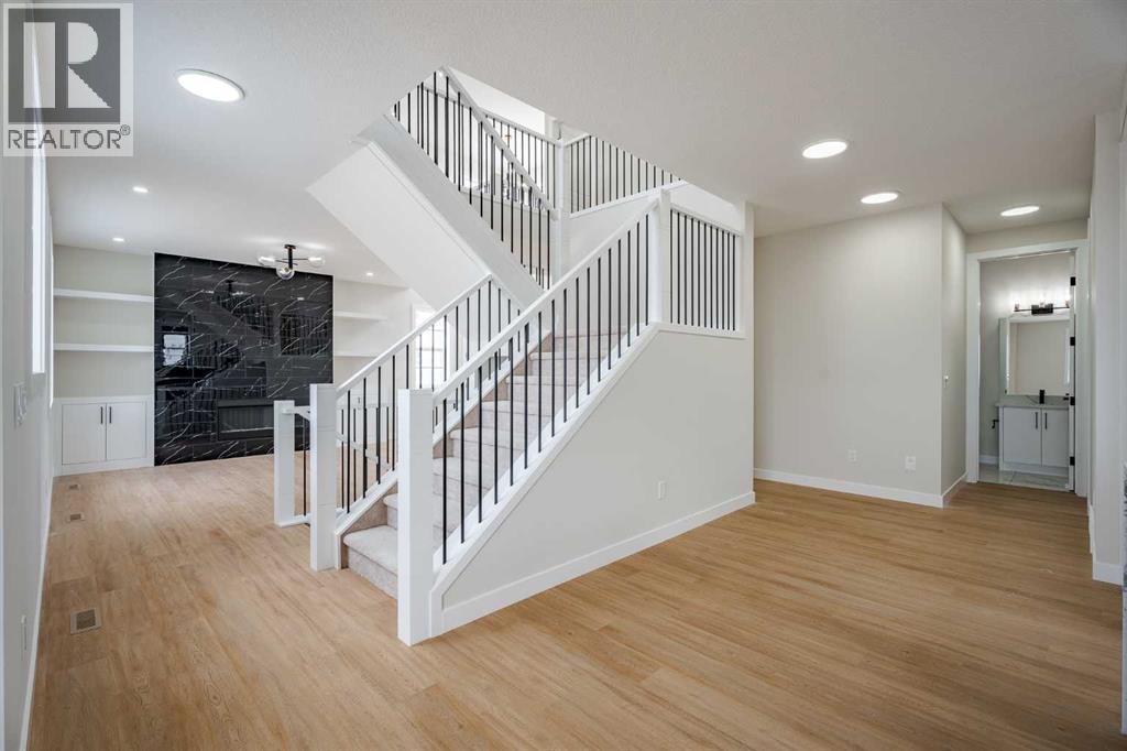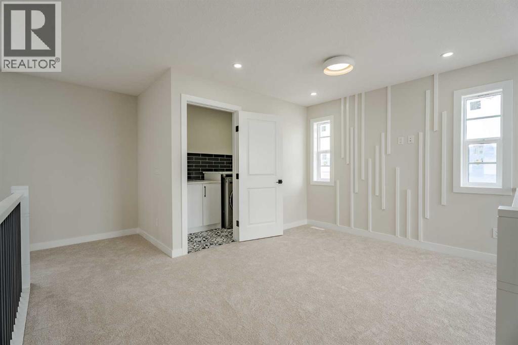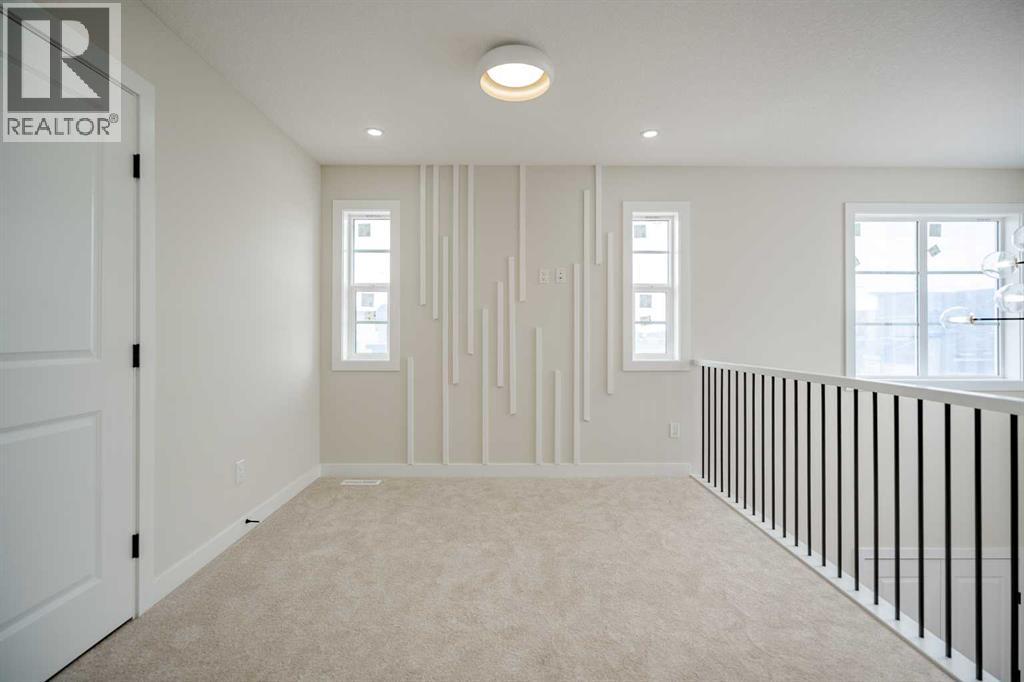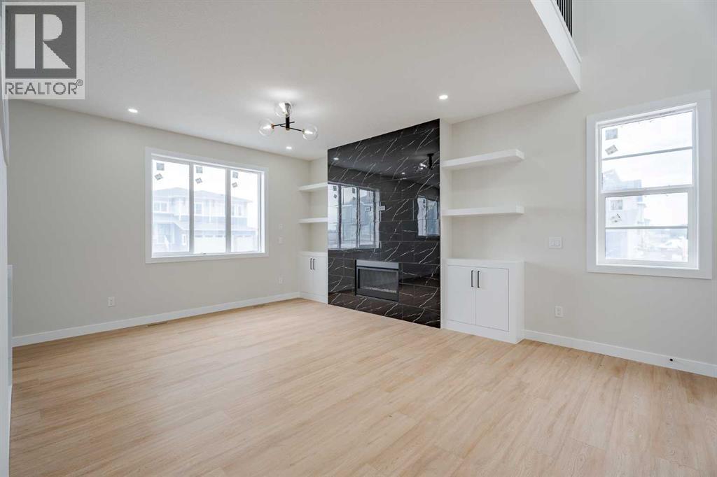 Welcome to 2045 Waterbury Road in the growing community of Waterford Estates, Chestermere. Built by Twenty First Century Homes, this two-storey residence offers 2,579 sq ft of well-designed living space above grade on a 45’ x 113’ lot, plus an undeveloped basement with bathroom rough-in for future development.The main floor features a functional layout with a living room with fireplace, family room, dining area, and a main floor bedroom with access to a full bathroom—ideal for guests or extended family. The kitchen includes a dedicated spice kitchen and convenient access to the mudroom and triple attached garage (approx. 640 sq ft).The upper level offers four bedrooms, including two primary bedrooms with private ensuites. A central loft area, upper-floor laundry, and spacious secondary bedrooms provide practical family living.The exterior elevation incorporates stucco and smart board detailing with stone accents, along with a rear deck for outdoor use.Located close to parks, schools, shopping, and key amenities, this home offers space, flexibility, and quality craftsmanship in a well-connected Chestermere community. (id:63190)