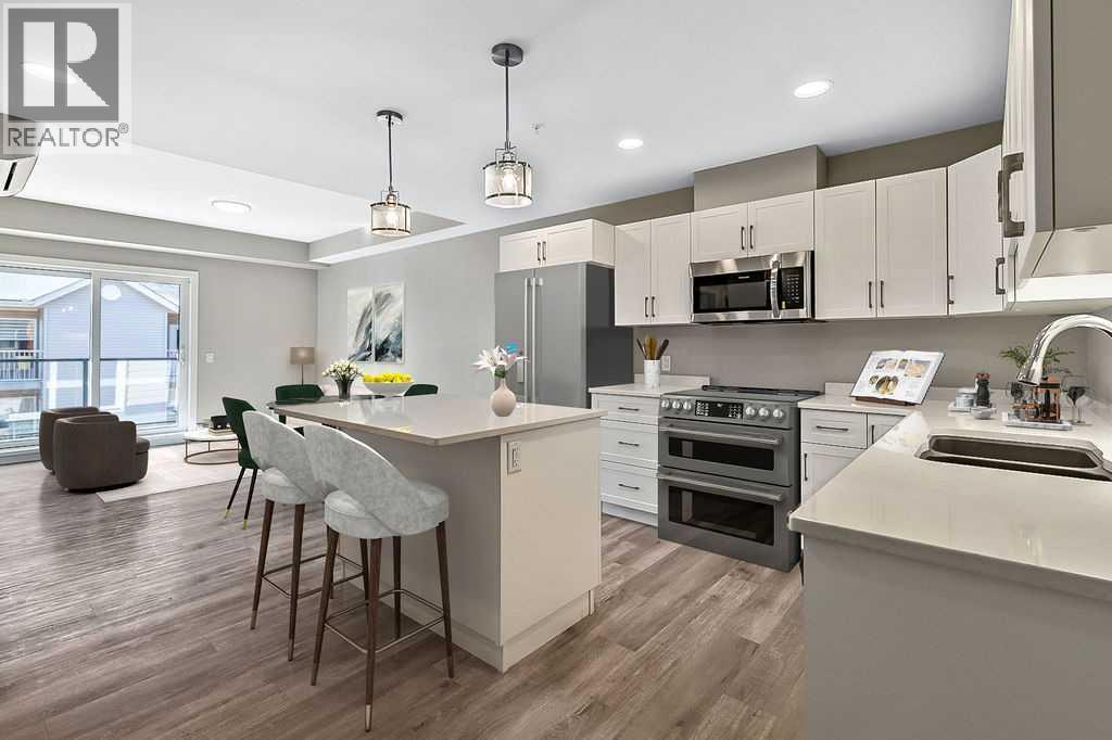 "To be Built/Pre-Construction" Be part of something new at Eagleview. This condo will have all the modern features and finishes you would expect in a premium built adult orientated condo. 2nd floor south facing unit. 9ft ceilings. This unit will offer 2 bedrooms, 1 bathroom, modern, efficient living in a thoughtfully planned community. 6 x 22ft covered deck. The open kitchen flows effortlessly into the dining and living areas, creating a bright and welcoming space. Step outside onto your private deck with additional storage, appreciate first-floor indoor parking, also on first level you will find a resident gathering room, exercise room and workshop. Outside will boast a community garden, more parking and dog run. There is still time to pick interior selections for finishes, paint colors, etc. Concrete core floor with steel beam construction make for a very quiet building which enables it to be pet friendly. There will even be a heated dog wash in the parkade. Pictures are for representation purposes of what the finishings options are like. Taxes are TBD. (id:63190)