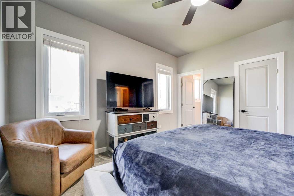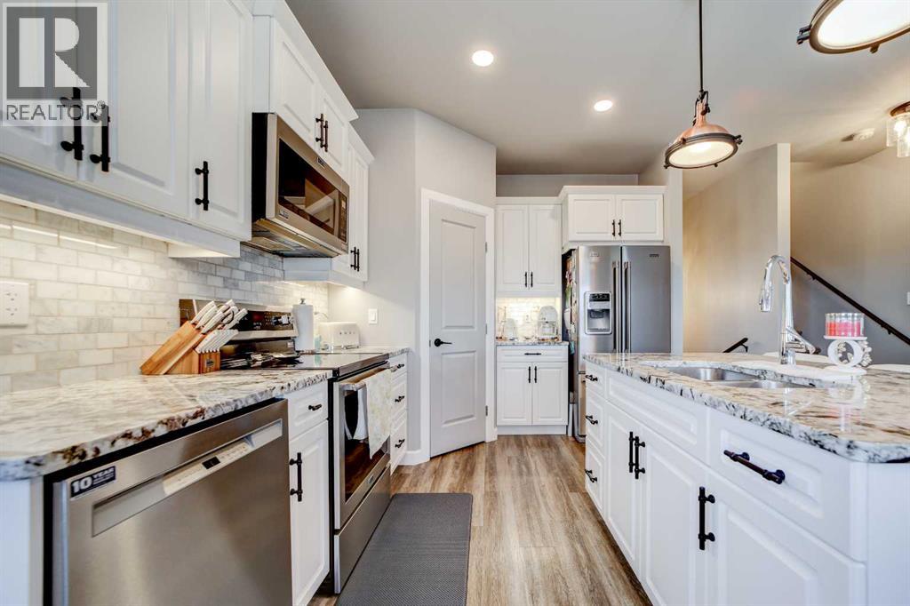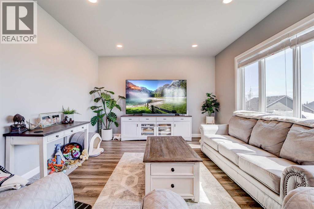 This three-bedroom, three-bathroom home was built in 2022 and has been very gently lived in. Finished with durable Hardie board siding, it offers both curb appeal and low-maintenance living. The bright, open living area features granite countertops in the kitchen and mountain views from the deck off the dining room. The thoughtful layout provides privacy with the primary bedroom and ensuite on the main level, while two additional bedrooms are located on the second level. Enjoy the convenience of two laundry rooms, making daily living easy for busy households. The unfinished basement features large windows and offers excellent potential for additional bedrooms or a spacious rec room, with plumbing already in place for another three-piece bathroom and a gas line for a future fireplace. Ceramic tinted windows help keep UV rays and heat out, and custom blinds have been installed on both the main and upper levels. Situated on a nearly 10,000 square foot fully fenced lot, there’s plenty of room for kids and pets. An 8' x 16' shed, colour matched to the home, provides additional storage—keeping everything neatly organized and out of your heated, double attached garage. This move-in ready home checks all the boxes. Call your favourite REALTOR® to schedule a viewing today. (id:63190)